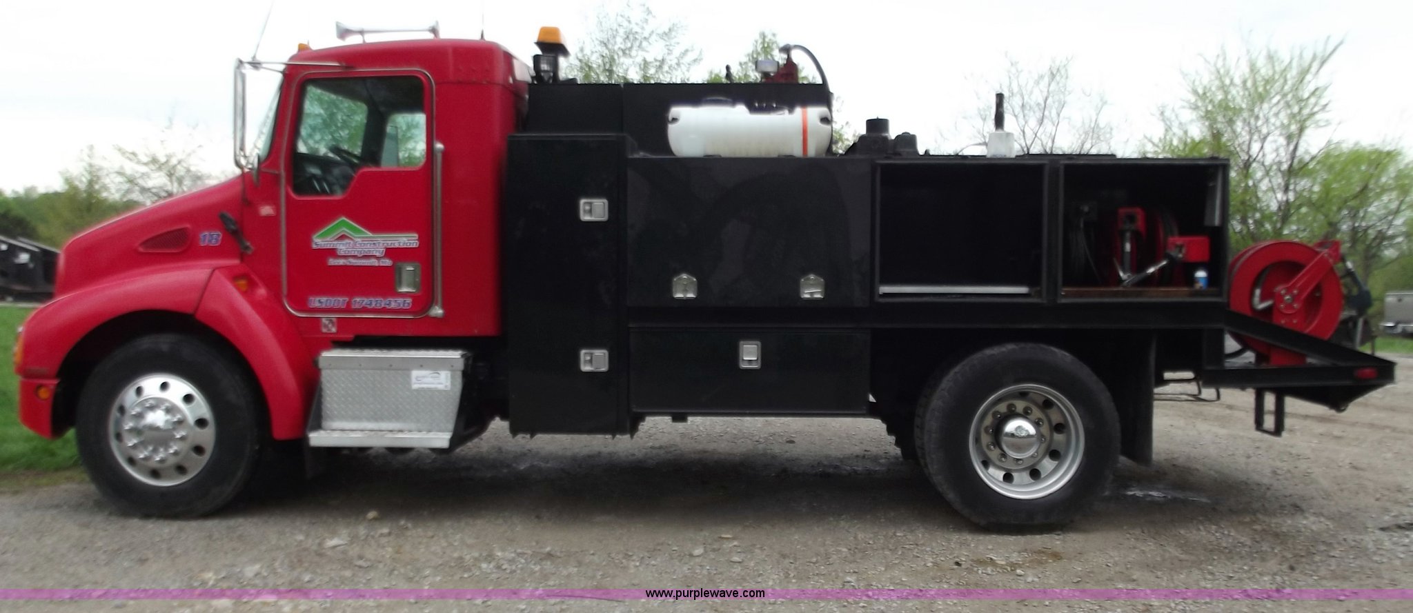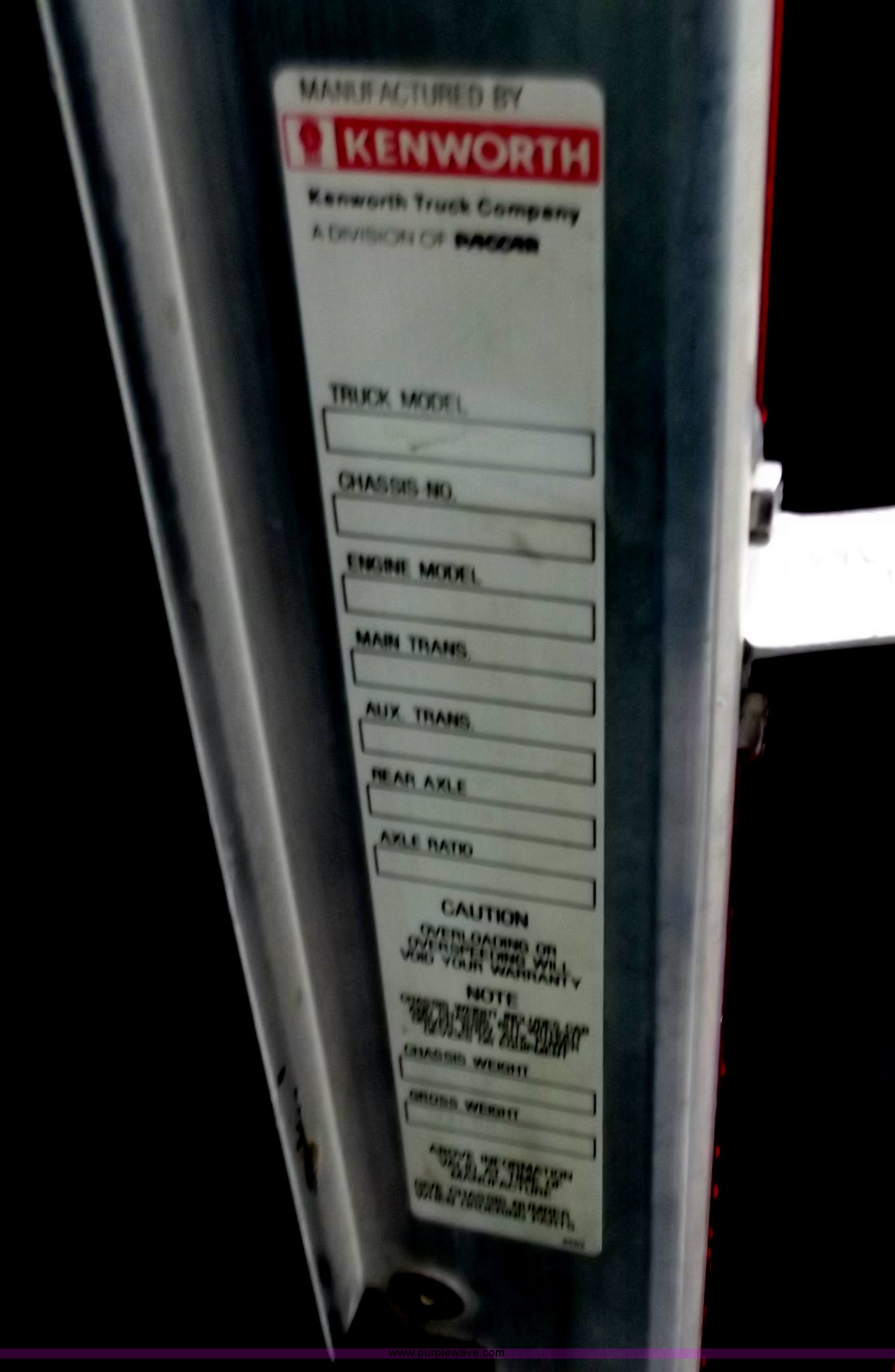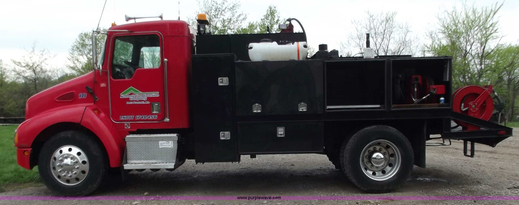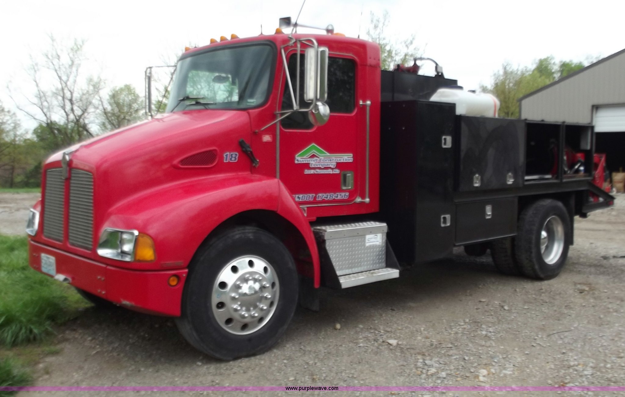 Purple Wave is selling a used Service Truck in Missouri. This item is a 1997 Kenworth service truck with the following: 195,136 miles on odometer, Caterpillar 3126 7.2L diesel engine, 224 HP, Eaton Fuller eight speed manual transmission, AC and heat, Cruise, AM/FM/CD, Air ride seat, Rawson-Koenig service bed, (8) bay doors, (2) have toolboxes mounted, (3) retractable hose reels, (2) bulk storage tank, Air hose reel on rear, Retrieval hose on rear, 60' fuel hose and reel mounted on rear, Air compressor with Honda GX390 gas engine, Electric start, Approx. 10 gallon water tank, Electric pump,, Bumper, Block heater, 50 gallon fuel tank, Air brakes, Spring suspension, Wheel nut covers, Aluminum wheels, 295/75/22.5 tires, GVWR 31,000 lbs, FAWR 11,000 lbs, RAWR 20,000 lbs, 3.70 gear ratio, 178" wheelbase, 10,044 lbs chassis weight