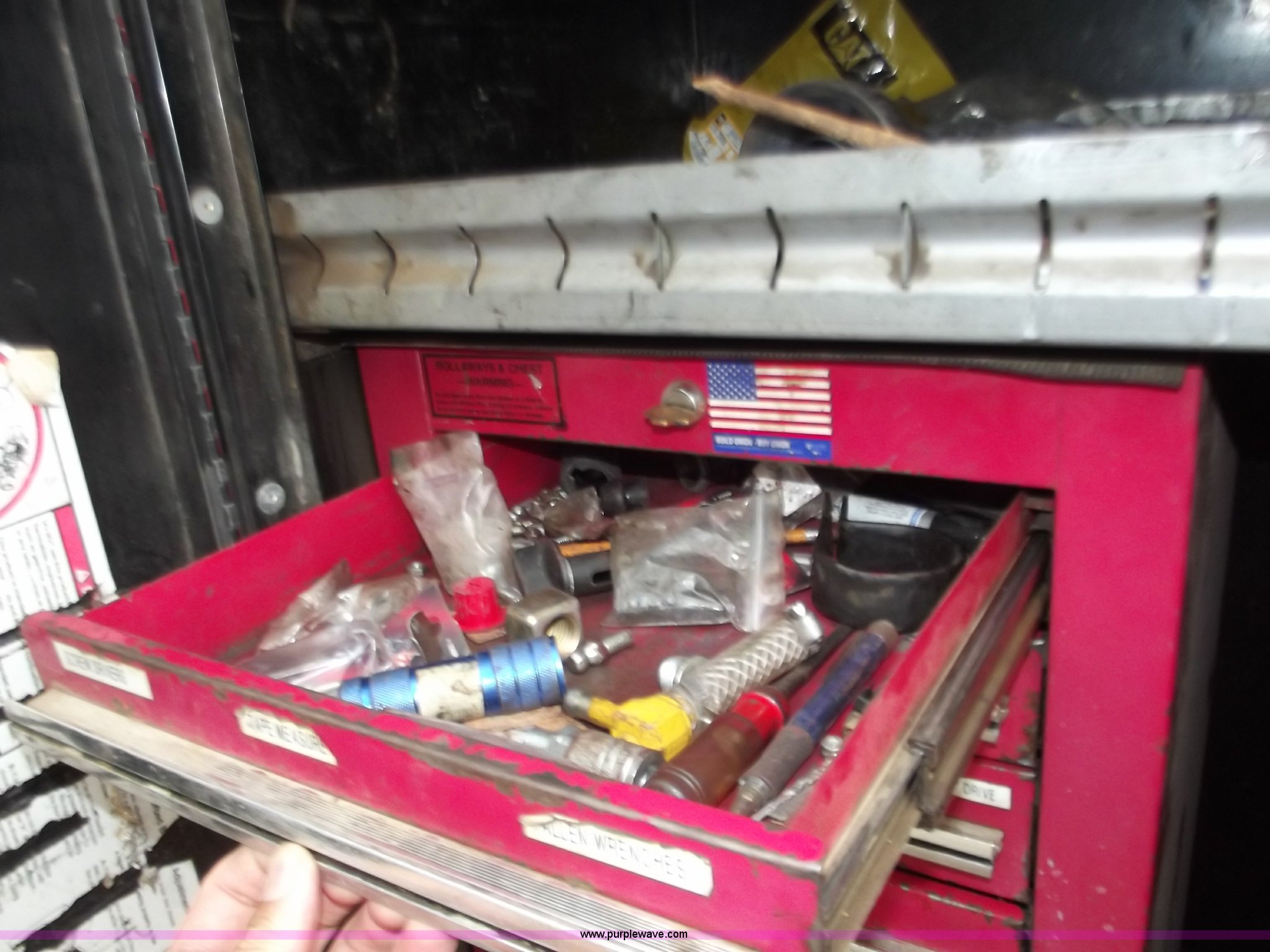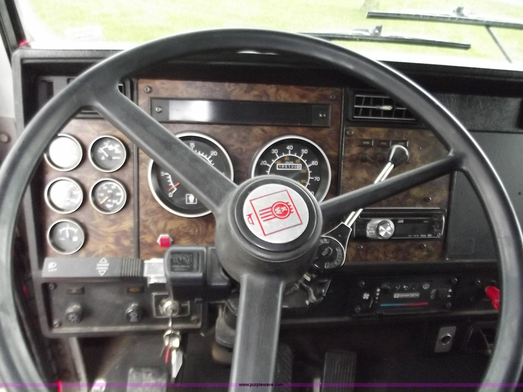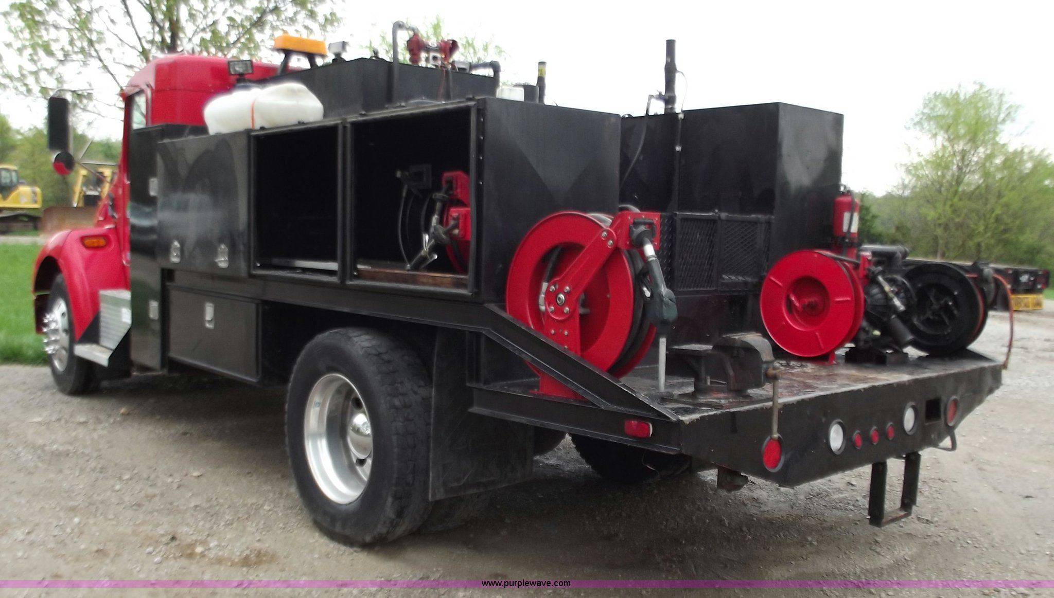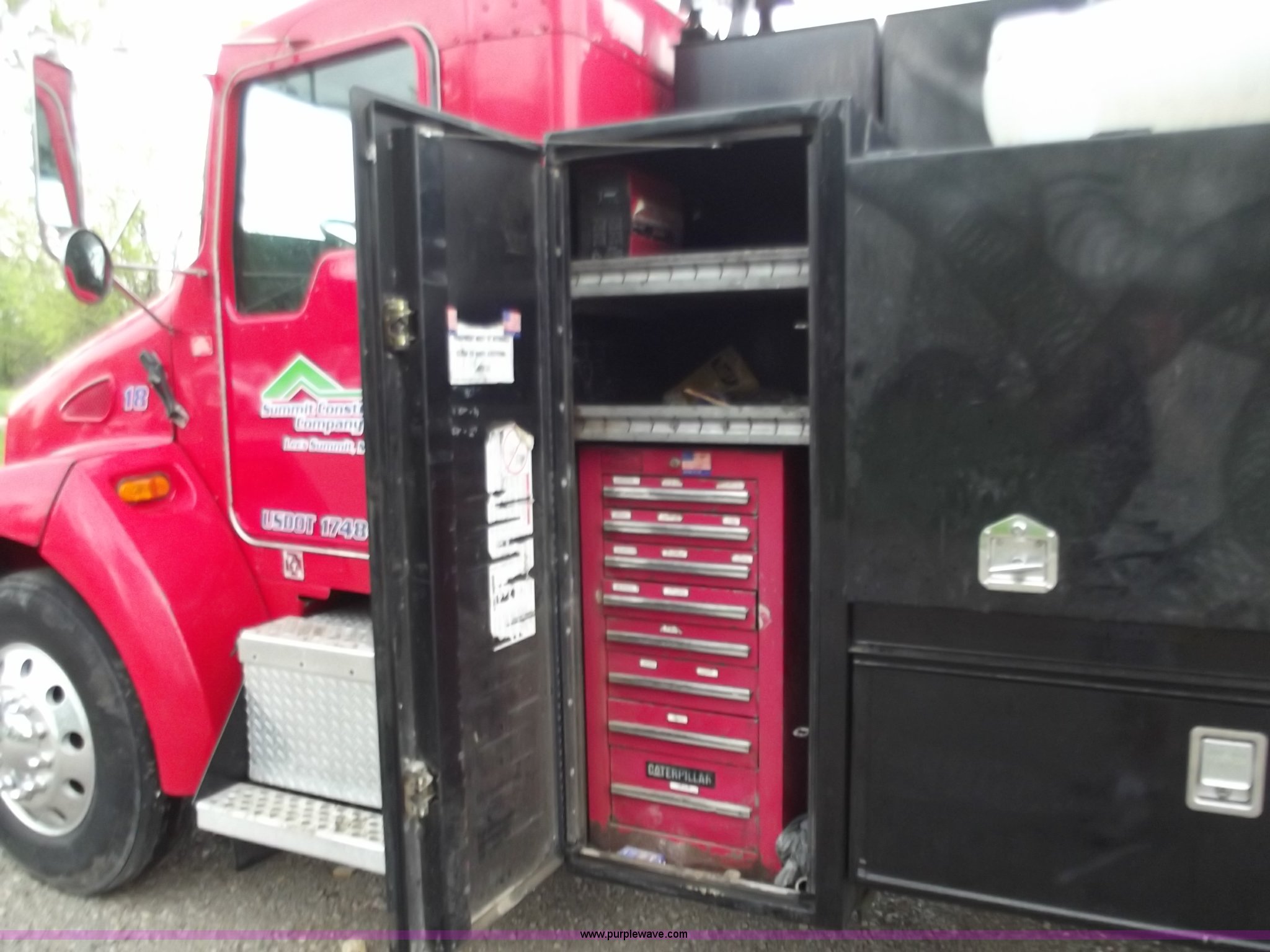 Purple Wave is selling a used Service Truck in Missouri. This item is a 1997 Kenworth service truck with the following: 195,136 miles on odometer, Caterpillar 3126 7.2L diesel engine, 224 HP, Eaton Fuller eight speed manual transmission, AC and heat, Cruise, AM/FM/CD, Air ride seat, Rawson-Koenig service bed, (8) bay doors, (2) have toolboxes mounted, (3) retractable hose reels, (2) bulk storage tank, Air hose reel on rear, Retrieval hose on rear, 60' fuel hose and reel mounted on rear, Air compressor with Honda GX390 gas engine, Electric start, Approx. 10 gallon water tank, Electric pump,, Bumper, Block heater, 50 gallon fuel tank, Air brakes, Spring suspension, Wheel nut covers, Aluminum wheels, 295/75/22.5 tires, GVWR 31,000 lbs, FAWR 11,000 lbs, RAWR 20,000 lbs, 3.70 gear ratio, 178" wheelbase, 10,044 lbs chassis weight