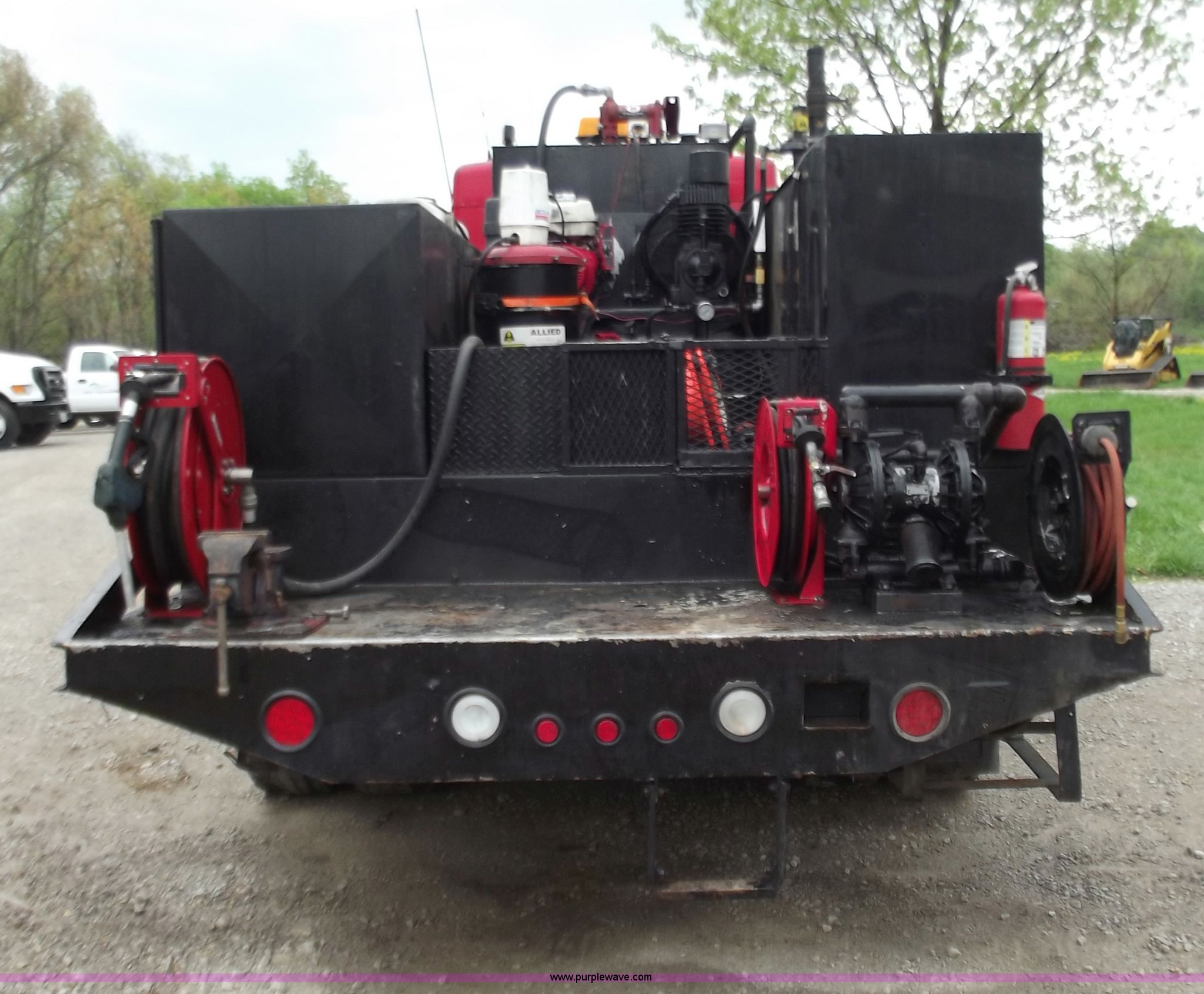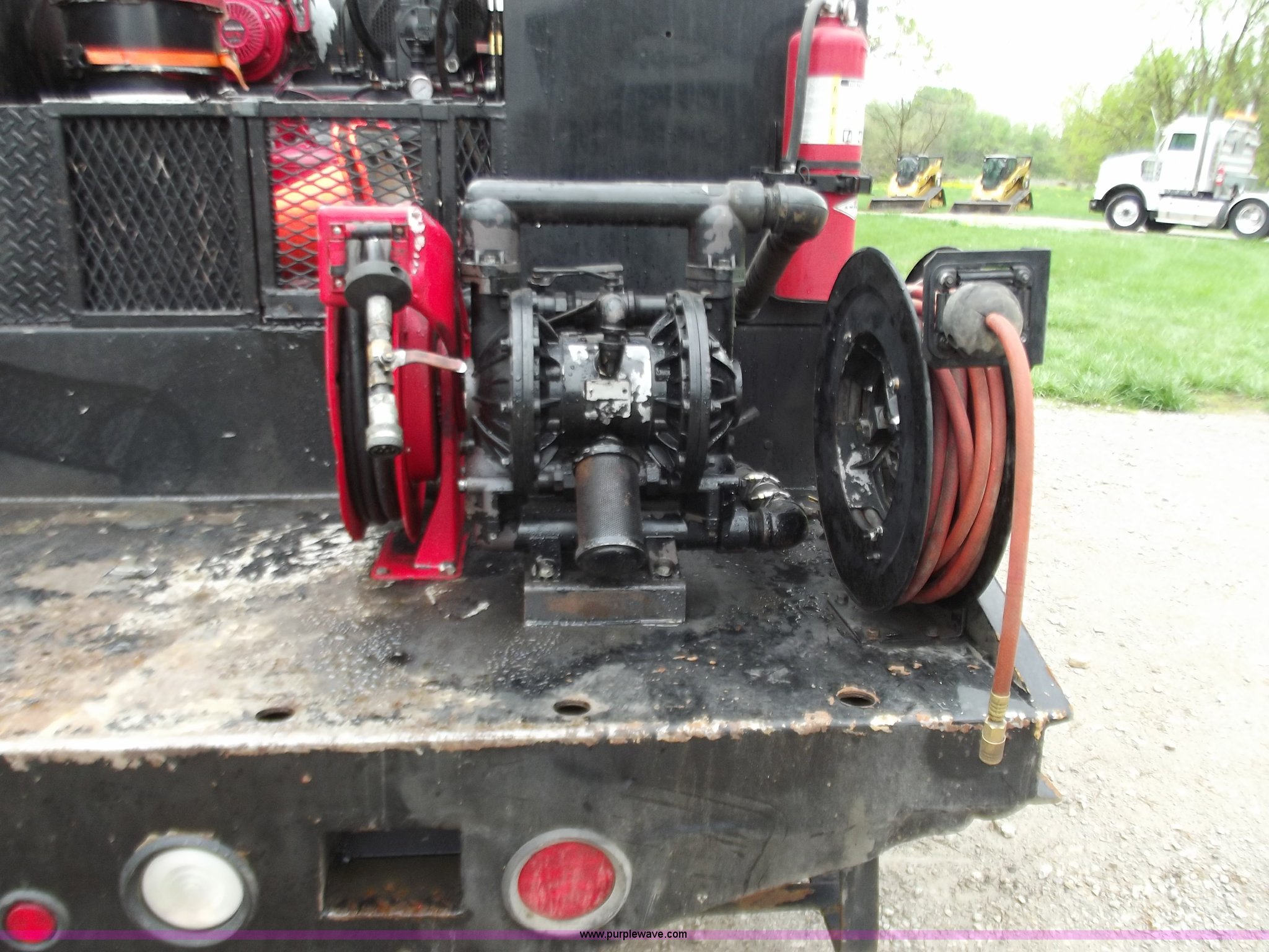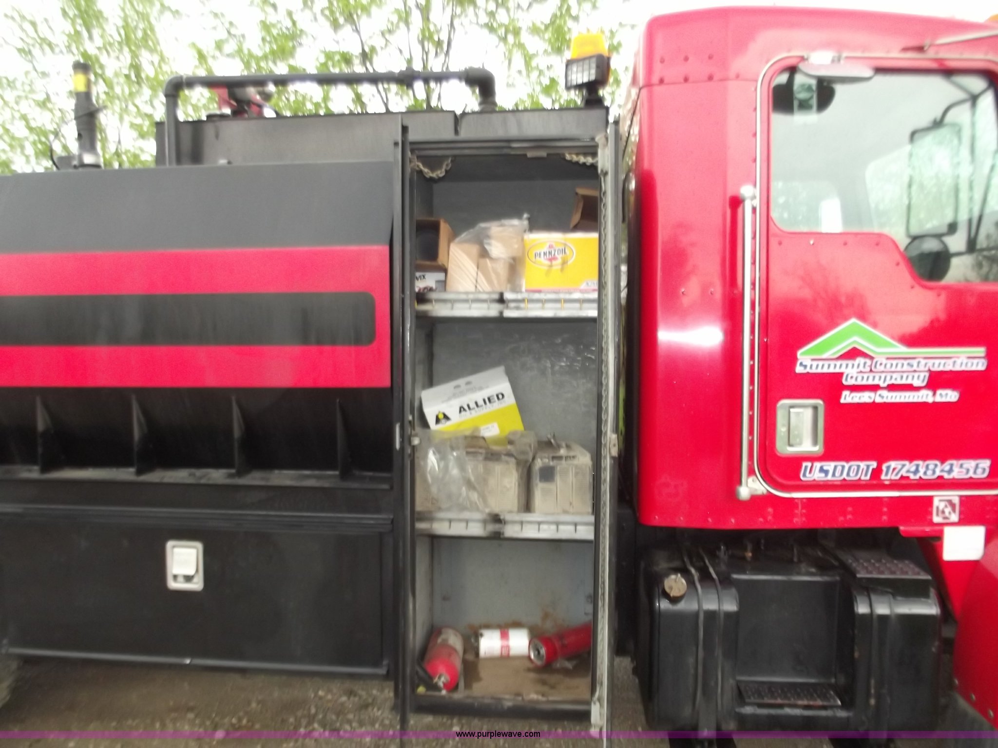 1997 Kenworth service truck. 195,136 miles on odometer, Caterpillar 3126 7.2L diesel engine 224 HP, Eaton Fuller eight speed manual transmission, AC and heat, Cruise, AM/FM/CD, Air ride seat, Rawson-Koenig service bed (8) bay doors (2) have toolboxes mounted, (3) retractable hose reels, (2) bulk storage tank, Air hose reel on rear, Retrieval hose on rear, 60' fuel hose and reel mounted on rear, Air compressor with Honda GX390 gas engine Electric start, Approx. 10 gallon water tank Electric pump, Bumper, Block heater, 50 gallon fuel tank, Air brakes, Spring suspension, Wheel nut covers, Aluminum wheels, 295/75/22.5 tires, GVWR 31,000 lbs, FAWR 11,000 lbs, RAWR 20,000 lbs, 3.70 gear ratio, 178" wheelbase, 10,044 lbs chassis weight. 3NKMHD7X2VF754514. Shipping quotes available. Summit Construction Company. 15000 S Hamilton Rd. Greenwood, MO 64034