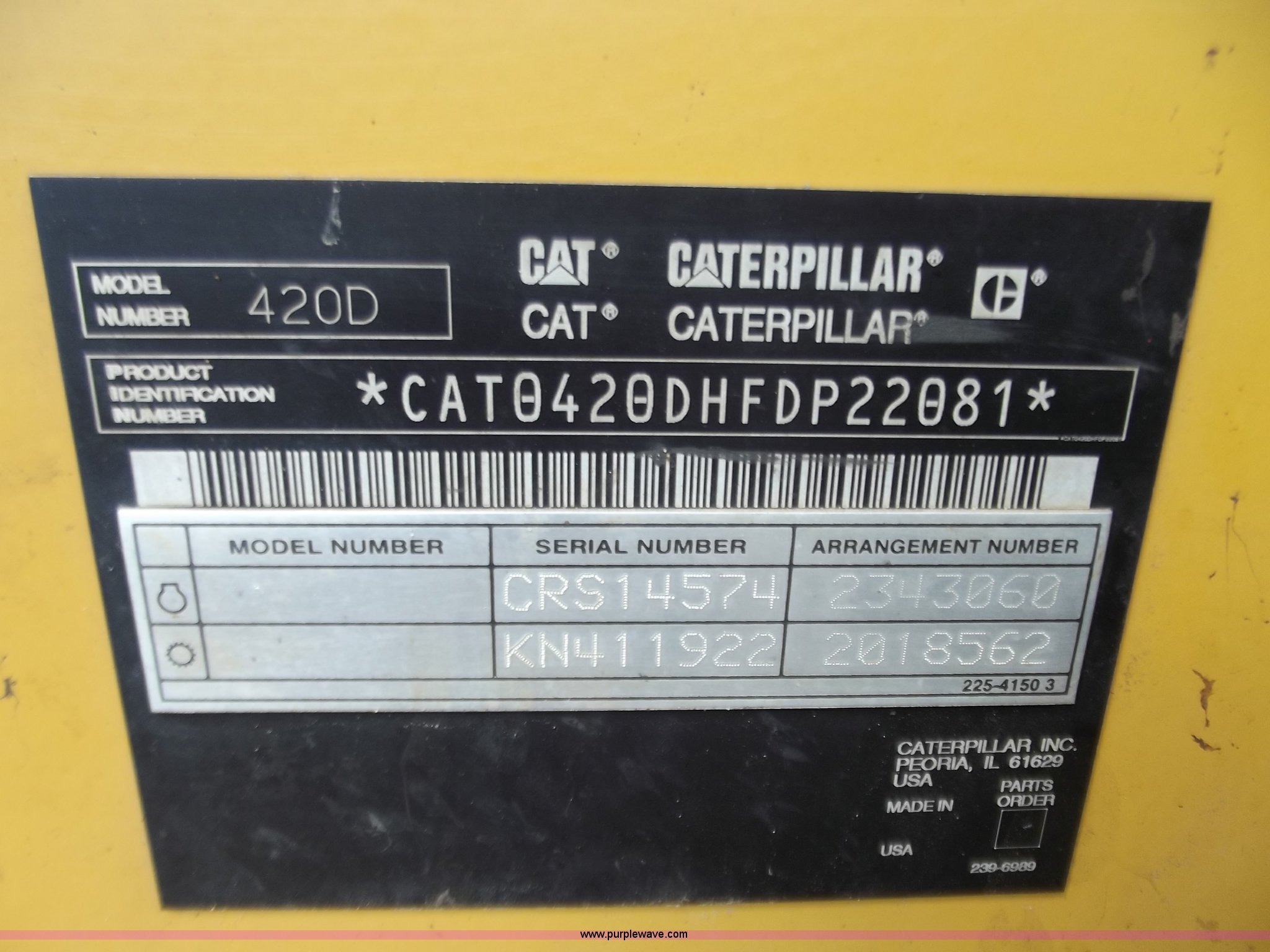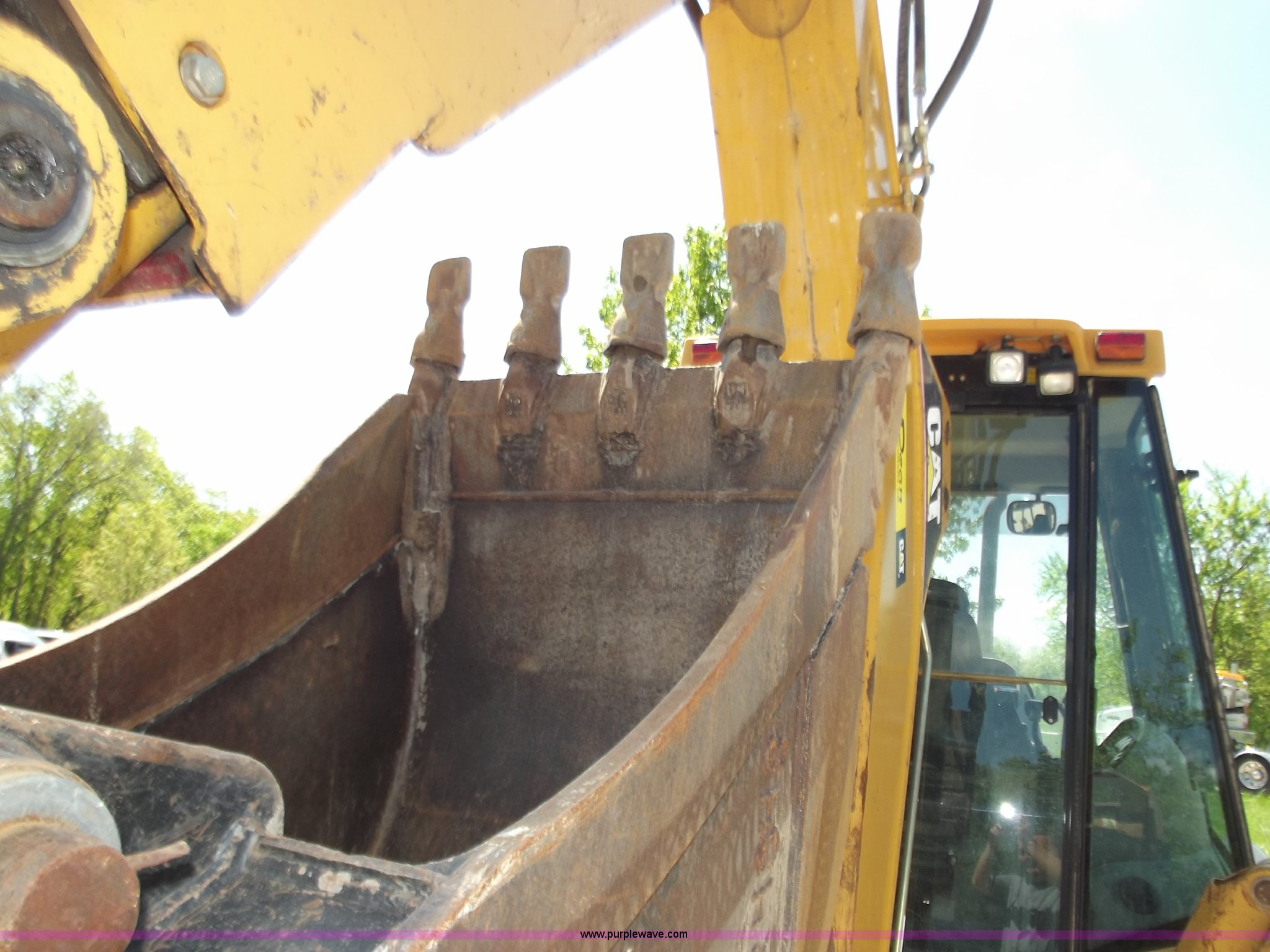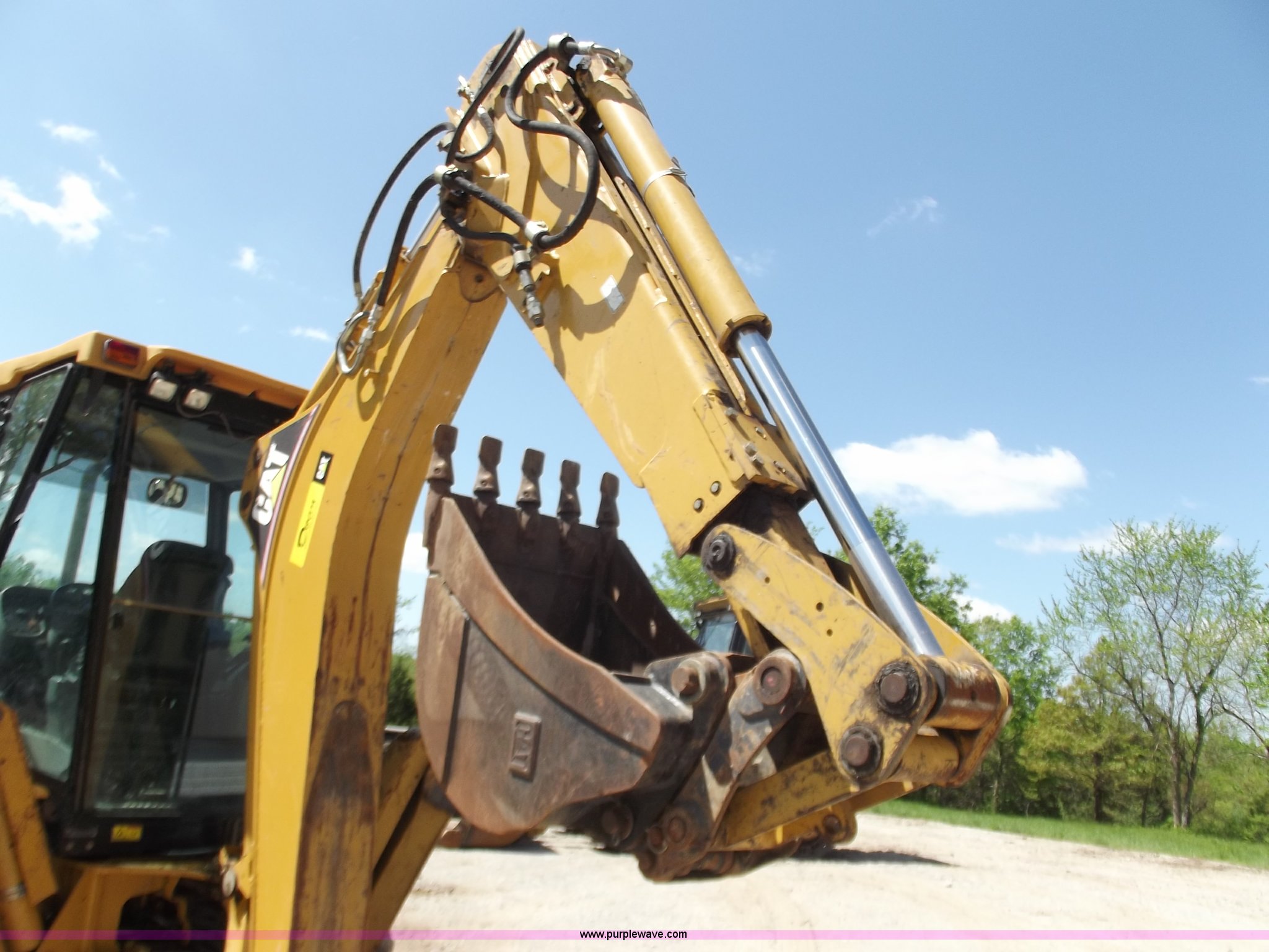 Purple Wave is selling a used Tractor Loader Backhoe in Missouri. This item is a 2005 Caterpillar 420D backhoe with the following: 1,025 hours on meter, Caterpillar 3054T diesel engine, 88 HP, Shuttle shift transmission, 4F-4R gears, Four wheel drive, Cab with AC and heat, Extend-A-Hoe, 88" loader bucket, Bolt-on cutting edge, 24" backhoe bucket, Auxiliary hydraulics, 19.5-L24 rear tires, 12.5/80/18 front tires, 21,605 lbs. base operating weight, Glass in driver side door is out, Will be replaced before sale date, Serial CAT0420DHFDP22081