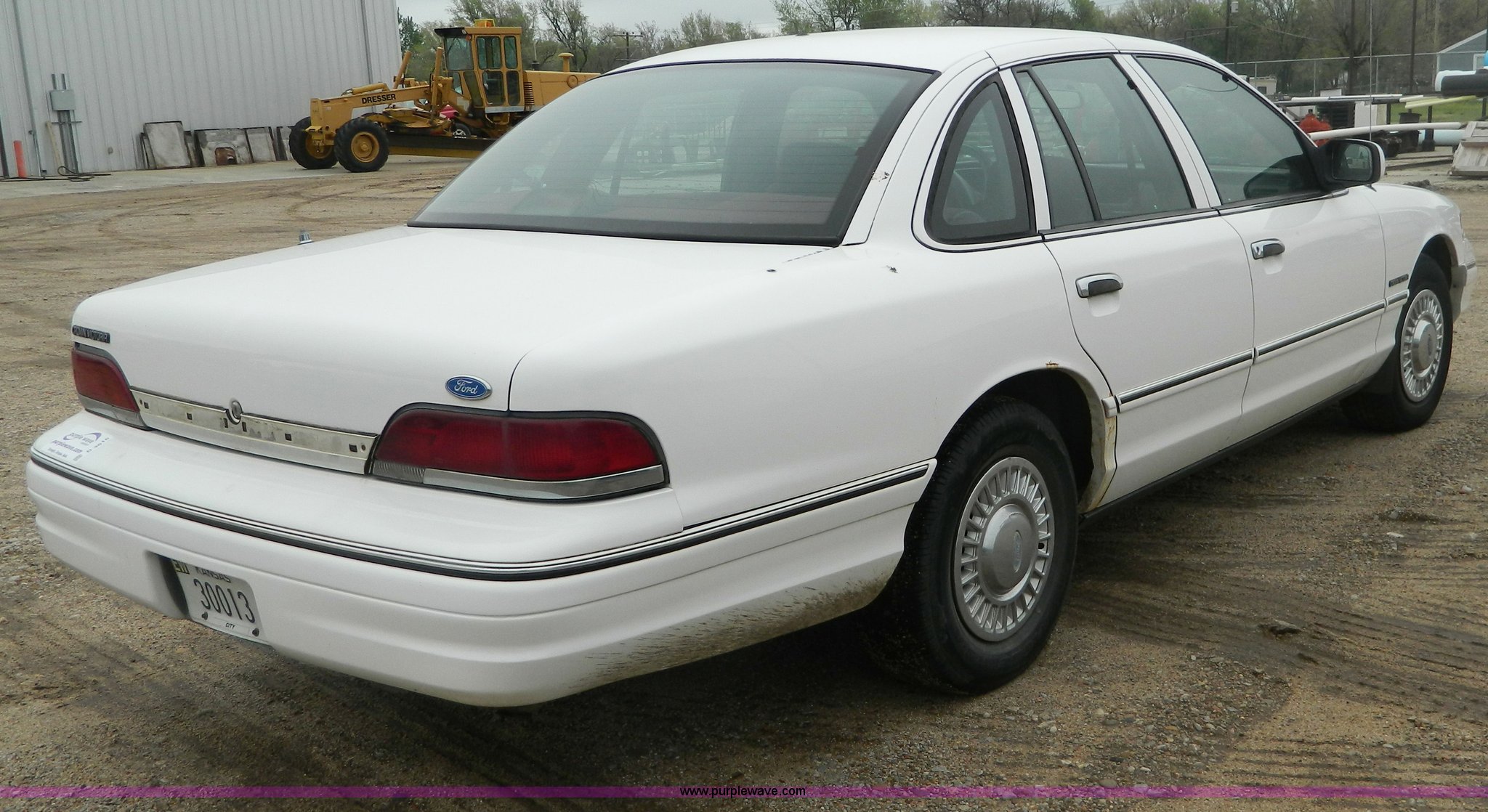 Purple Wave is selling a used Passenger Vehicle in Kansas. This item is a 1994 Ford Crown Victoria Police Interceptor with the following: 318,844 miles on odometer, 4.6L V8 EFI engine, Automatic transmission, AC and heat, Tilt, Cruise, AM/FM, Power windows, locks, and mirrors, P225/70R15 tires, Interior/exterior cosmetic damage, Hail dents, Shift column issue, Cracked windshield, Roof plug