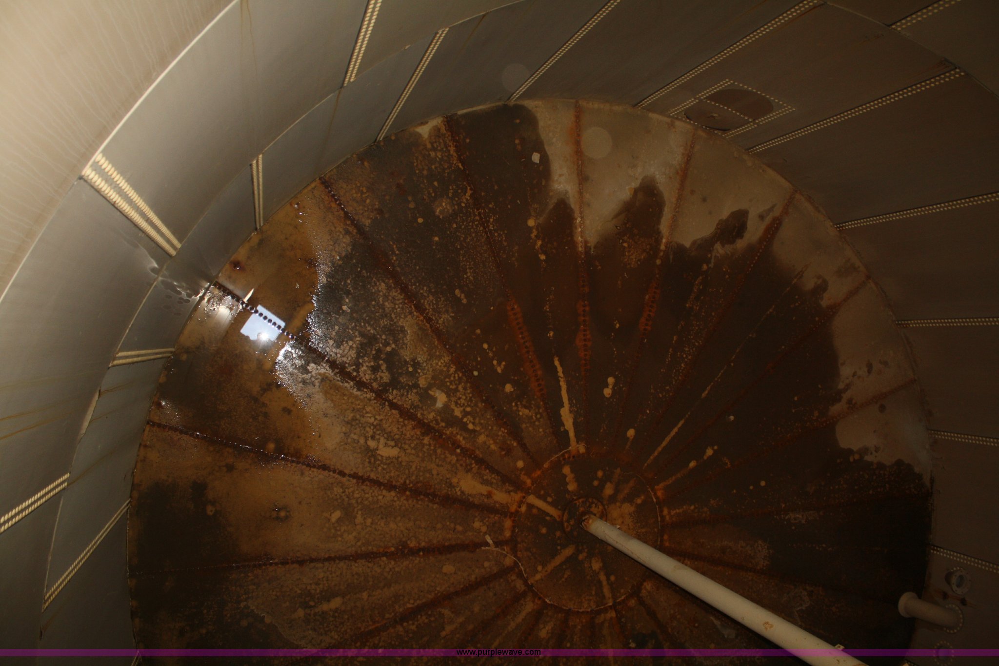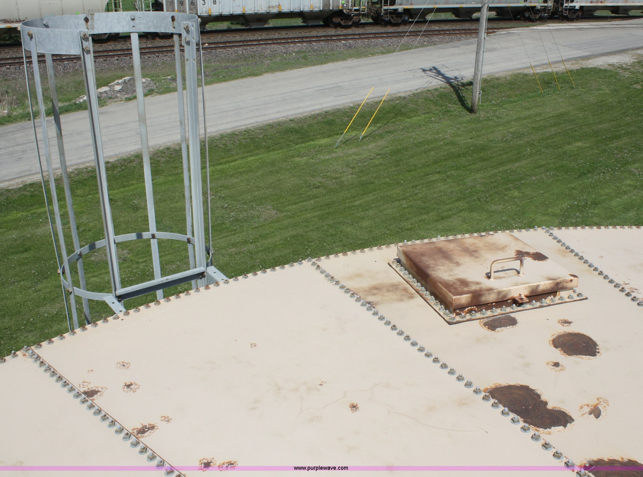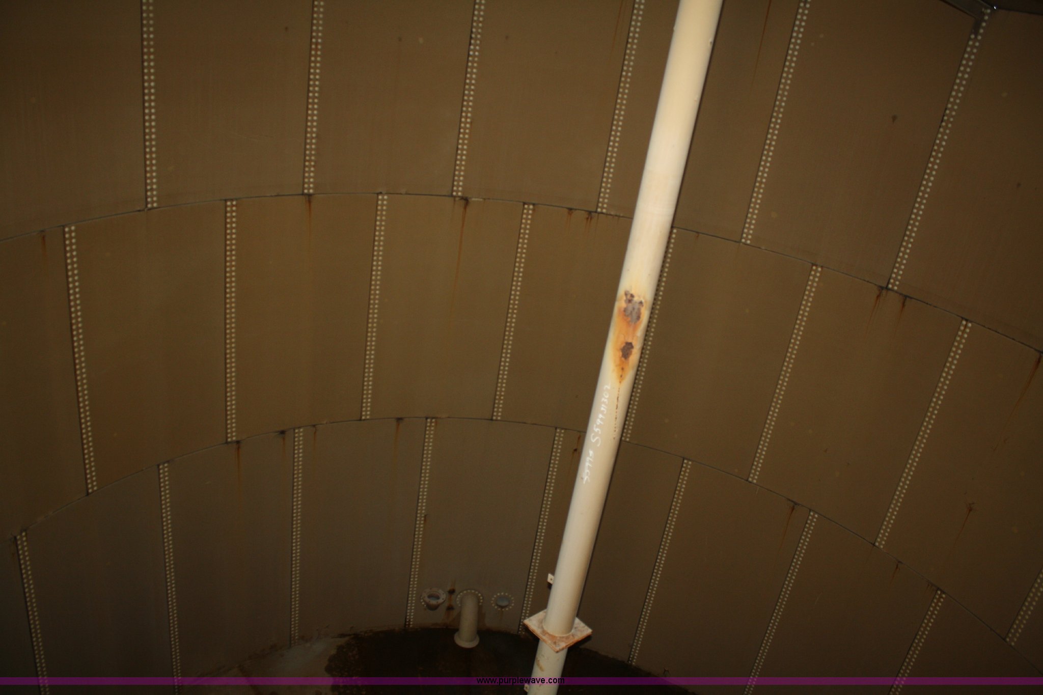 Purple Wave is selling a used Tanks in Kansas. This item is a 100,000 gallon water tank with the following: 26'H x 30' diameter, All lines are unhooked, Buyer responsible for all aspects of loadout and removal