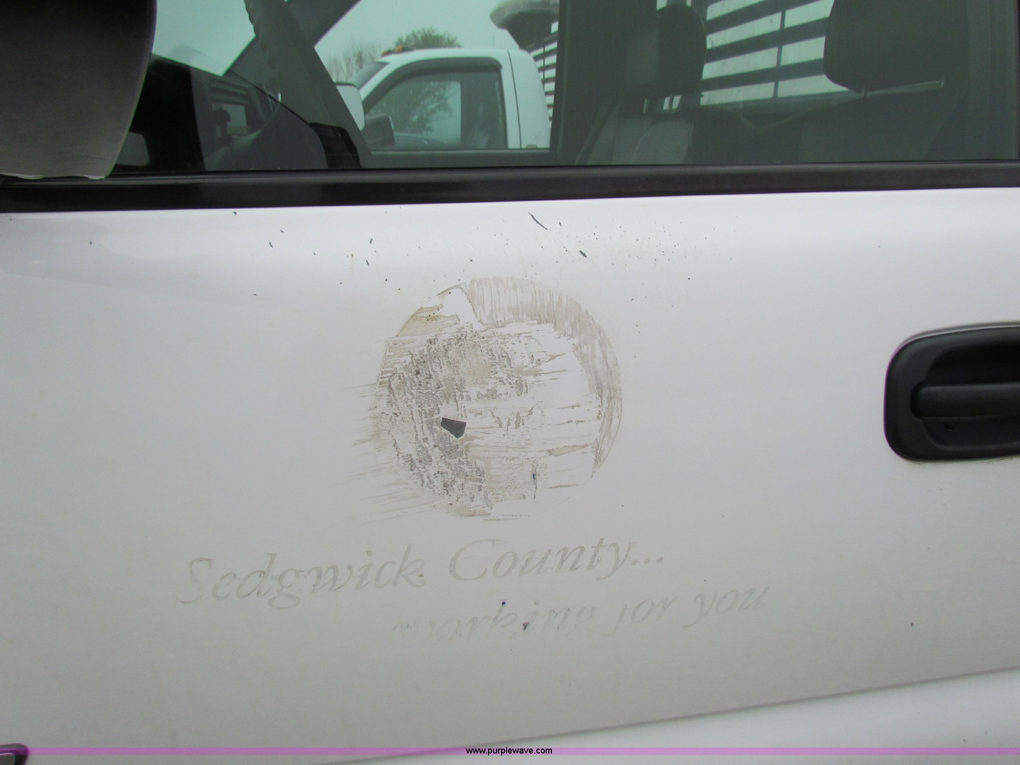 2002 Chevrolet Silverado K3500 pickup truck. 101,210 miles on odometer, Duramax V8 6.6L diesel engine, Automatic transmission, Four wheel drive, AC and heat, AM/FM, Light bar, HD front bumper, Winkel flatbed, 215/85R16 rear tires, 225/75R16 front tires, Equip# A7219. 1GBJK34172E171308. Sedgwick County Fleet. Rose Hill, KS 67133