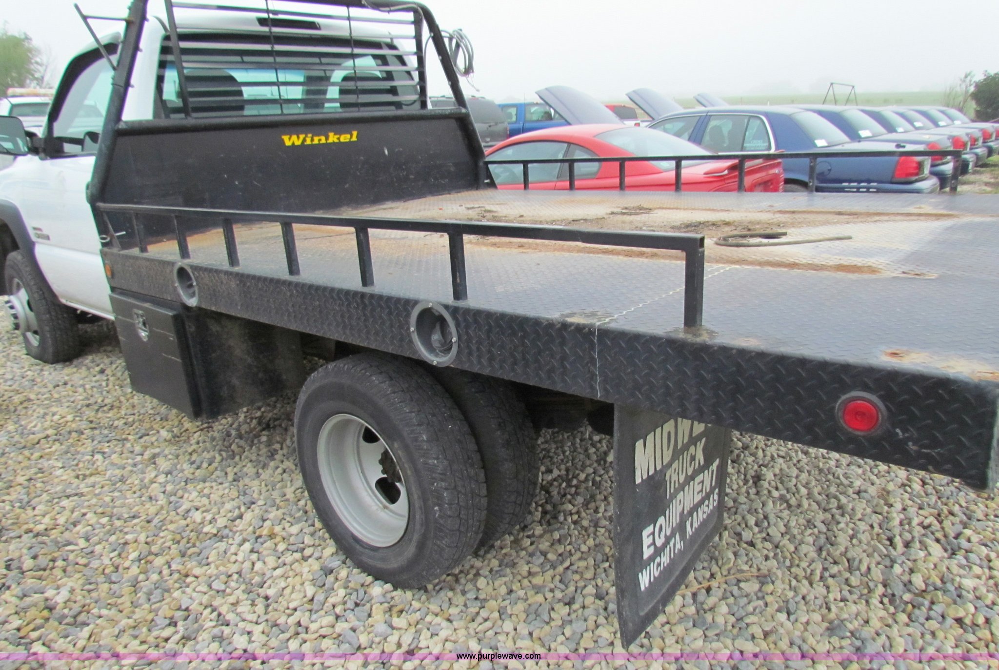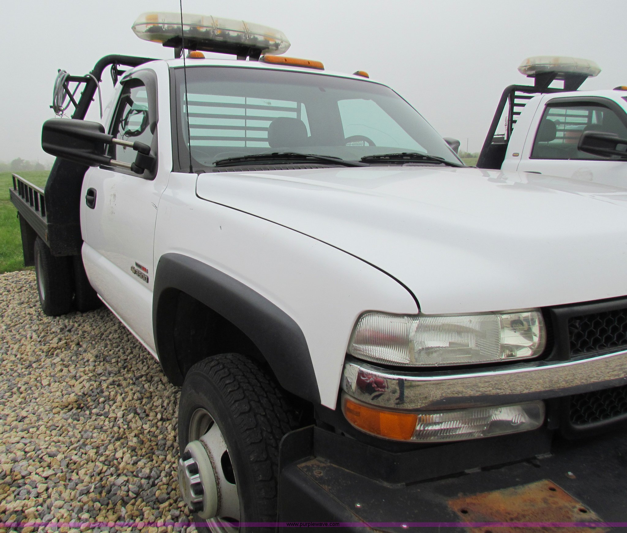 Purple Wave is selling a used 3/4 or 1 Ton Pickup or Van in Kansas. This item is a 2002 Chevrolet Silverado K3500 pickup truck with the following: 68,023 miles on odometer, Duramax V8 6.6L diesel engine, Automatic transmission, Four wheel drive, AC and heat, AM/FM, Light bar, HD front bumper, Winkel flatbed, 215/85R16 tires, One tire leaks, Equip# A7220