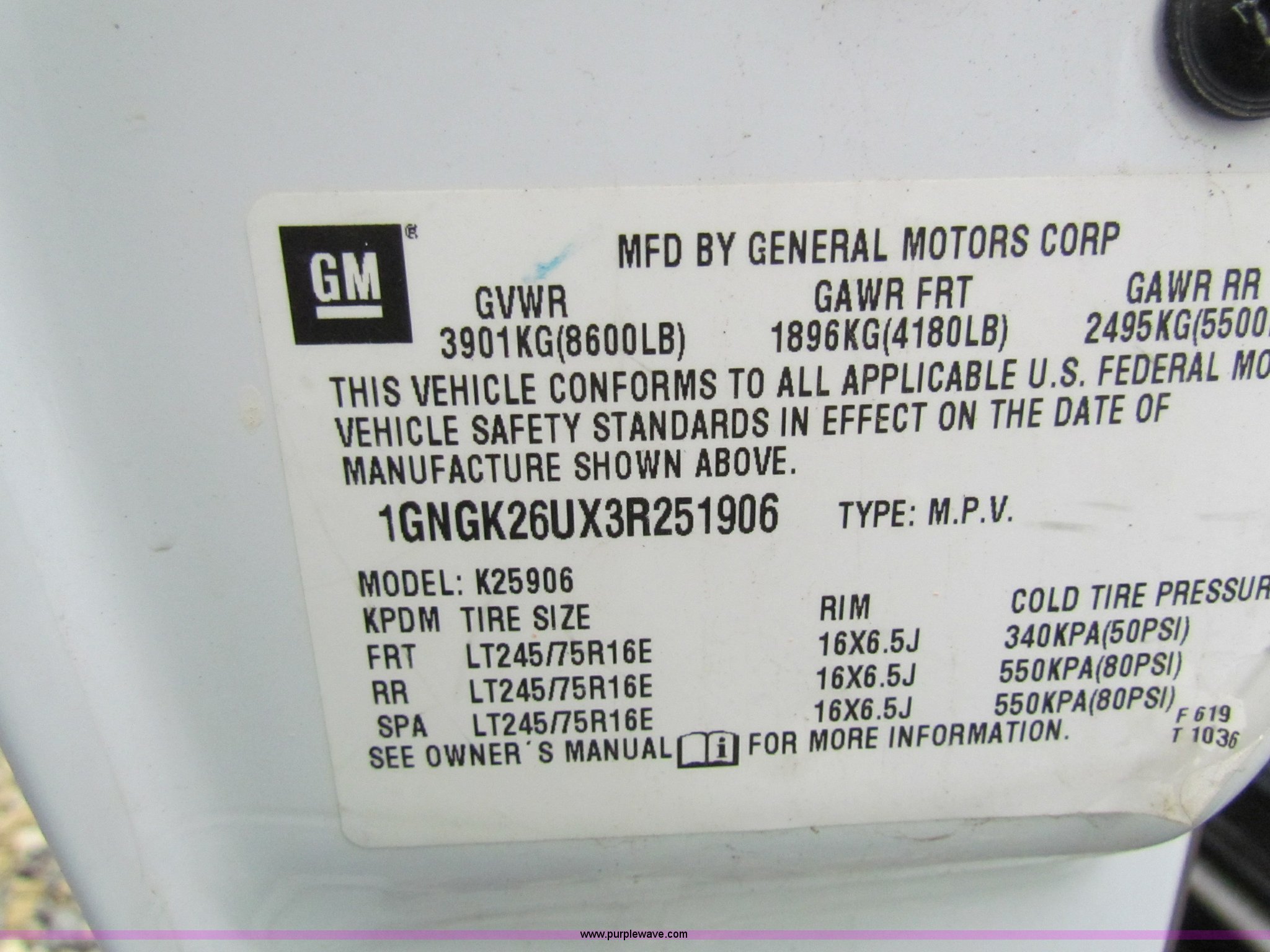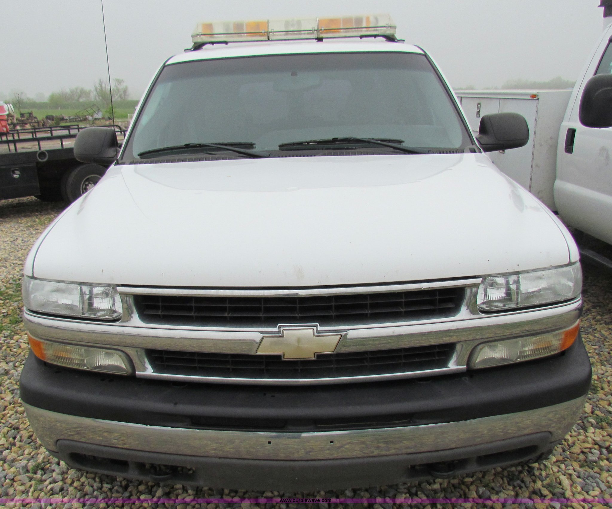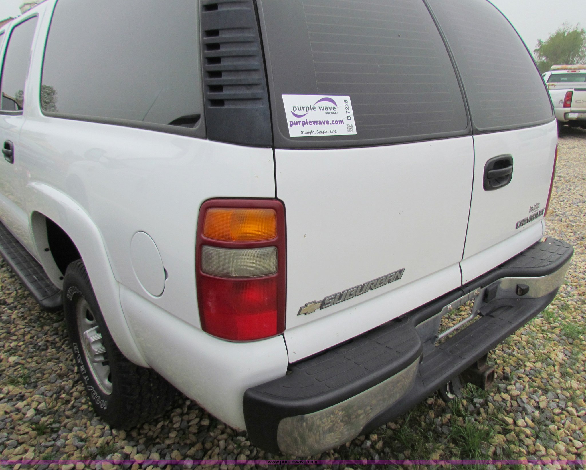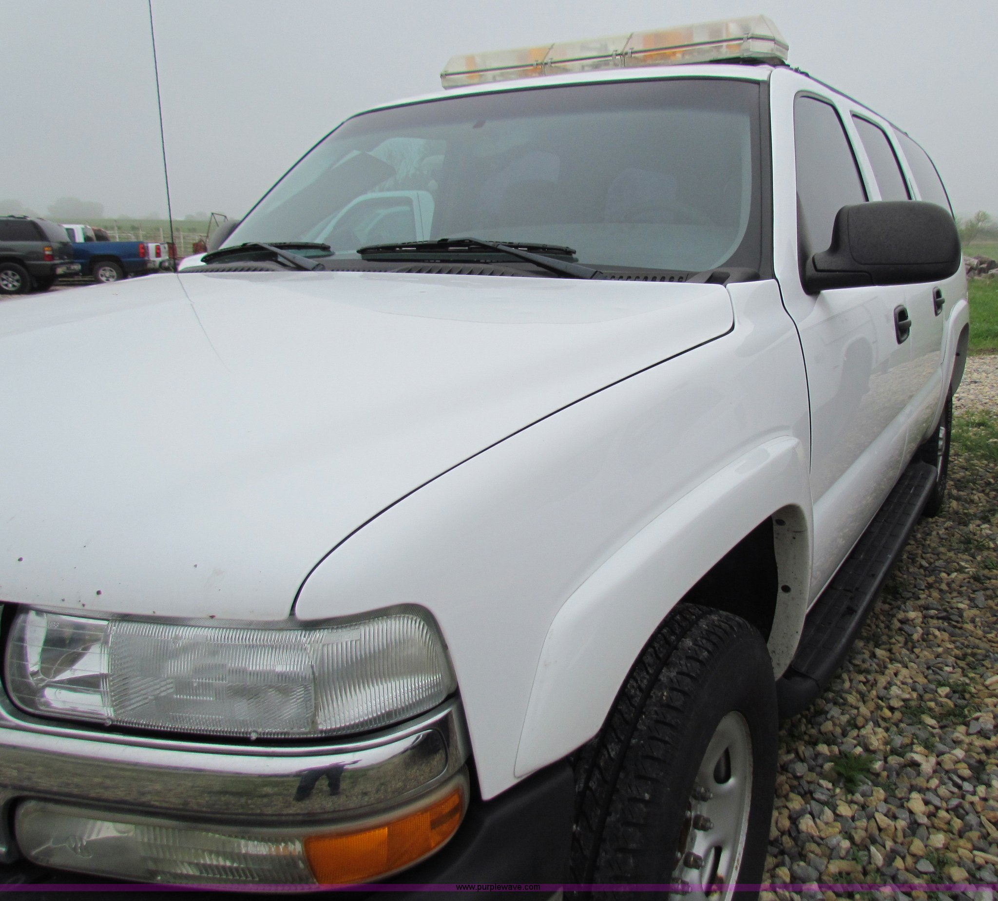 Purple Wave is selling a used Passenger Vehicle in Kansas. This item is a 2003 Chevrolet Suburban K2500 SUV with the following: 109,997 miles on odometer, 6.0L V8 SFI gas engine, Automatic transmission, Four wheel drive, AC and heat, Tilt, Cruise, AM/FM, Power windows and locks, Dual climate control, Light bar with Code 3 controls, Strobe lights, 245/75R16 tires, Dead battery, Interior/exterior cosmetic damage, Rust, Hail damage, Equip# 0435