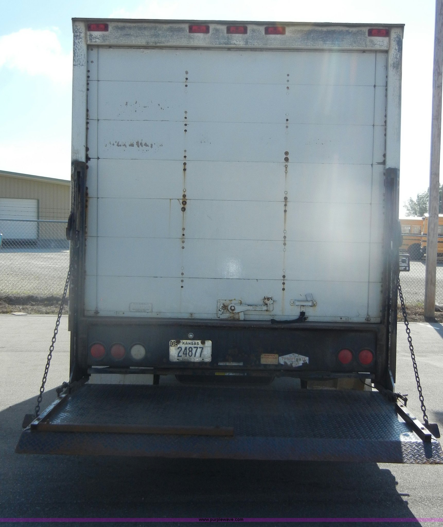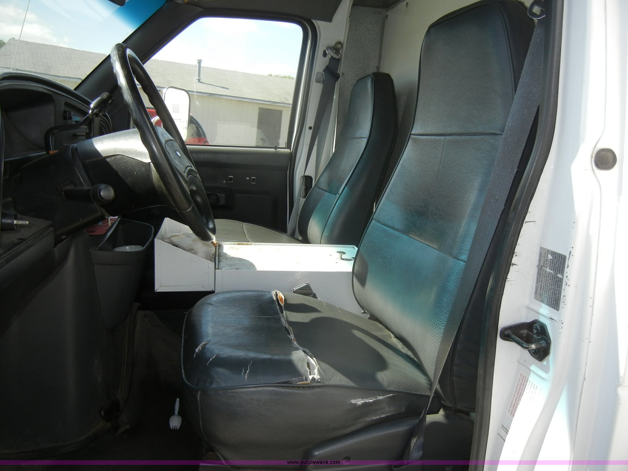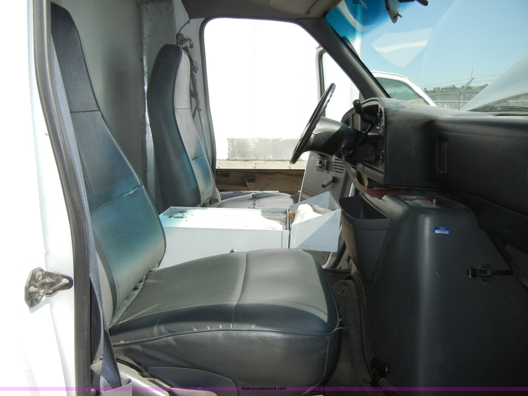 Purple Wave is selling a used Box Truck in Kansas. This item is a 1995 Ford E350 cargo van with lift gate with the following: 110,226 miles on odometer, 5.8L V8 EFI gas engine, Automatic transmission, AC and heat, AM/FM, Manual windows and locks, Vinyl interior, Brown cargo box, 151" x 8', Model 916SA1285, Serial P842495, Tommy Gate 895 lift, Serial M16-16542R, Bottom side rusted, Wood flooring, Roll up rear door, Straps not included, 225/75R16 tires, GVWR 10,700 lbs, Interior/exterior cosmetic damage, Interior door handles damaged, Body rust, ID# 42
