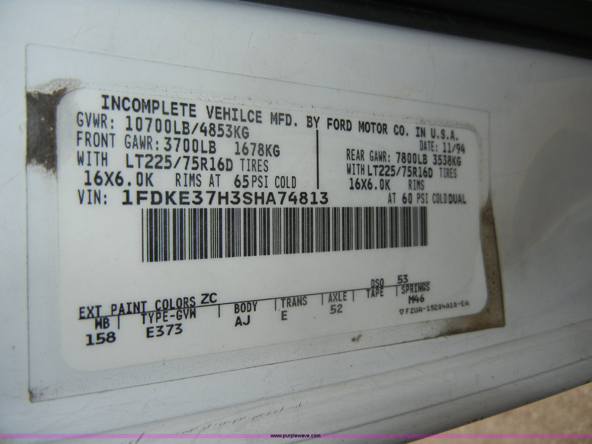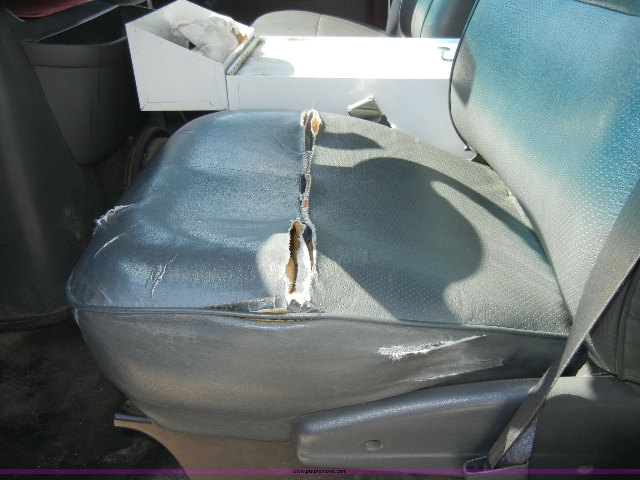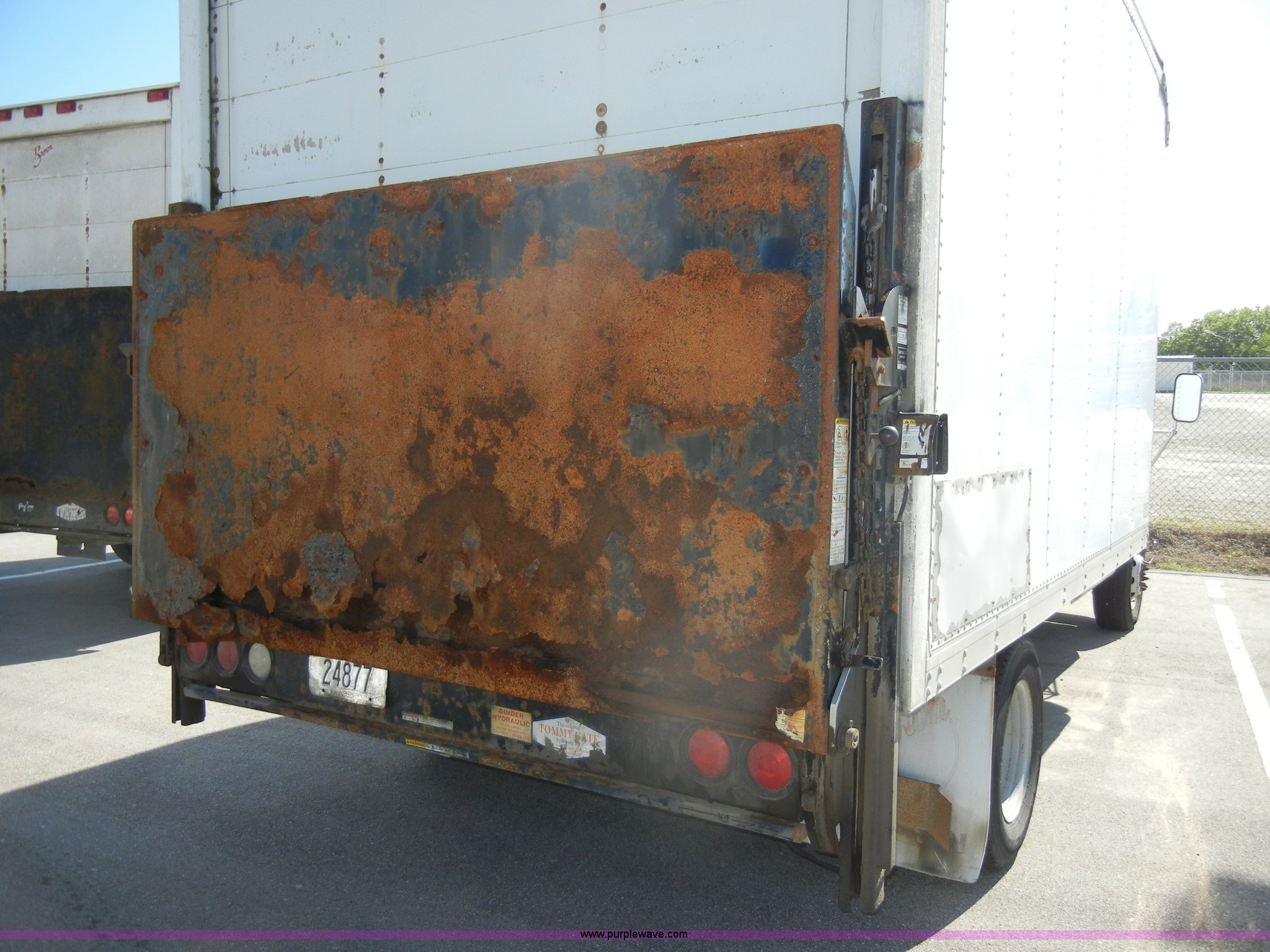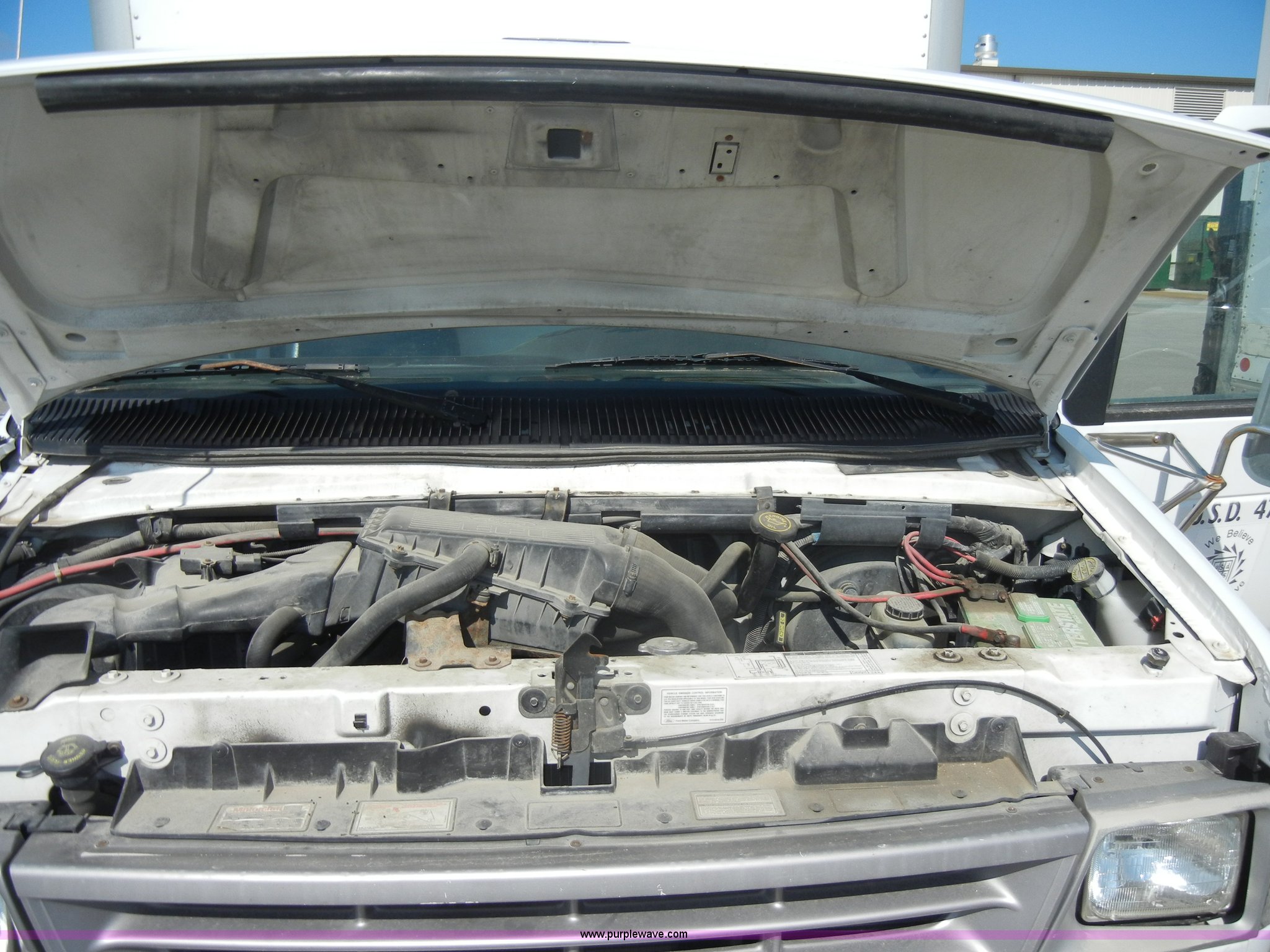 Purple Wave is selling a used Box Truck in Kansas. This item is a 1995 Ford E350 cargo van with lift gate with the following: 110,226 miles on odometer, 5.8L V8 EFI gas engine, Automatic transmission, AC and heat, AM/FM, Manual windows and locks, Vinyl interior, Brown cargo box, 151" x 8', Model 916SA1285, Serial P842495, Tommy Gate 895 lift, Serial M16-16542R, Bottom side rusted, Wood flooring, Roll up rear door, Straps not included, 225/75R16 tires, GVWR 10,700 lbs, Interior/exterior cosmetic damage, Interior door handles damaged, Body rust, ID# 42
