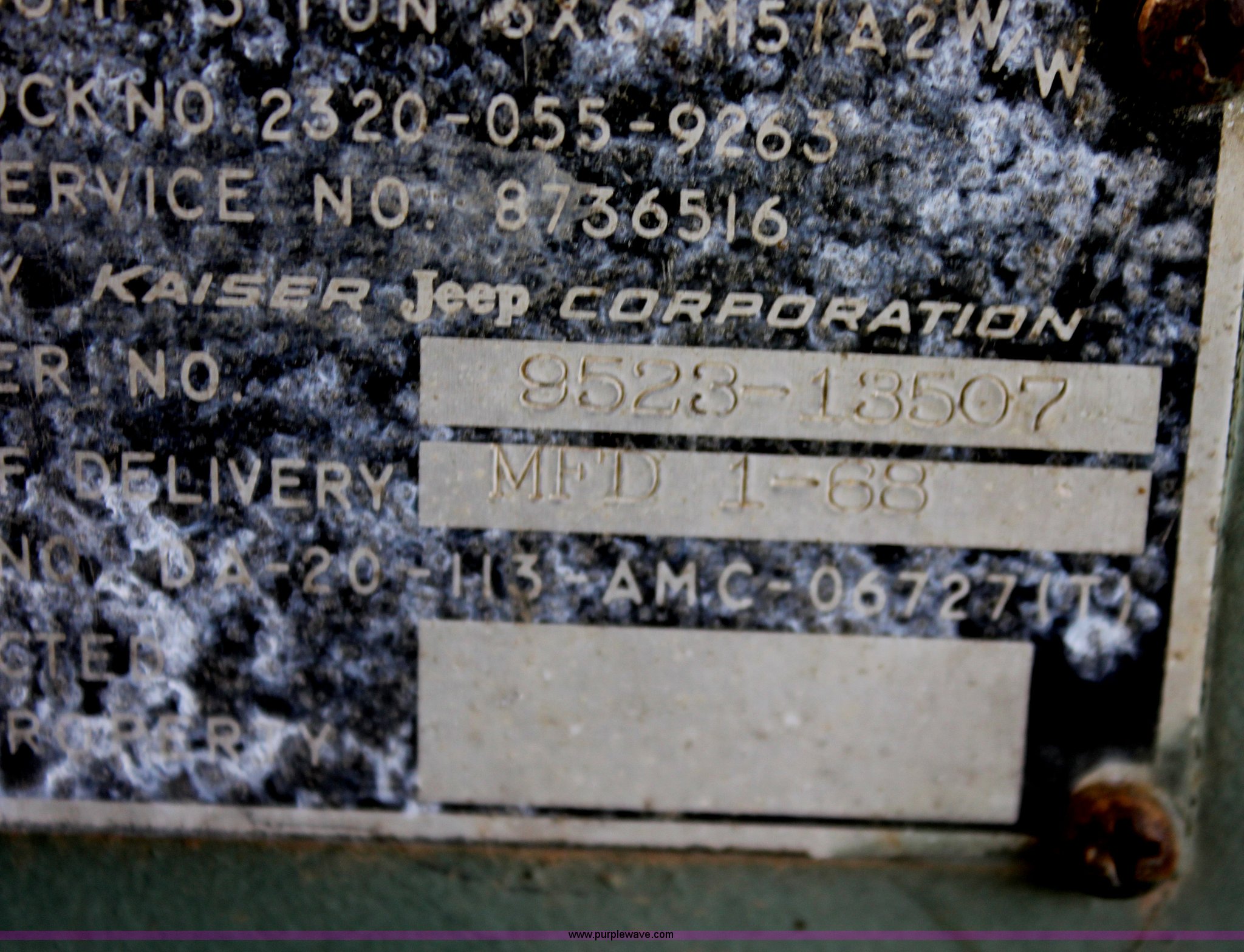 Take a look at this used 1968 Kaiser 6x6 military dump truck being sold on May 8th, 2012 in the SOLD! May 8 Government Auction made by Kaiser. Take a look at all of the item information below or take a look at similar auctions for Construction Trucks.