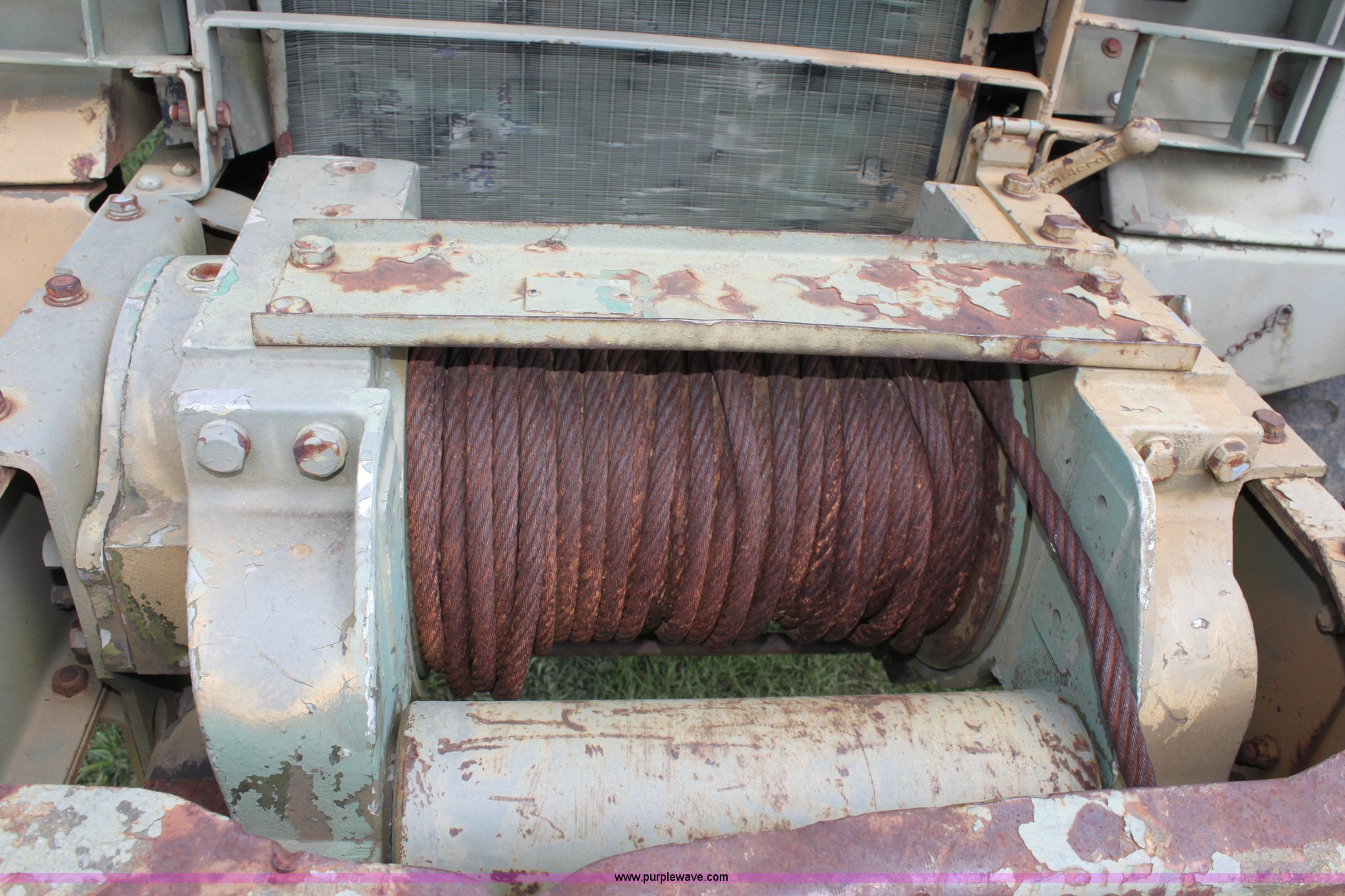 1968 Kaiser 6x6 military dump truck. 36,423 miles on odometer, 2,117 hours on meter, Six cylinder multi fuel engine, Five speed manual transmission, Six wheel drive, 20,000 lbs max payload capacity, 110 gallon fuel tank, 11.00R20 tires, Front mounted winch, Manual end gate release, Rear air trailer hookups, Pintle hitch, Smokes, Has no power, Canvas top ripped. 952313507. 1737 SE Hwy 54. El Dorado, KS 67042