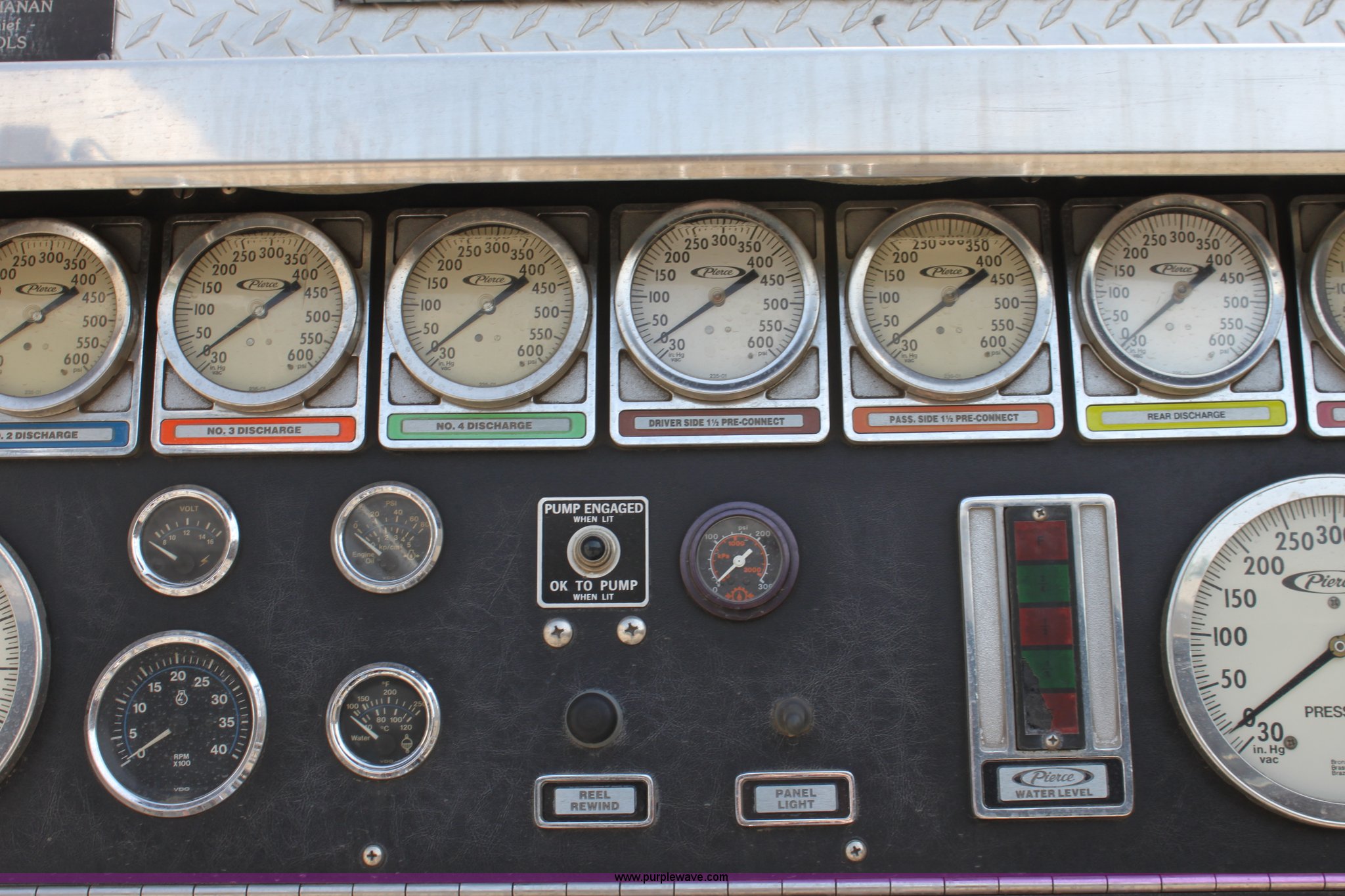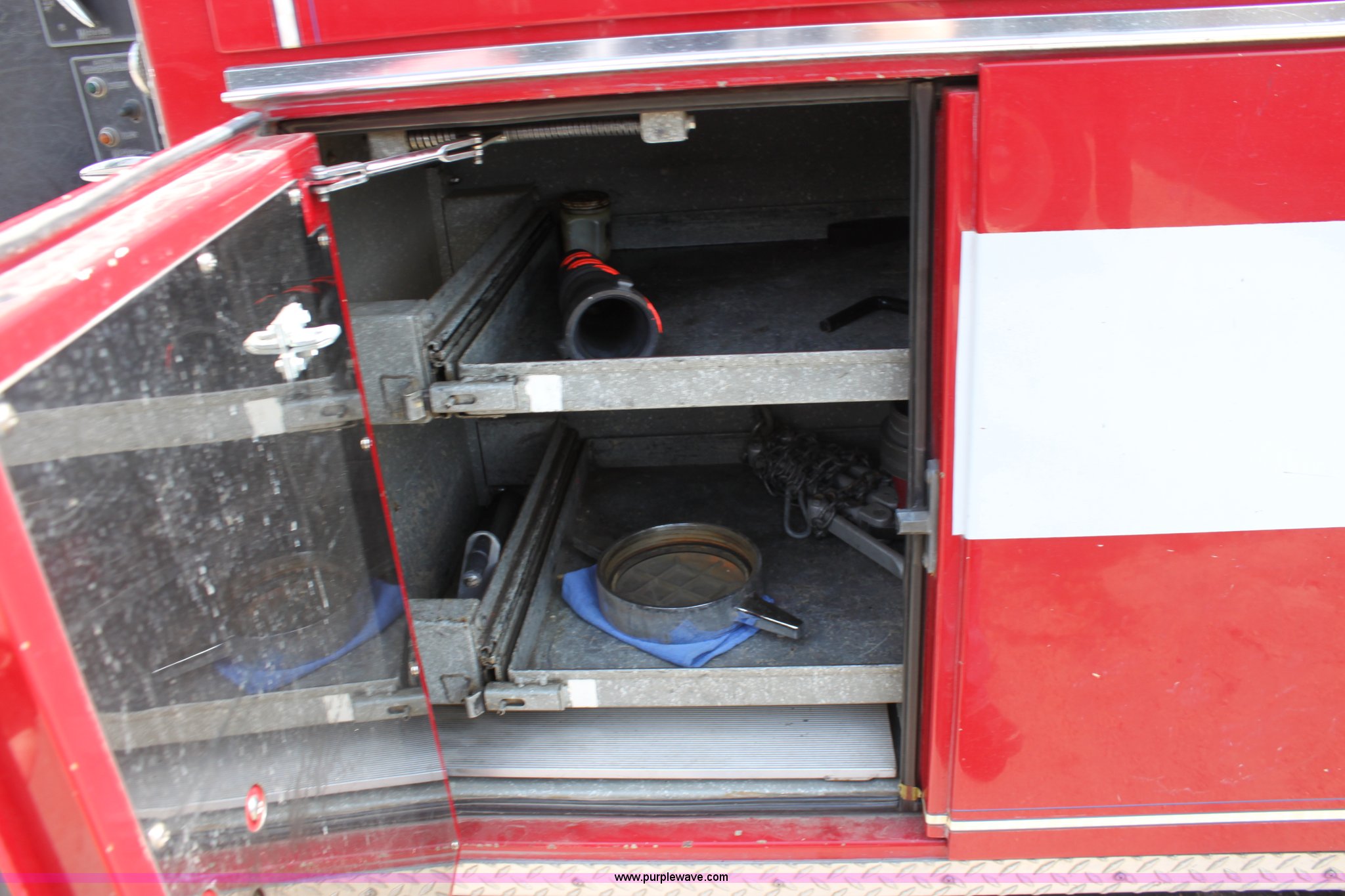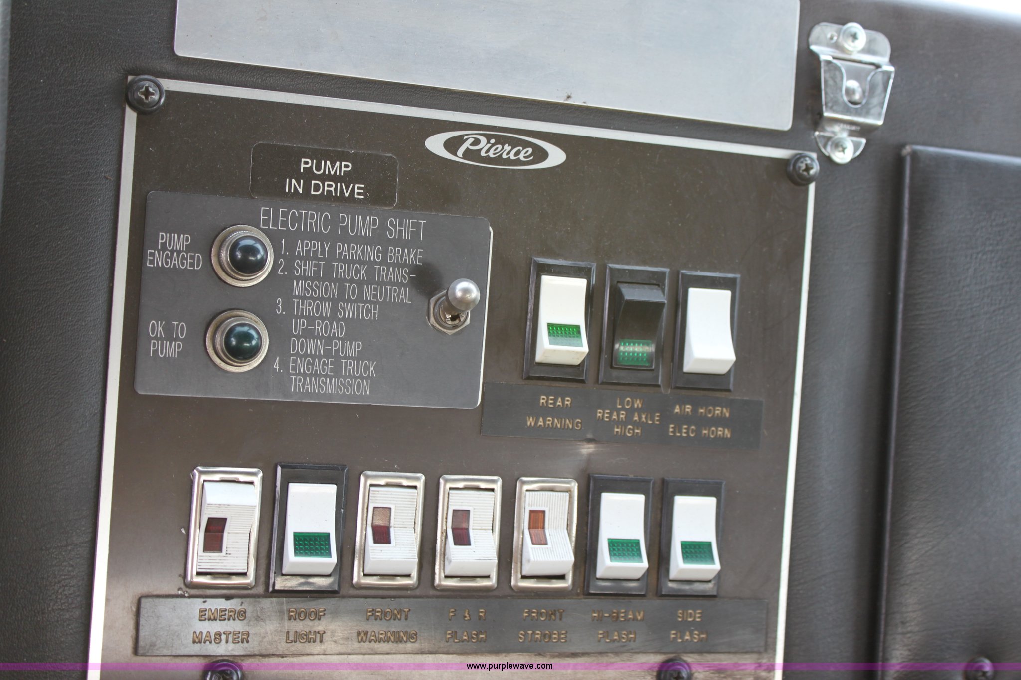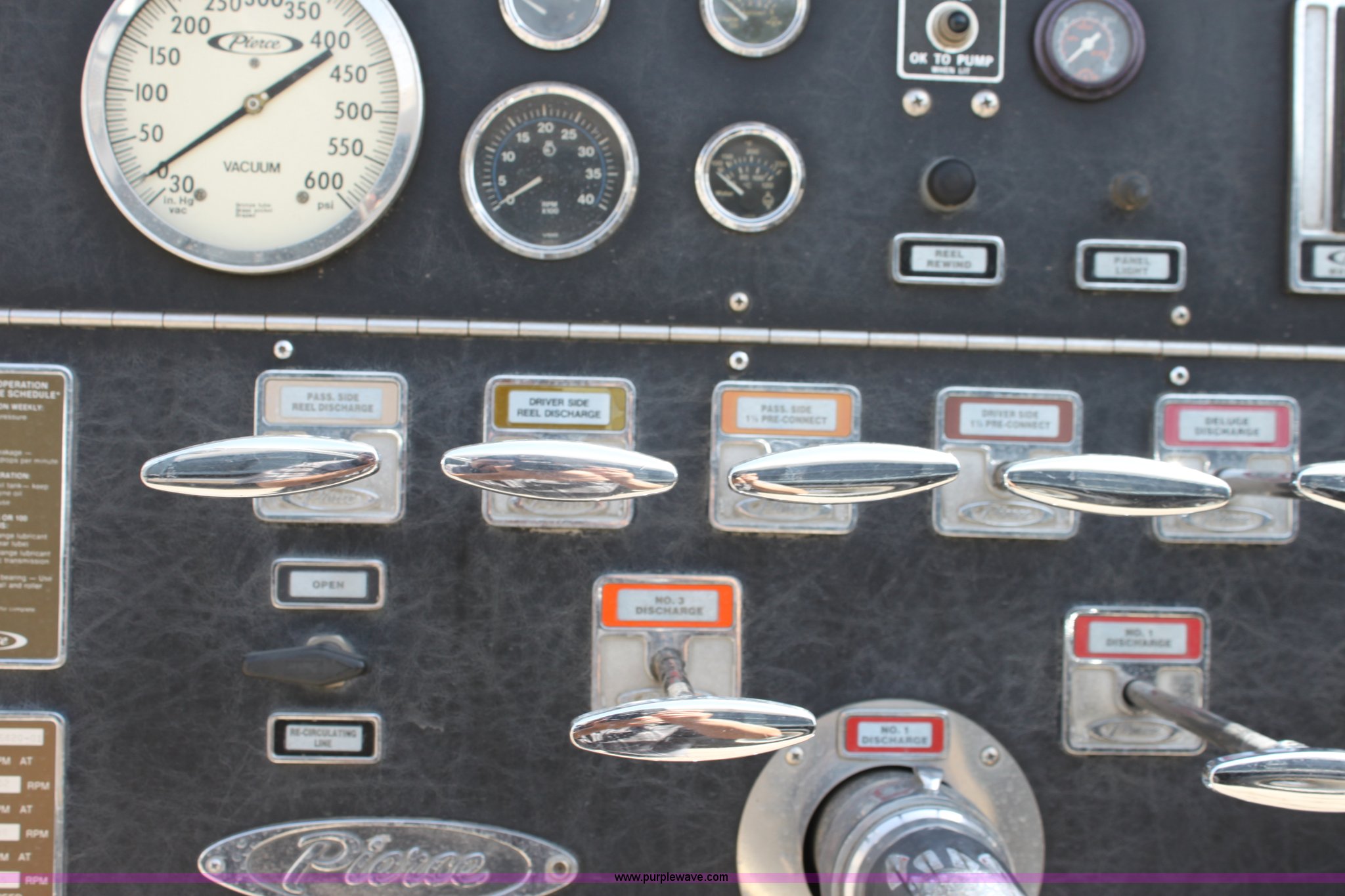 Purple Wave is selling a used Fire Truck or Emergency Vehicle in Kansas. This item is a 1991 Pierce Tilt Cab Fire Engine with the following: 119,278 miles on odometer, Caterpillar 3208 V8 10.4L diesel engine, Automatic transmission, Federal signal and siren controls, Heat, Manual windows and locks, 500 gallon water tank capacity, 883 pump hours on meter, Waterous 1250 gpm pump, 110 and 120 volt external AC outlets, (2) electric rewind hose reels, 1" hose, Rear discharge, Scaling ladder