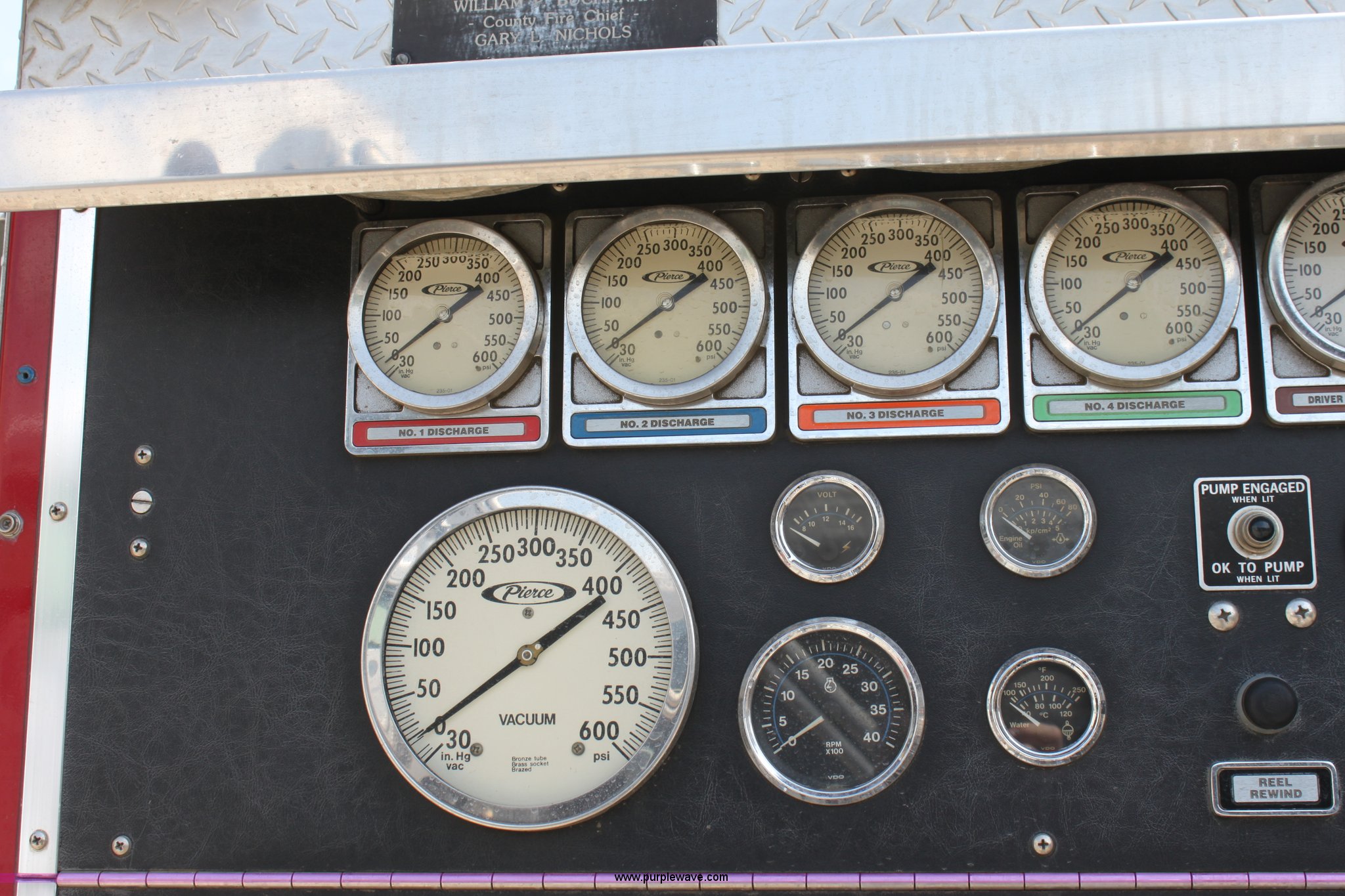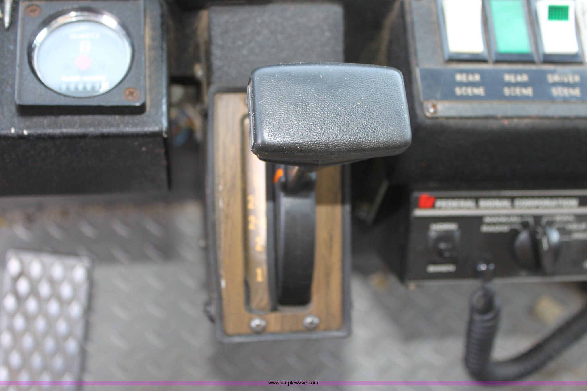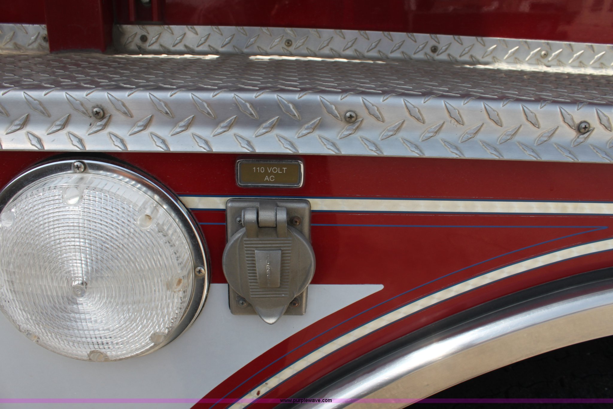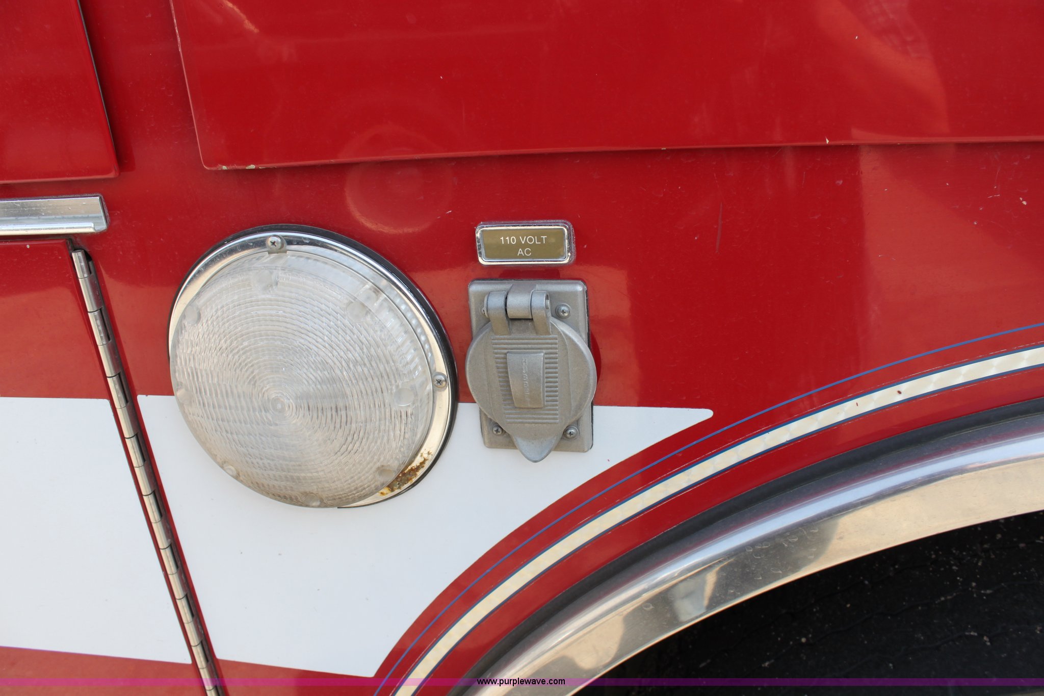 Purple Wave is selling a used Fire Truck or Emergency Vehicle in Kansas. This item is a 1991 Pierce Tilt Cab Fire Engine with the following: 119,278 miles on odometer, Caterpillar 3208 V8 10.4L diesel engine, Automatic transmission, Federal signal and siren controls, Heat, Manual windows and locks, 500 gallon water tank capacity, 883 pump hours on meter, Waterous 1250 gpm pump, 110 and 120 volt external AC outlets, (2) electric rewind hose reels, 1" hose, Rear discharge, Scaling ladder