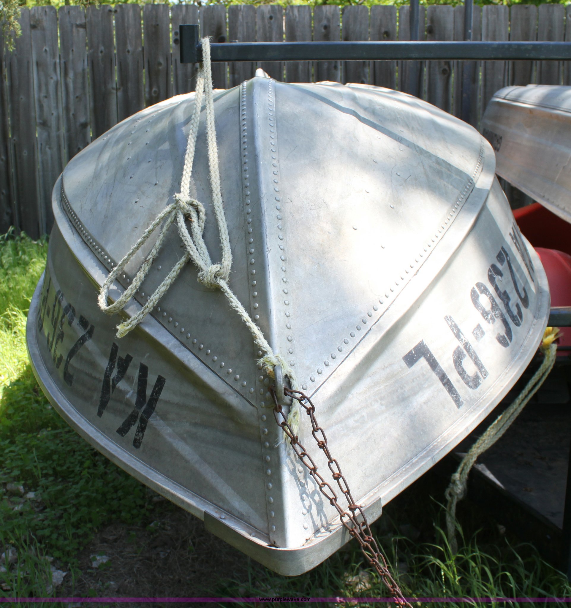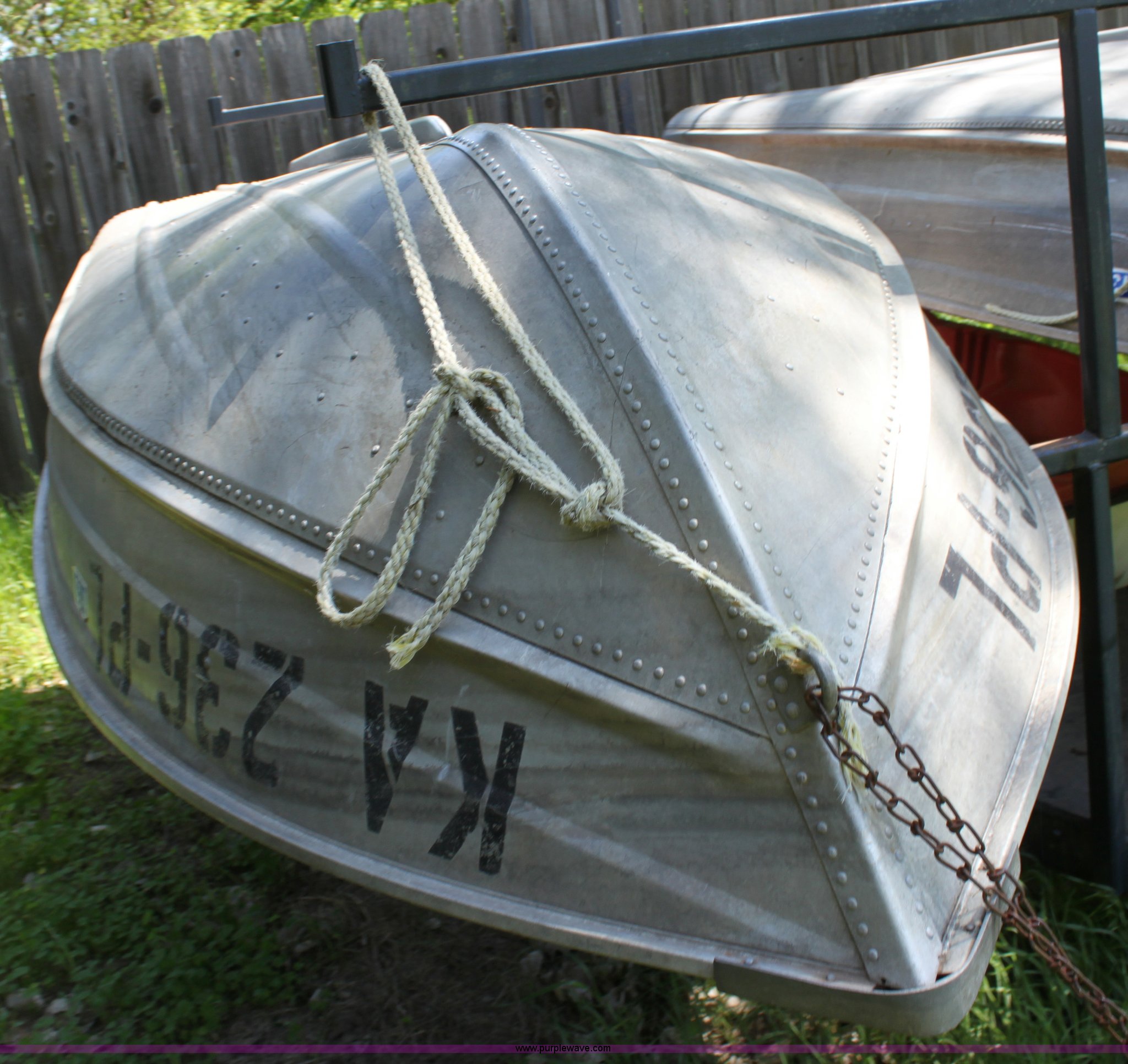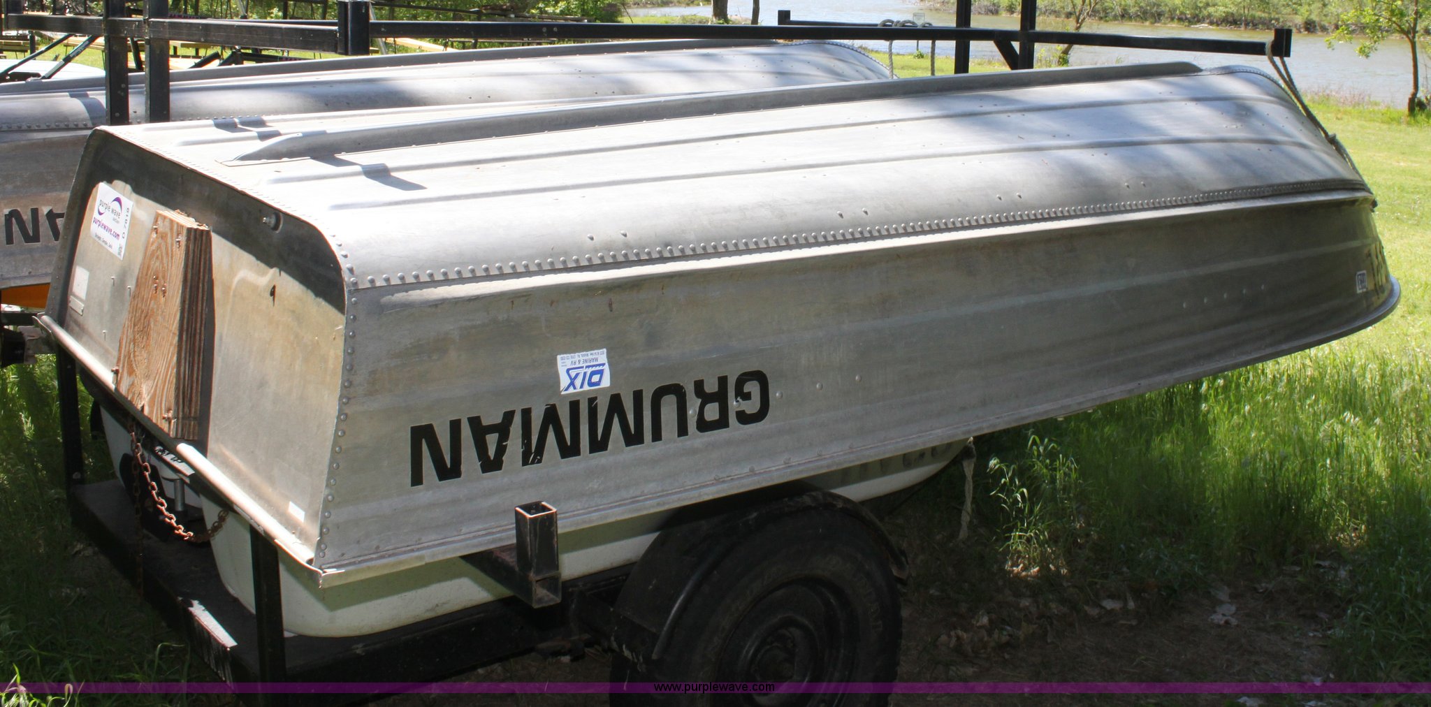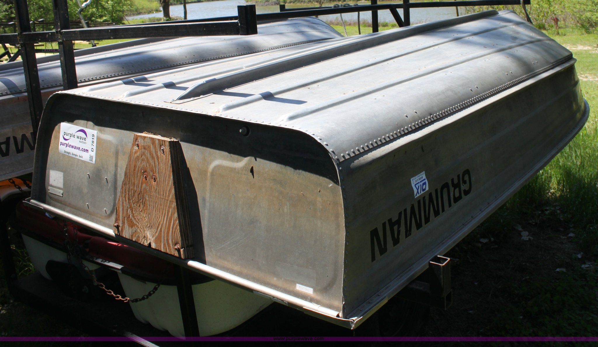 Purple Wave is selling a used Boat in Kansas. This item is a 1992 Grumman 14' aluminum V bottom boat with the following: Three person or 410 lb capacity, Hull ID OMCS8226G293, Trailer not included