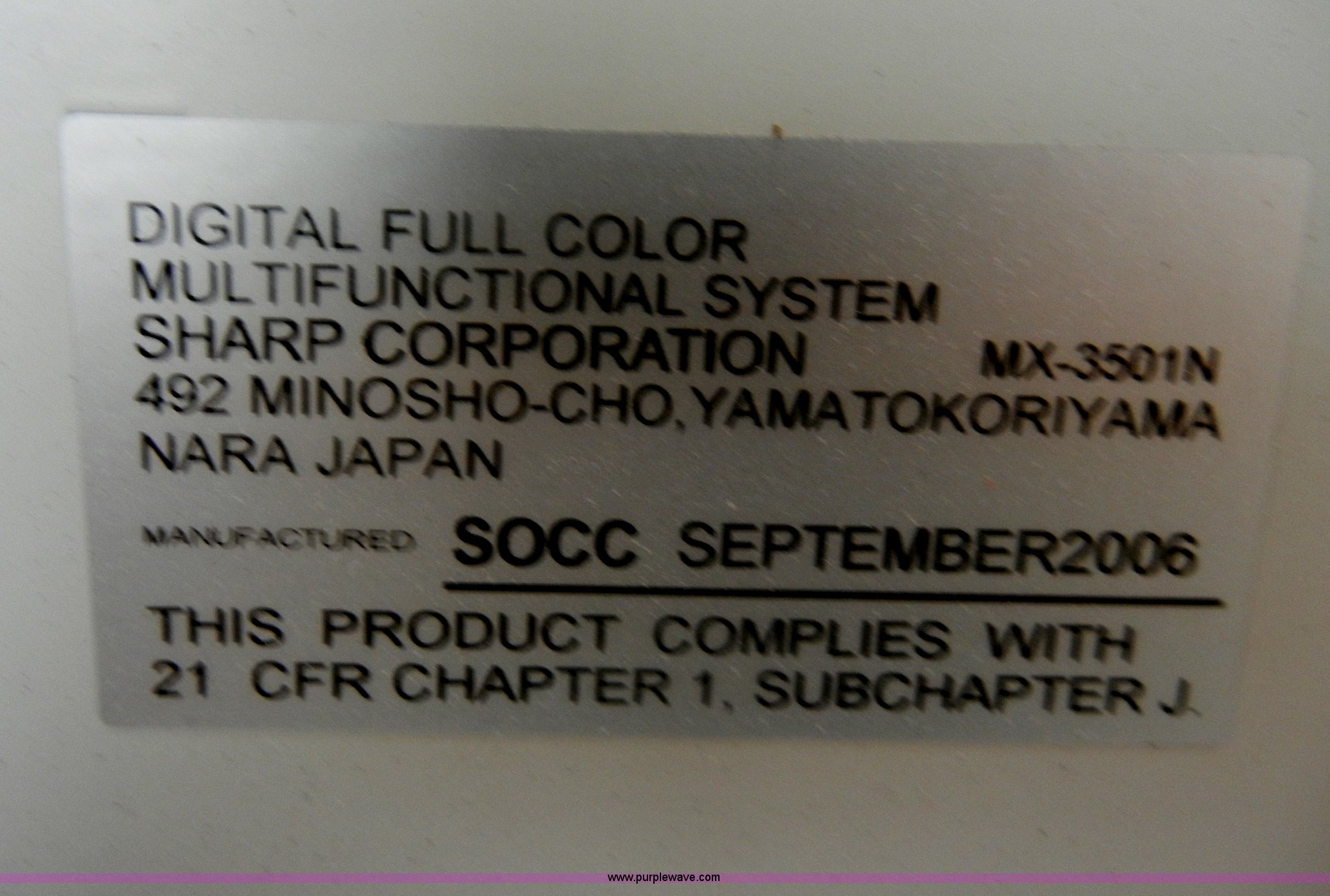 Take a look at this used Sharp MX-3501N color copier being sold on May 8th, 2012 in the SOLD! May 8 Government Auction. Take a look at all of the item information below or take a look at similar auctions for Office Supplies.