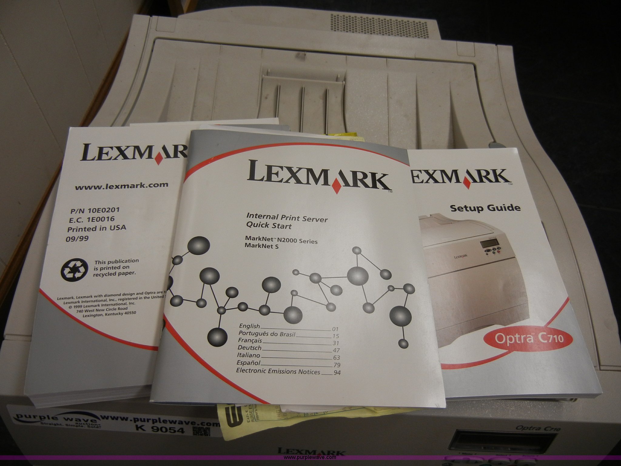 Purple Wave is selling a used Office Supplies and Equip. in Kansas. This item is a Lexmark Optra C710 printer with the following: Manuals, Needs maintenance, Serial 10E01041129650