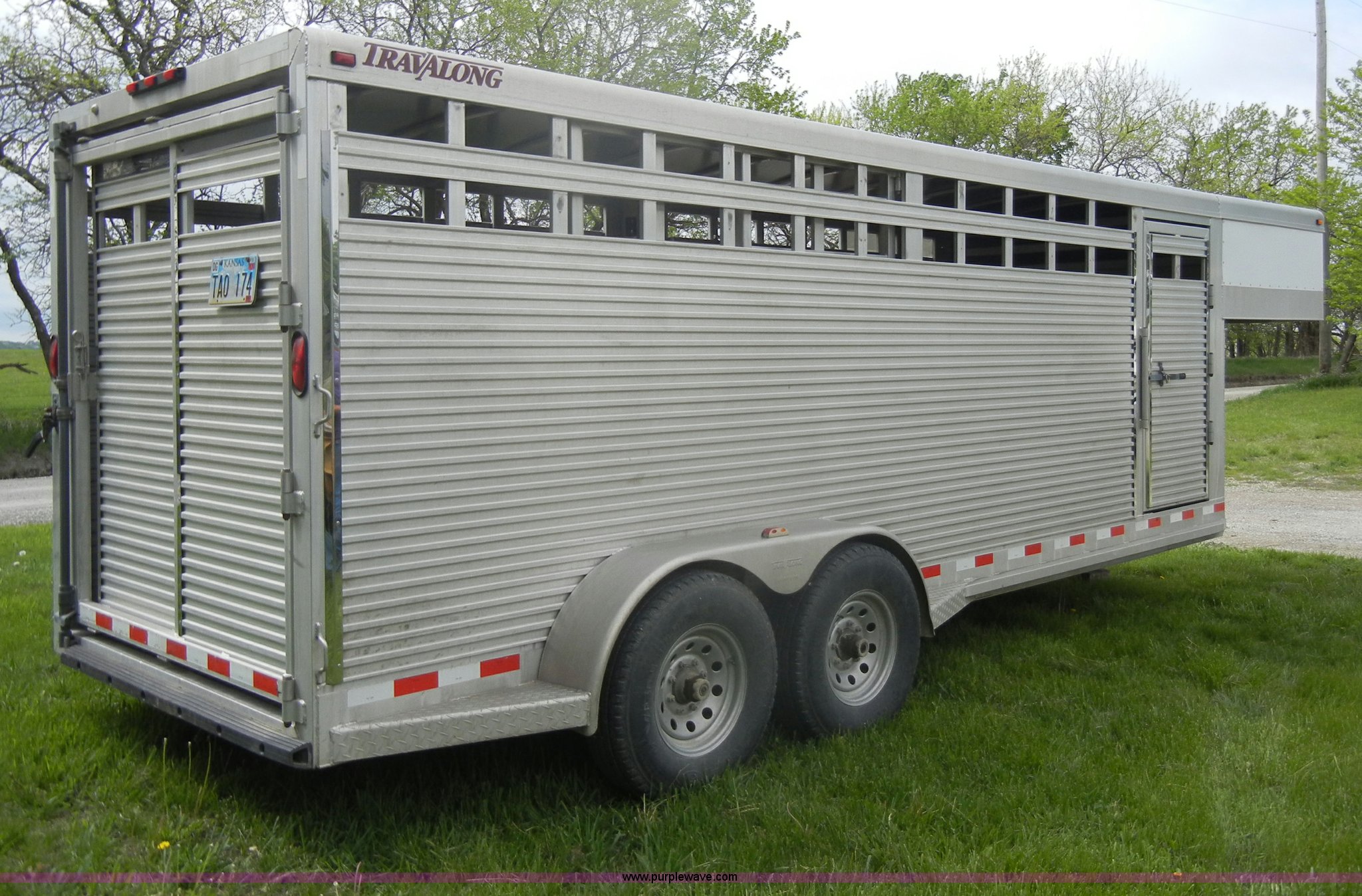 Purple Wave is selling a used Livestock Trailer in Kansas. This item is a 2002 Travalong 20' gooseneck trailer with the following: 7' nose, 6.6' wide, Aluminum flooring with rubber matting, (3) compartments, (2) livestock, Tack and supplies, GVWR 14,118 lbs, GAWR 6,000 lbs, 235/85R16 tires