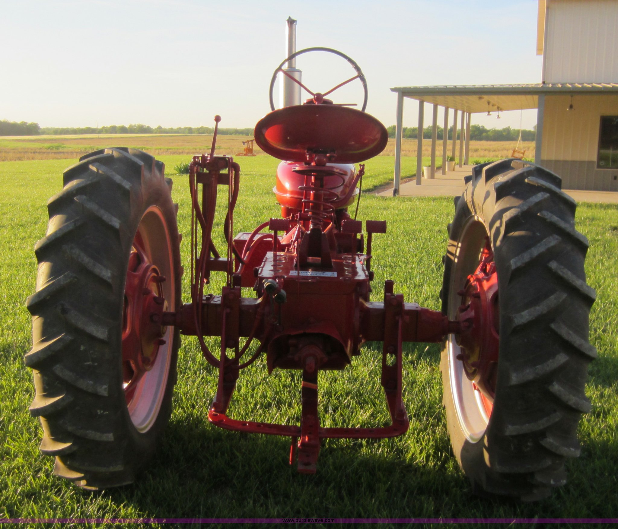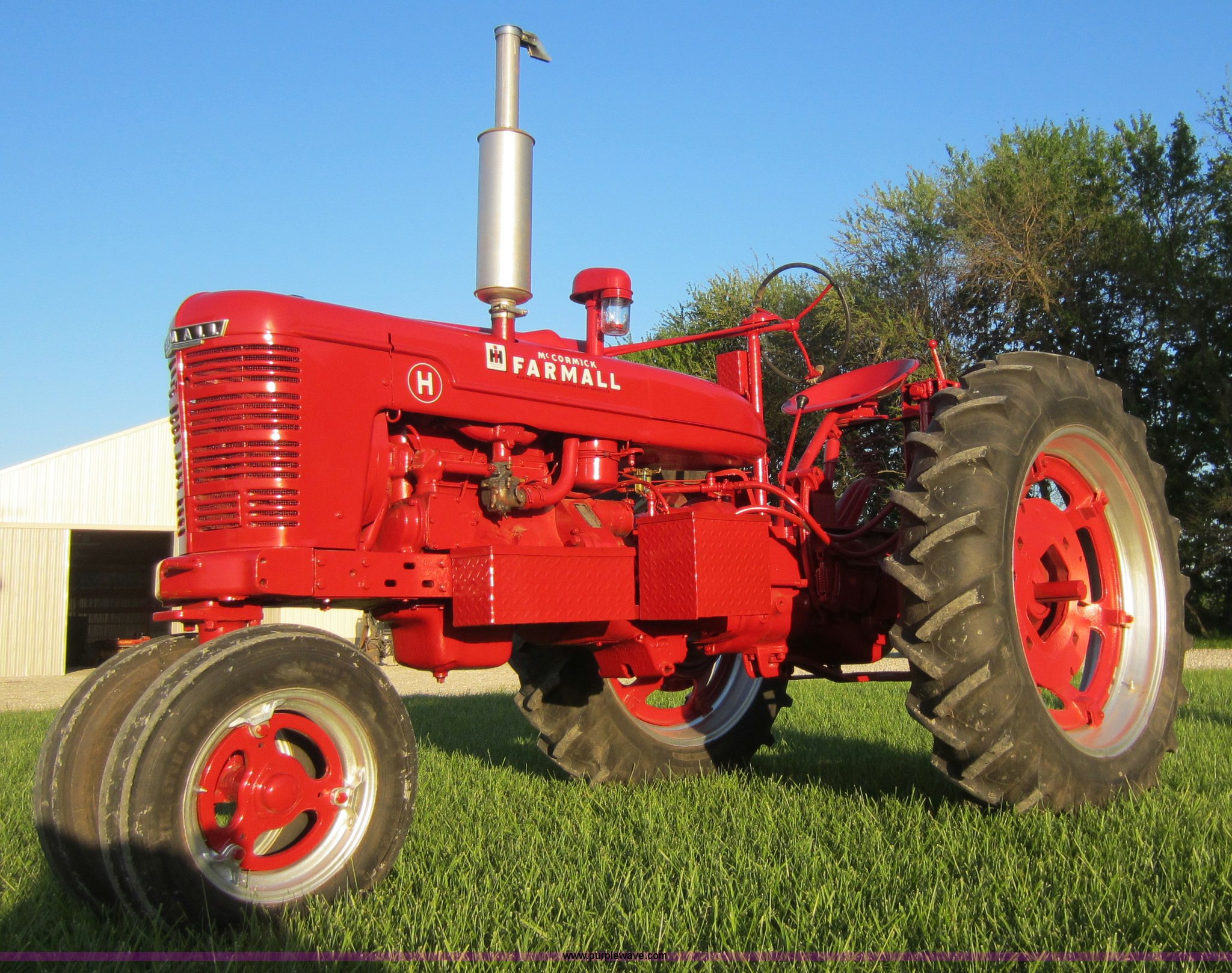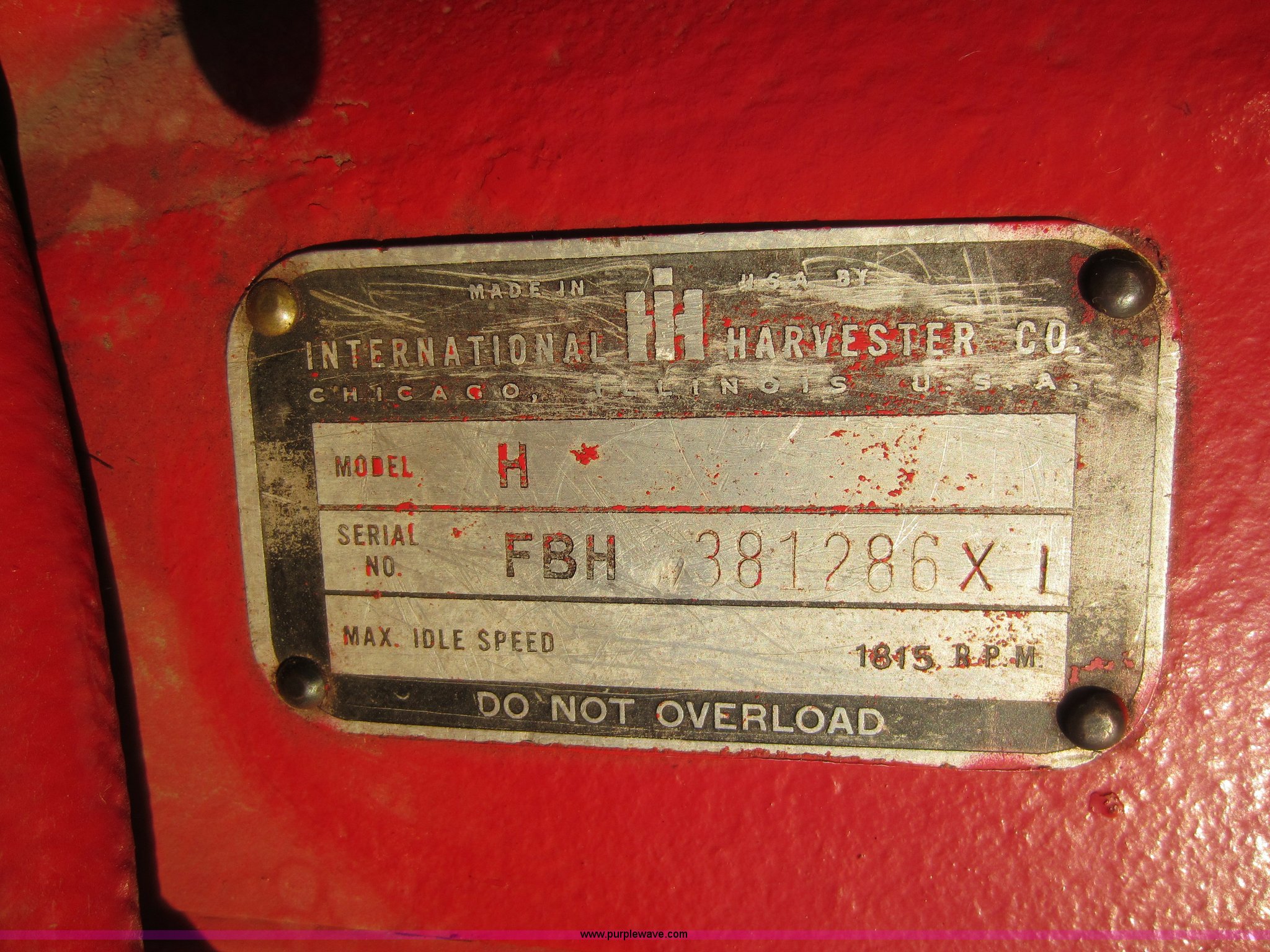 Purple Wave is selling a used Tractor in Kansas. This item is a Farmall H tractor with the following: Four cylinder gas engine, Complete overhaul 3 years ago with 5 hours, Manual transmission, 5F-1R gears, Spring seat, Draw bar, 540 PTO, One rear hydraulic remote, Rear bearings have 5 hours on them, 12.4-38 rear tires, Serial FHB381286X1