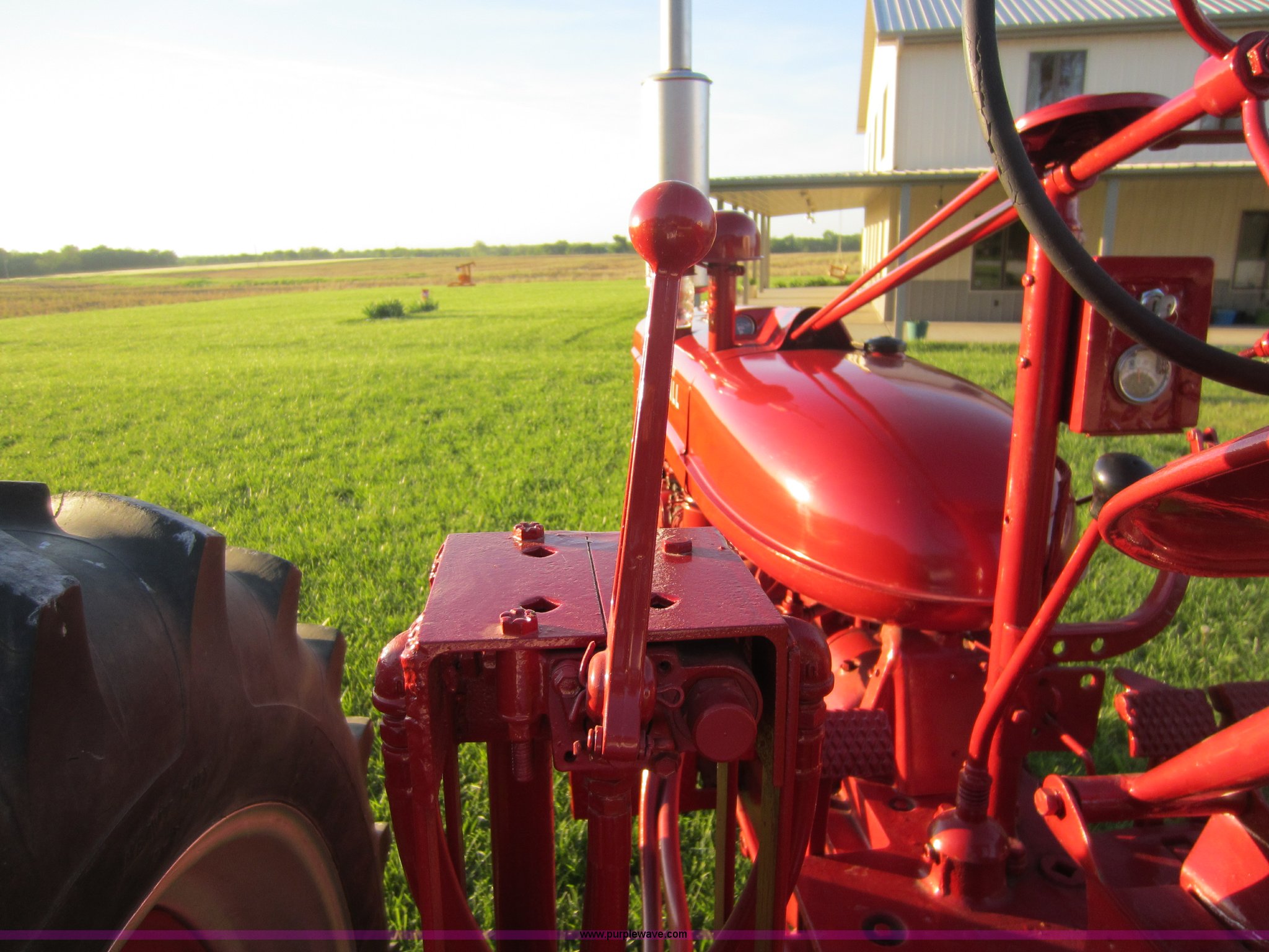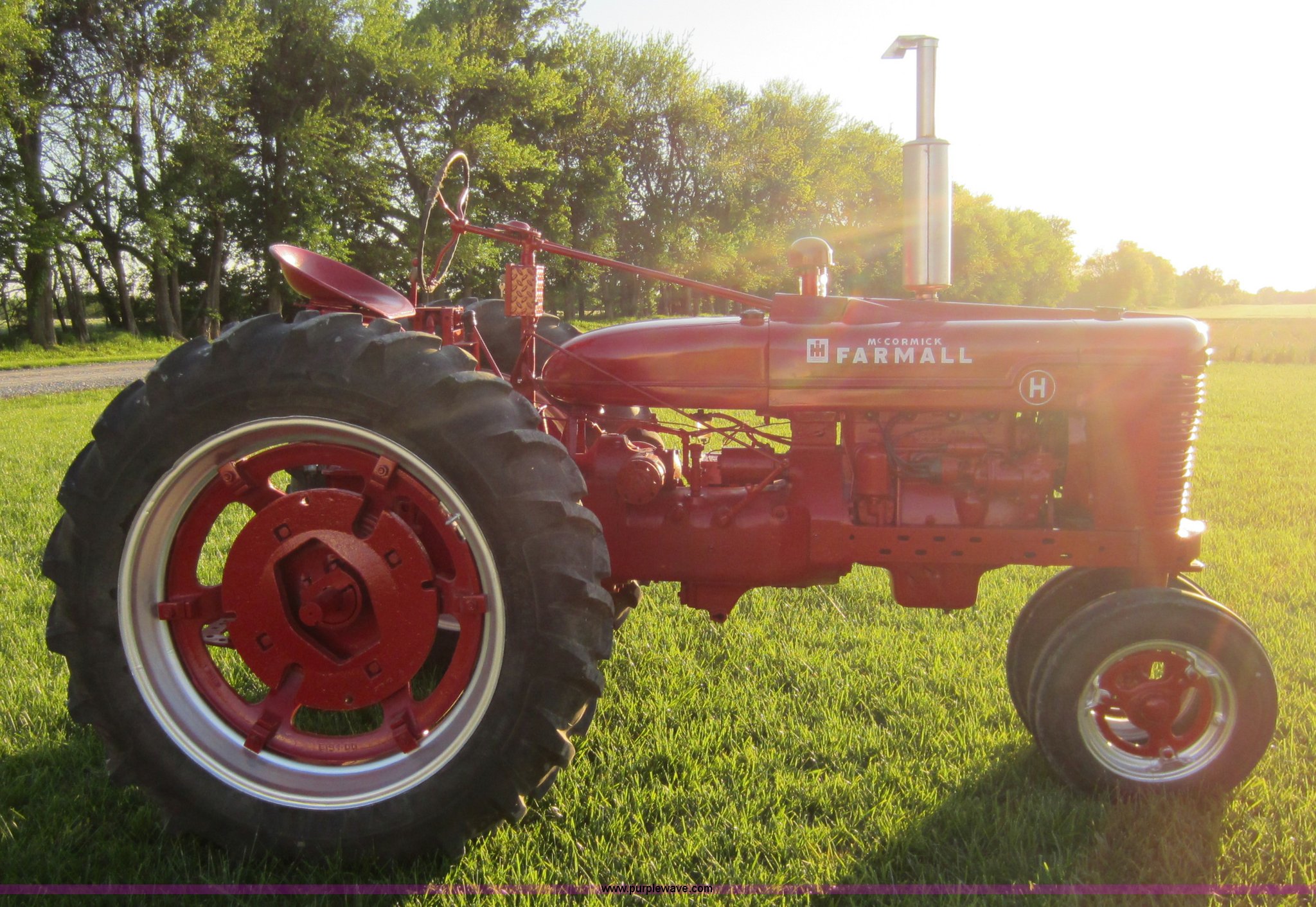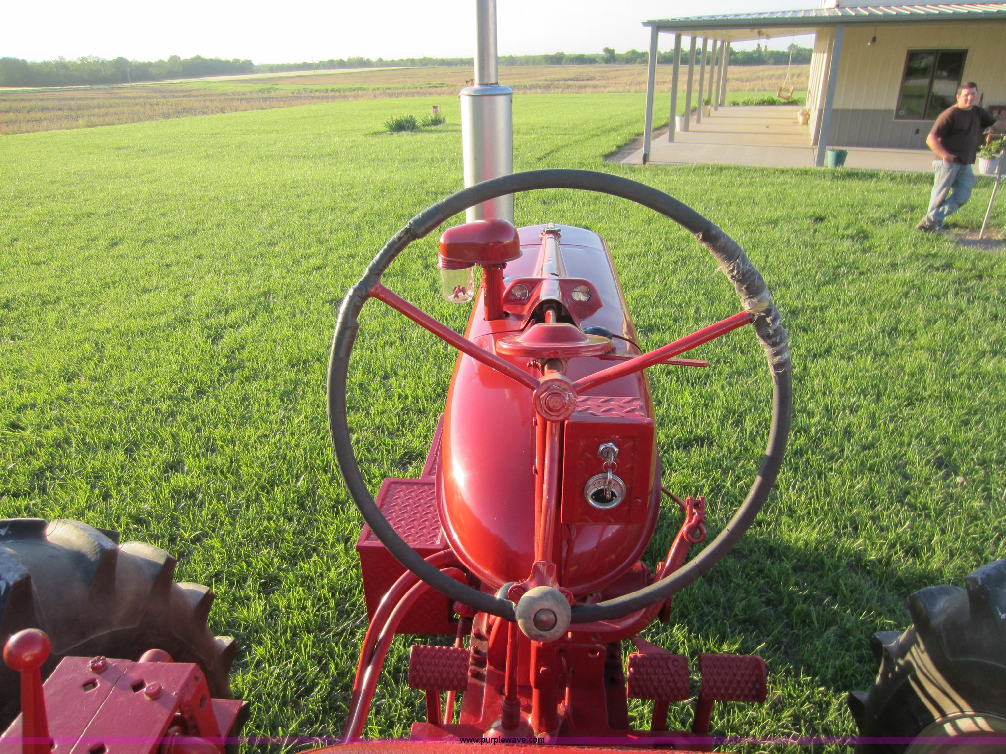 Purple Wave is selling a used Tractor in Kansas. This item is a Farmall H tractor with the following: Four cylinder gas engine, Complete overhaul 3 years ago with 5 hours, Manual transmission, 5F-1R gears, Spring seat, Draw bar, 540 PTO, One rear hydraulic remote, Rear bearings have 5 hours on them, 12.4-38 rear tires, Serial FHB381286X1