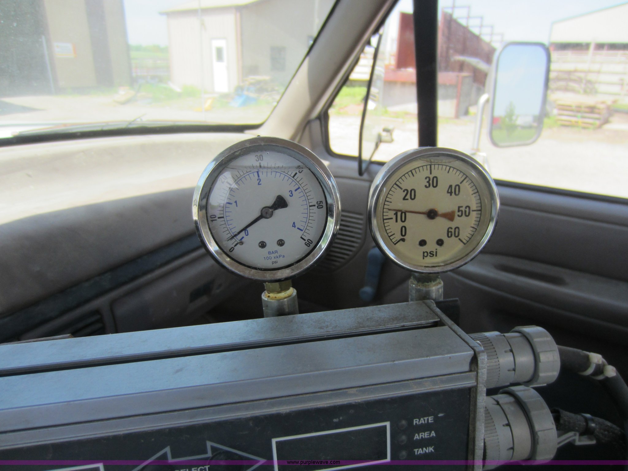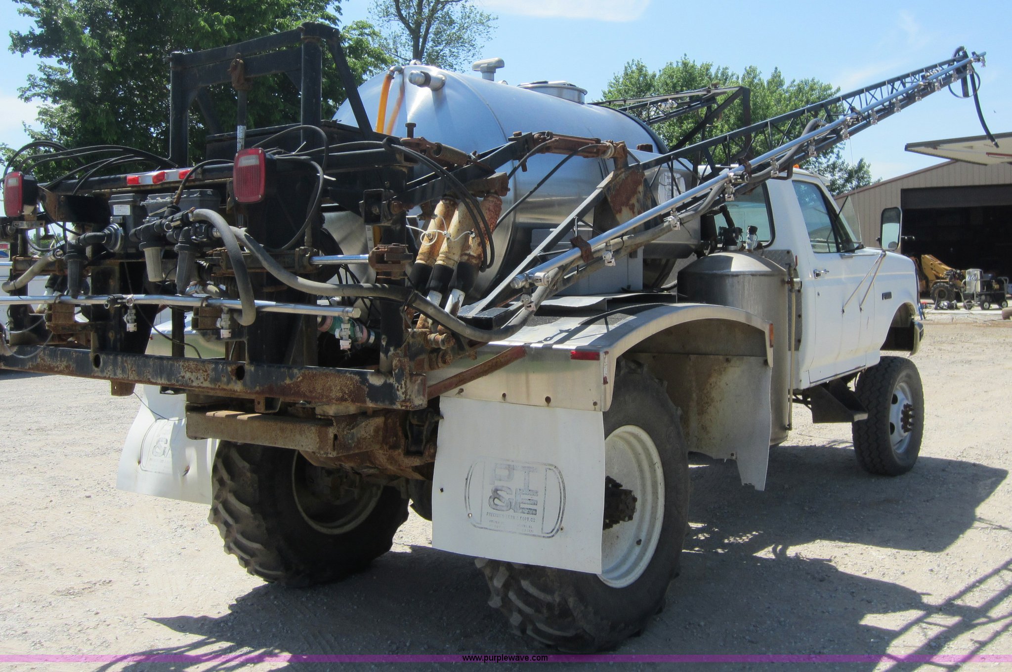 Purple Wave is selling a used Applicator Truck in Kansas. This item is a 1992 Ford F450 Super Duty sprayer truck with the following: Ford 7.3L V8 powerstroke diesel, Five speed manual transmission with two speed rear axle, Differential lock, AC and heat, AC needs recharged, AM/FM, Radar ground speed sensor, 540 gallon stainless steel tank, 30 gallon rinse tank, Induction tank, TeeJet 858 spray control system, Hydraulic height adjust, Hydraulic boom fold, Foam marker, Spring suspension, 55' boom, Single nozzle bodies, 20" spacing, Serial 130,816