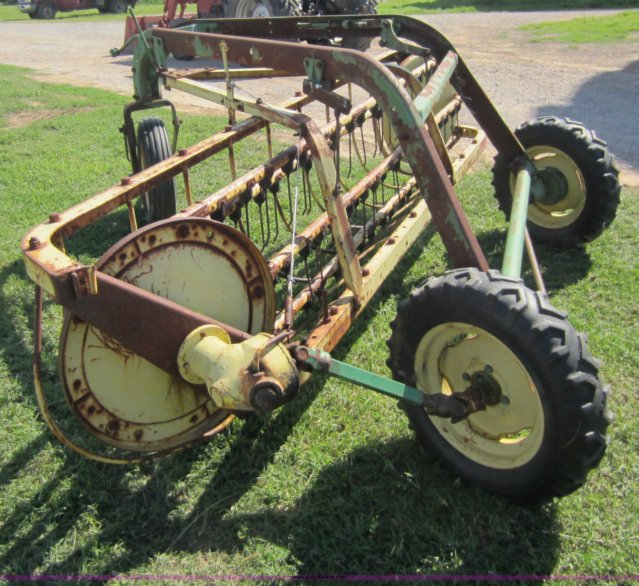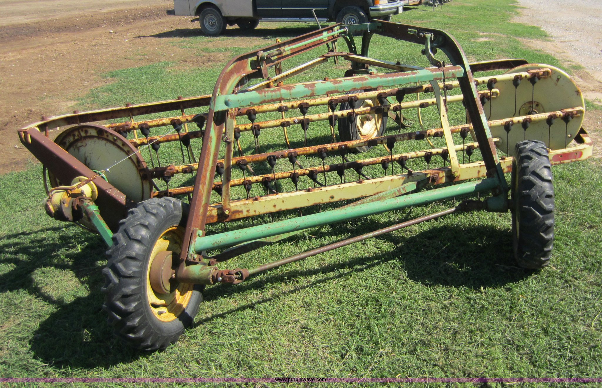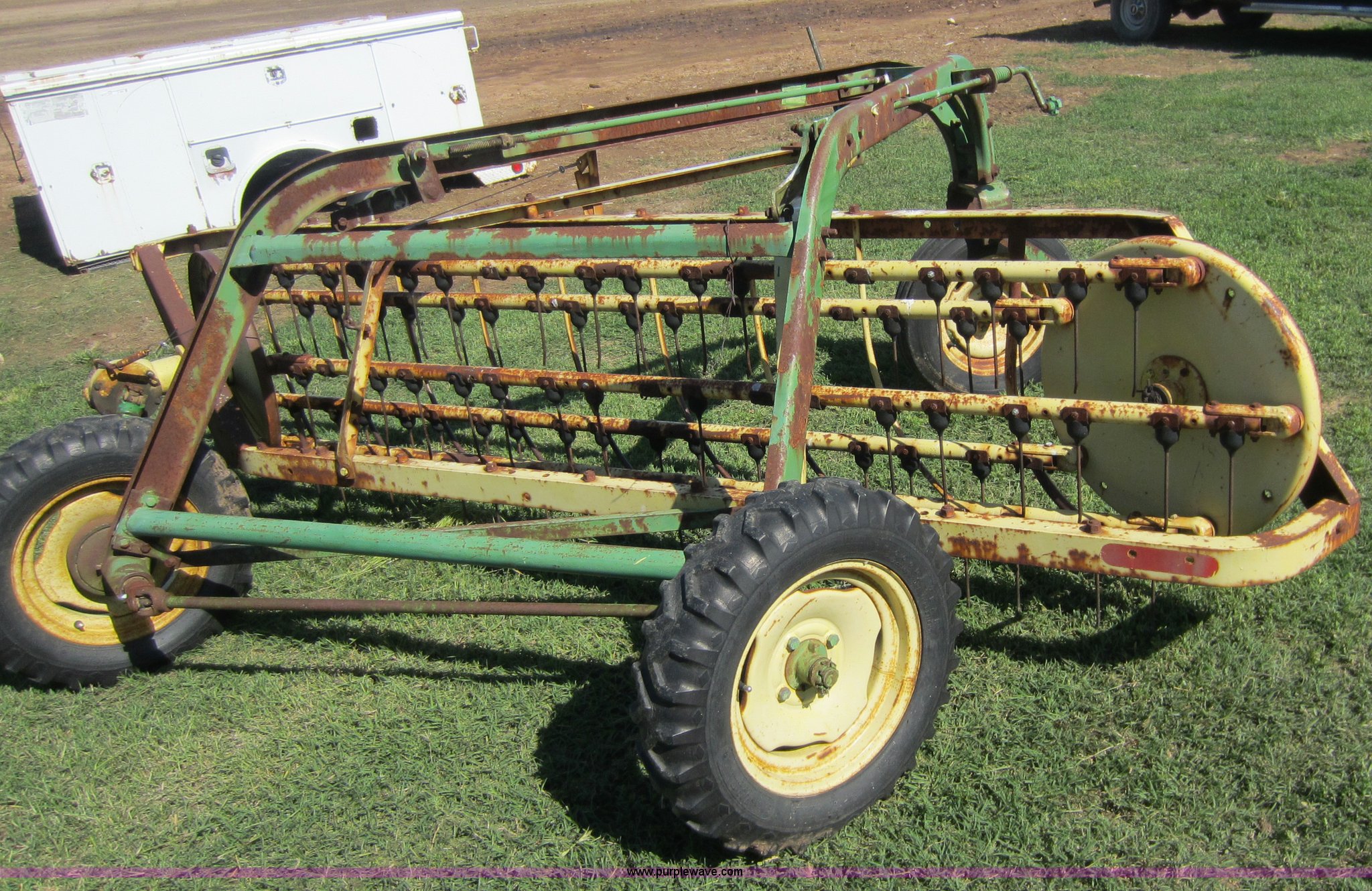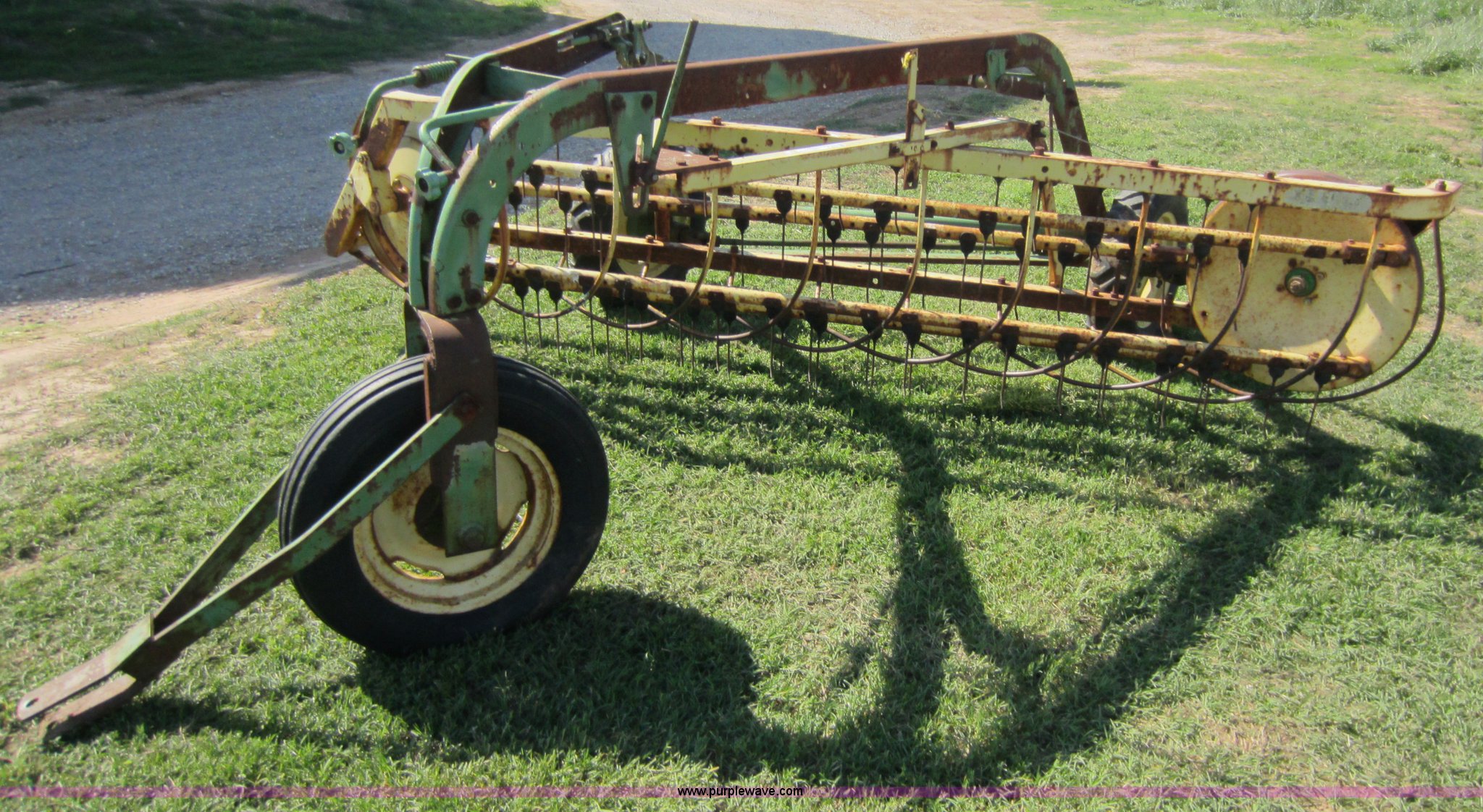 Purple Wave is selling a used Hay Rake in Kansas. This item is a John Deere 10' side delivery rake with the following: Ground driven, Serial # 247415E