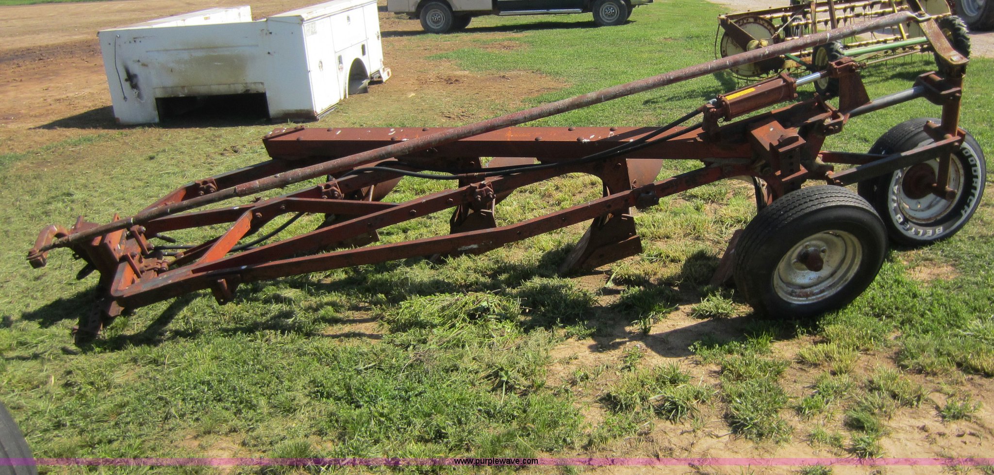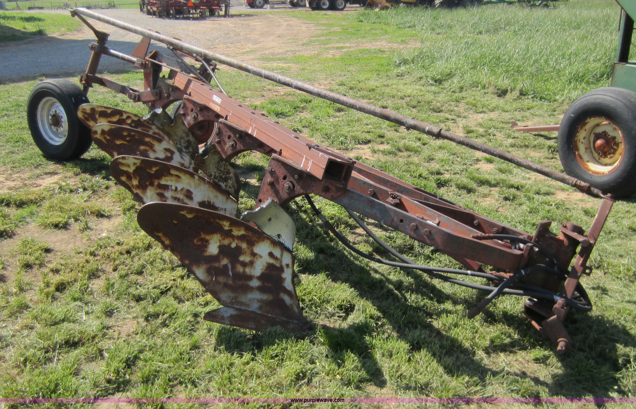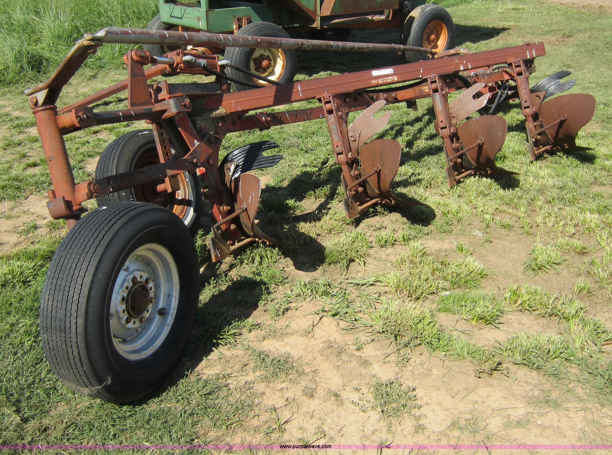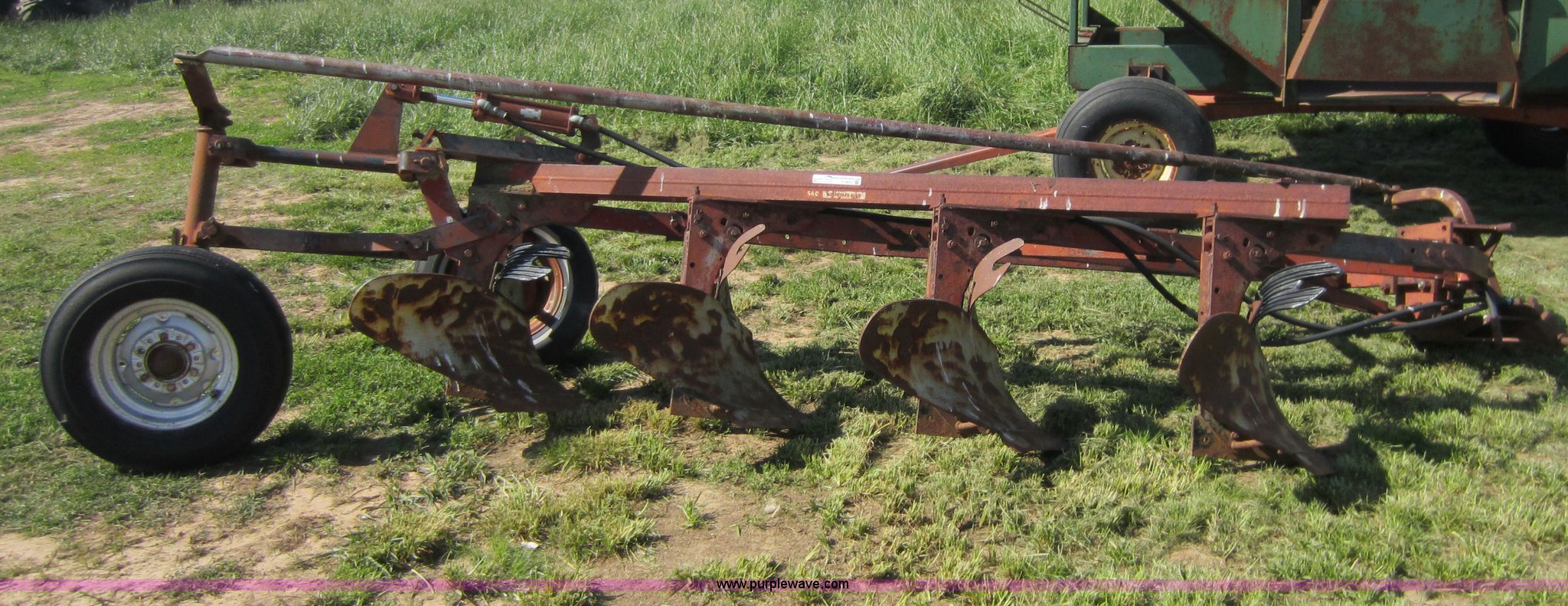 Purple Wave is selling a used Plow in Kansas. This item is a International 540 four bottom plow with the following: 20" bottom, Hydraulic lift
