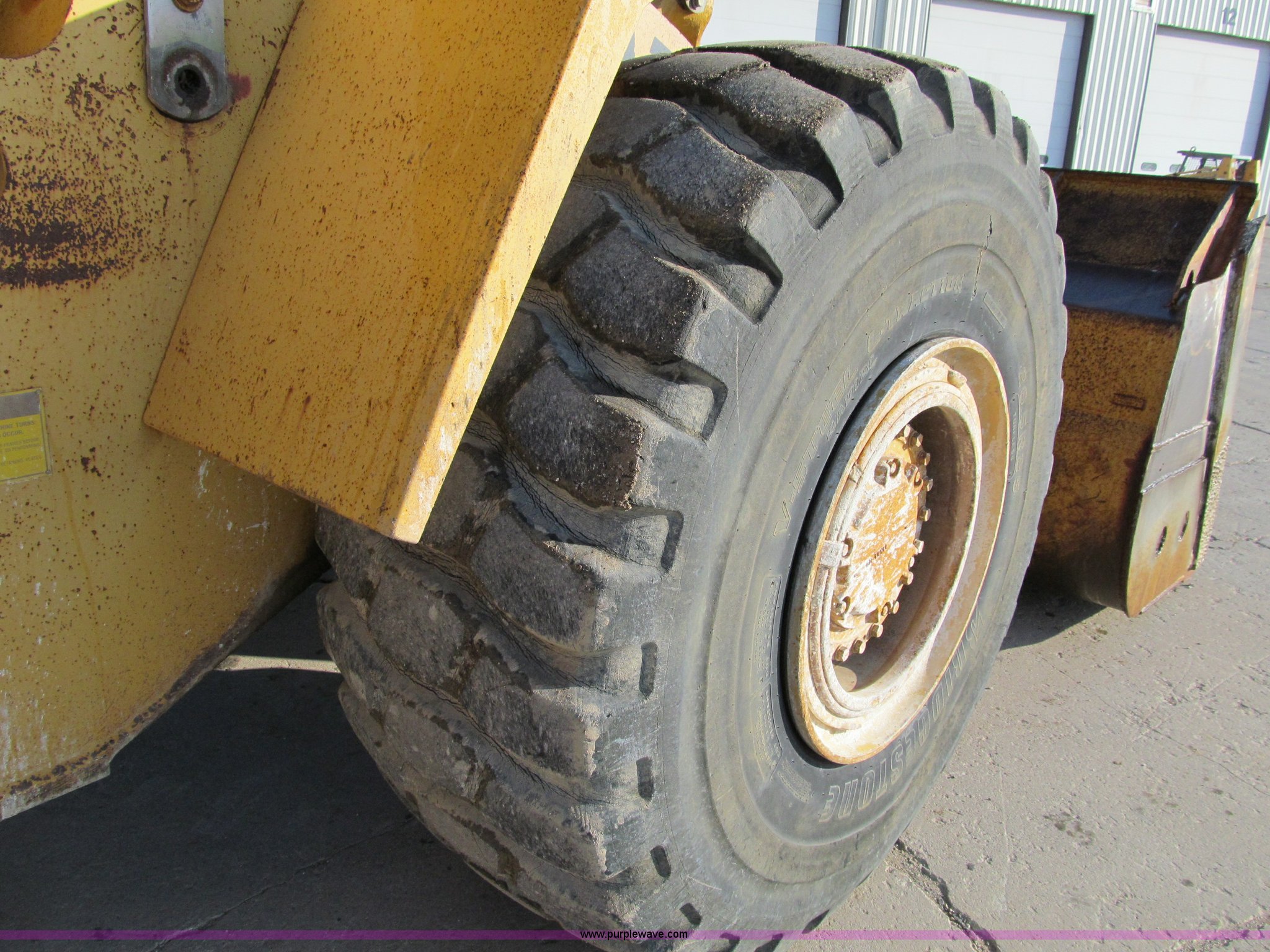 Purple Wave is selling a used Wheel Loader in Iowa. This item is a 1988 Caterpillar 966E wheel loader with the following: 26,114 hours on meter, Caterpillar 3306 six cylinder diesel engine, 216 HP, Four speed powershift transmission, Cab, canopy, 120.5" general purpose bucket, Bolt-on cutting edge, 26.5R25 tires, 44,767 lbs. base operating weight, Serial 99Y05463, Equip# 231004