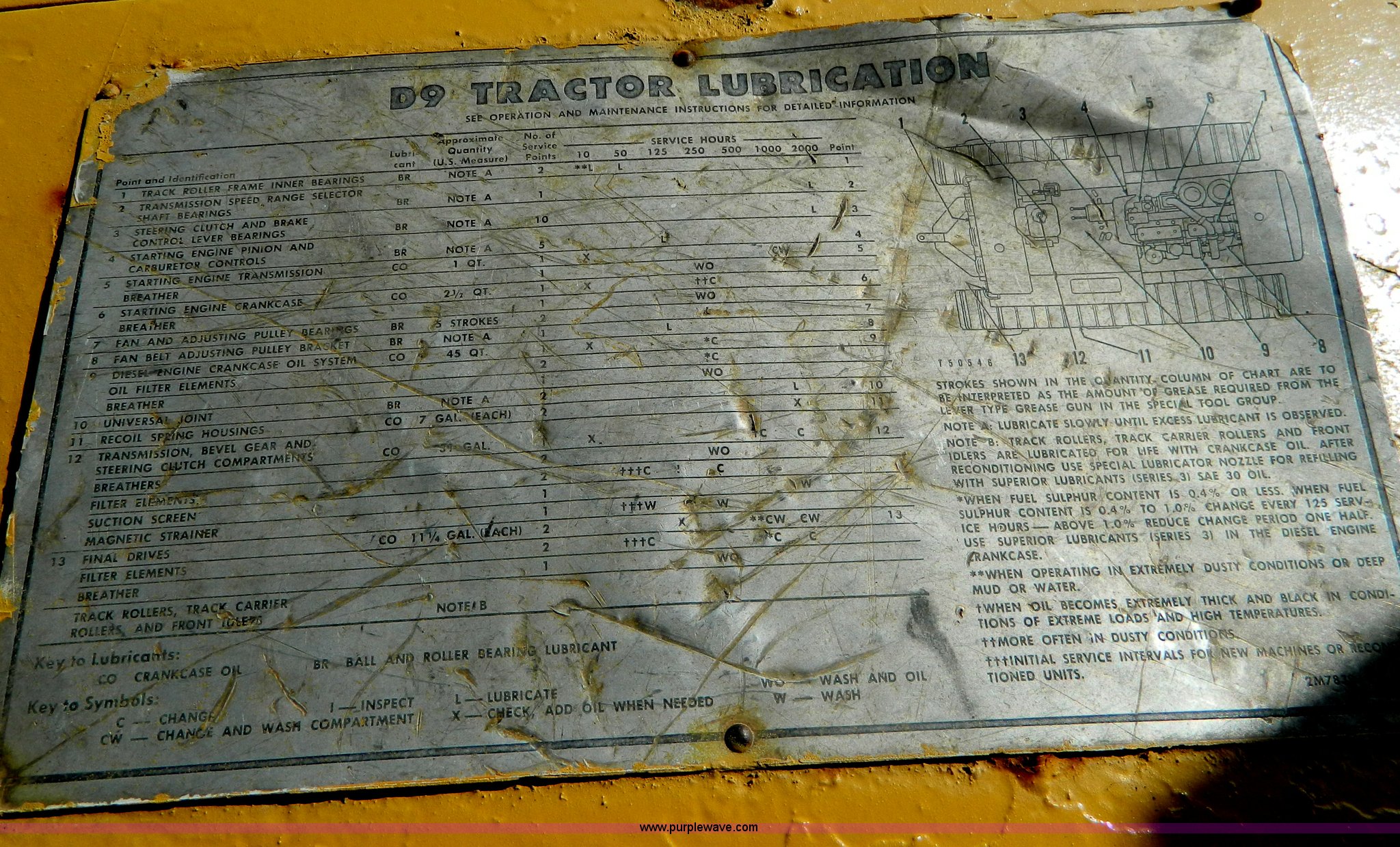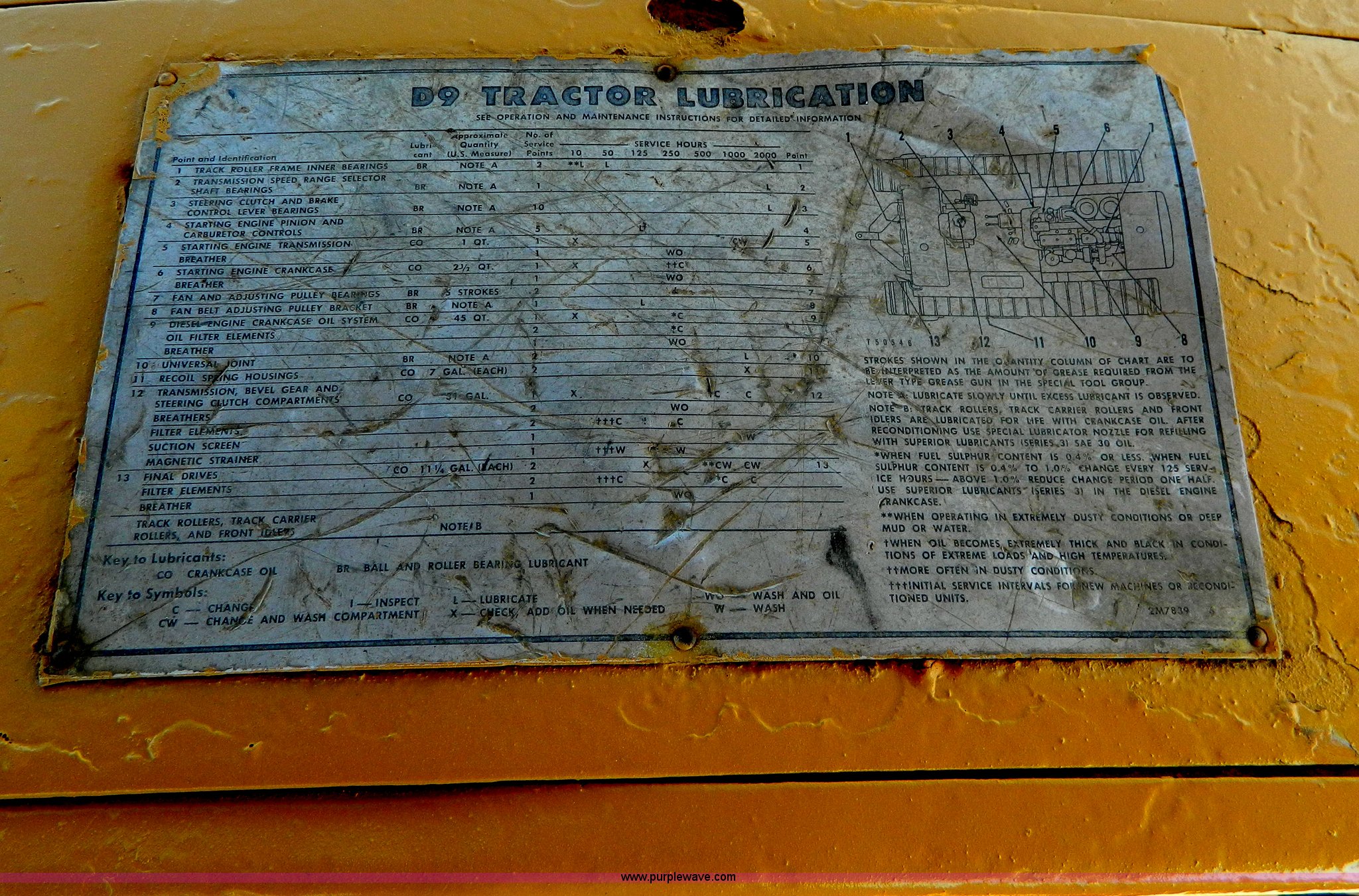 Purple Wave is selling a used Crawler Dozer in Kansas. This item is a Caterpillar D9 dozer with the following: 202 hours on meter, Six cylinder diesel engine, 3F-1R gears, 13.5'W tilt blade, 26" tracks, Push bar, Repainted, No pony motor