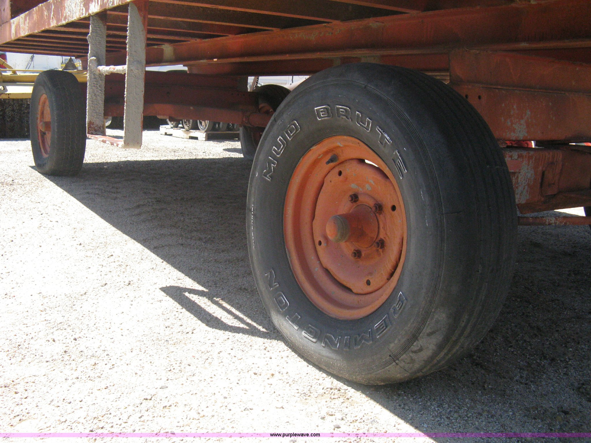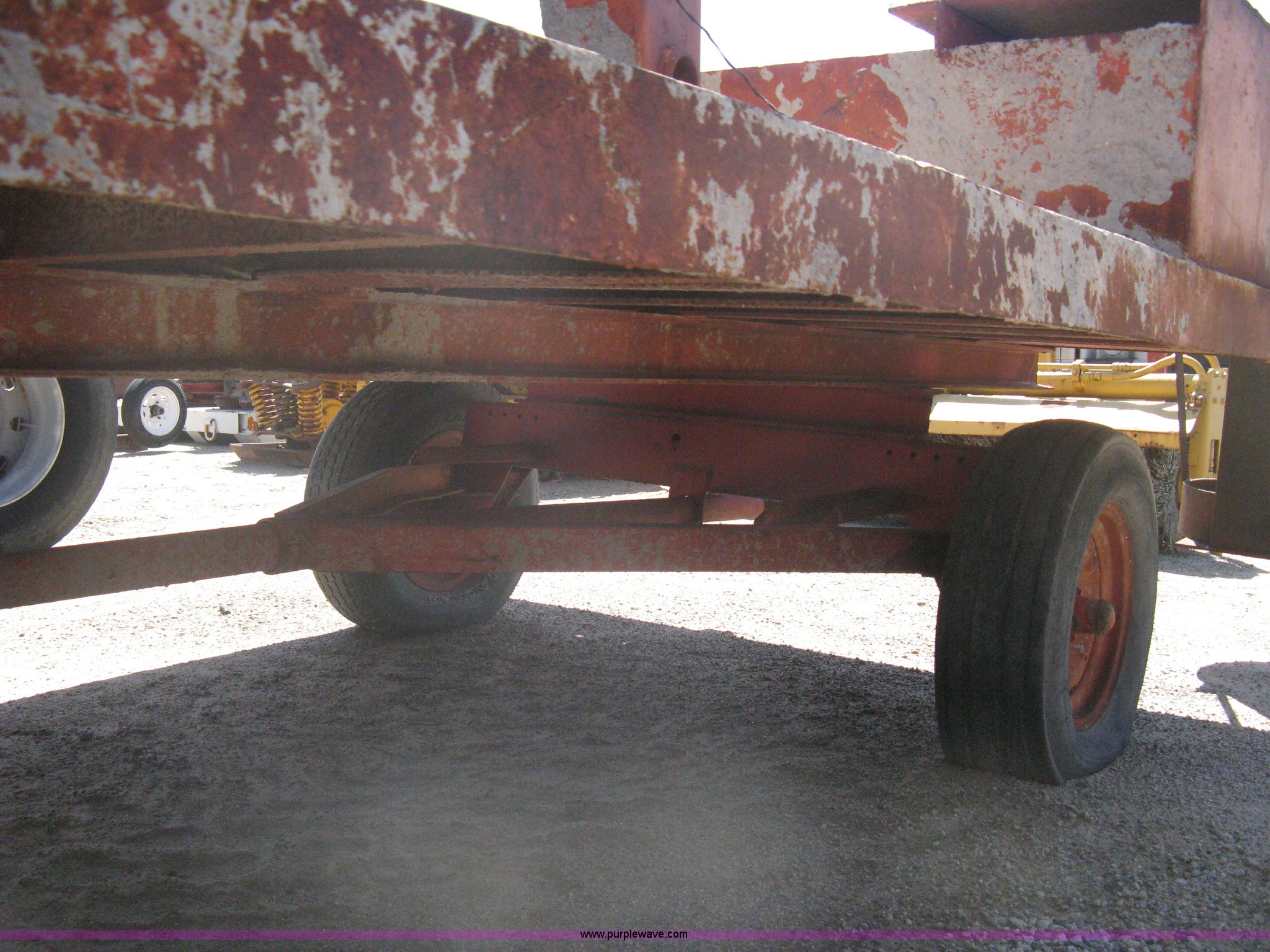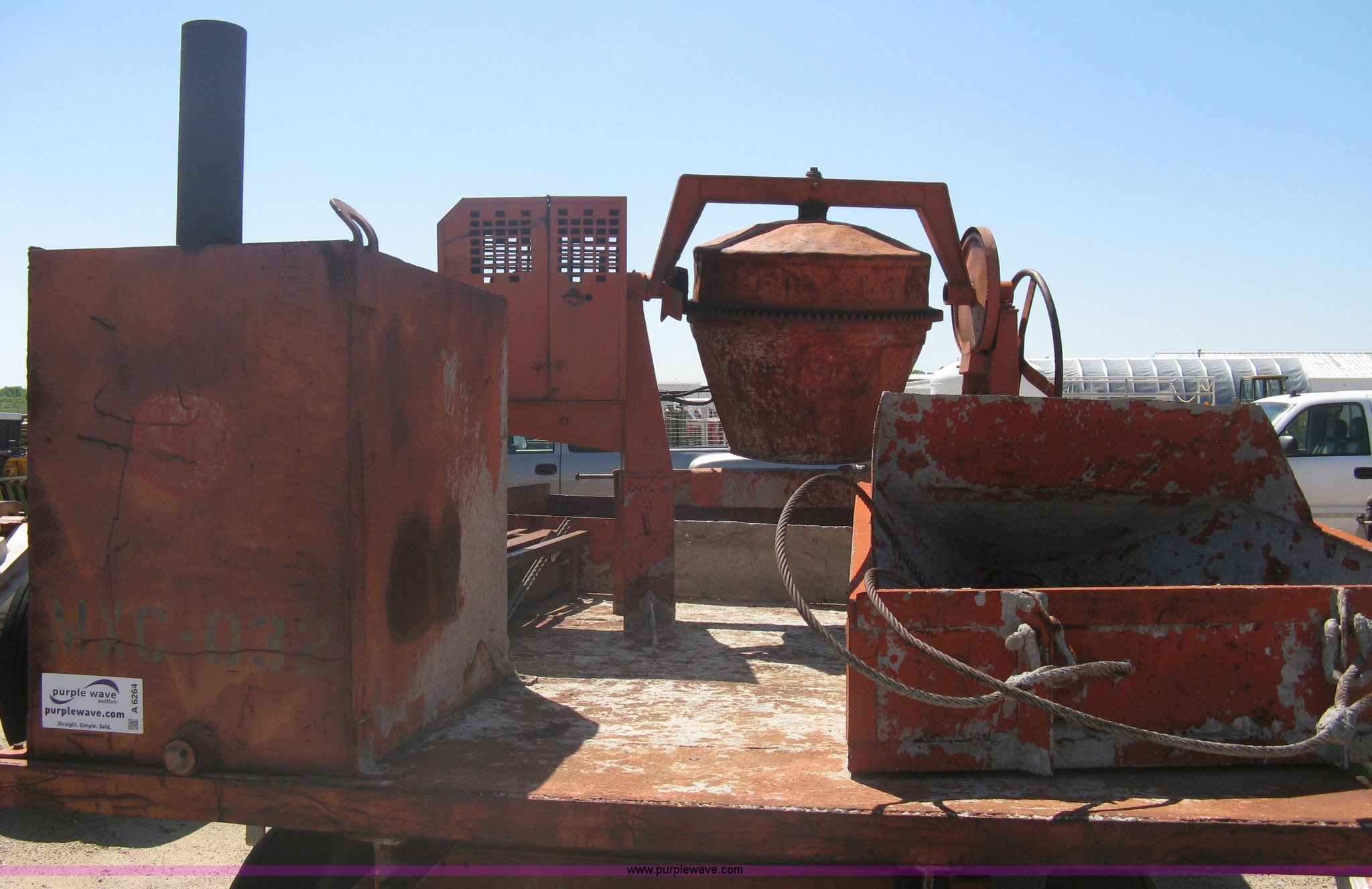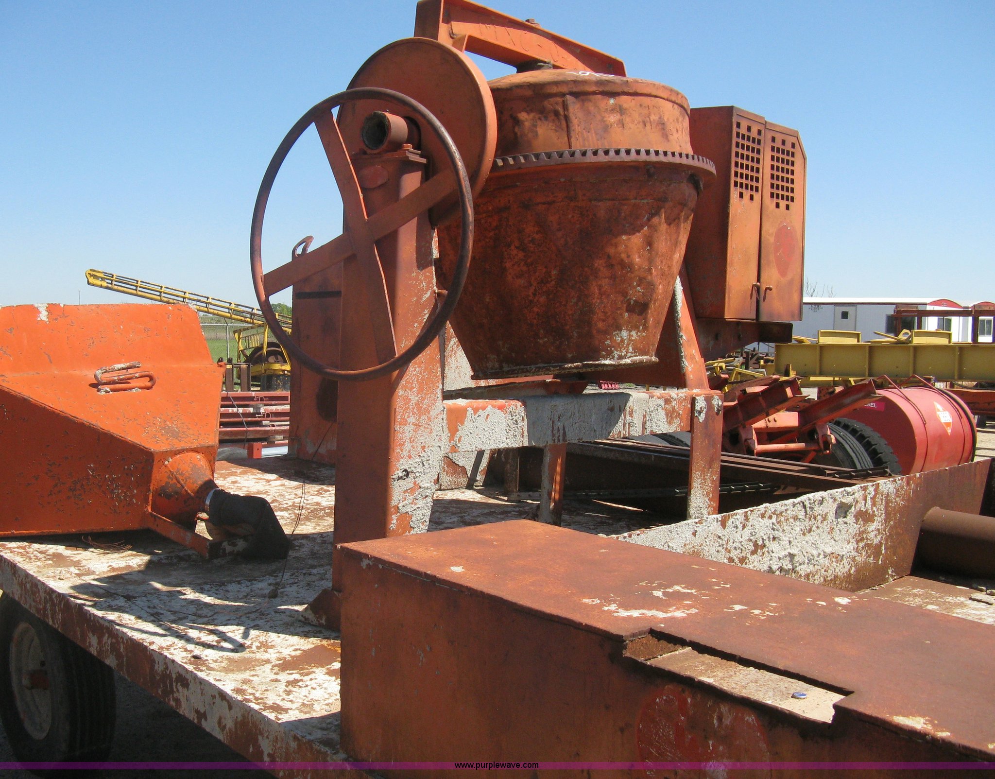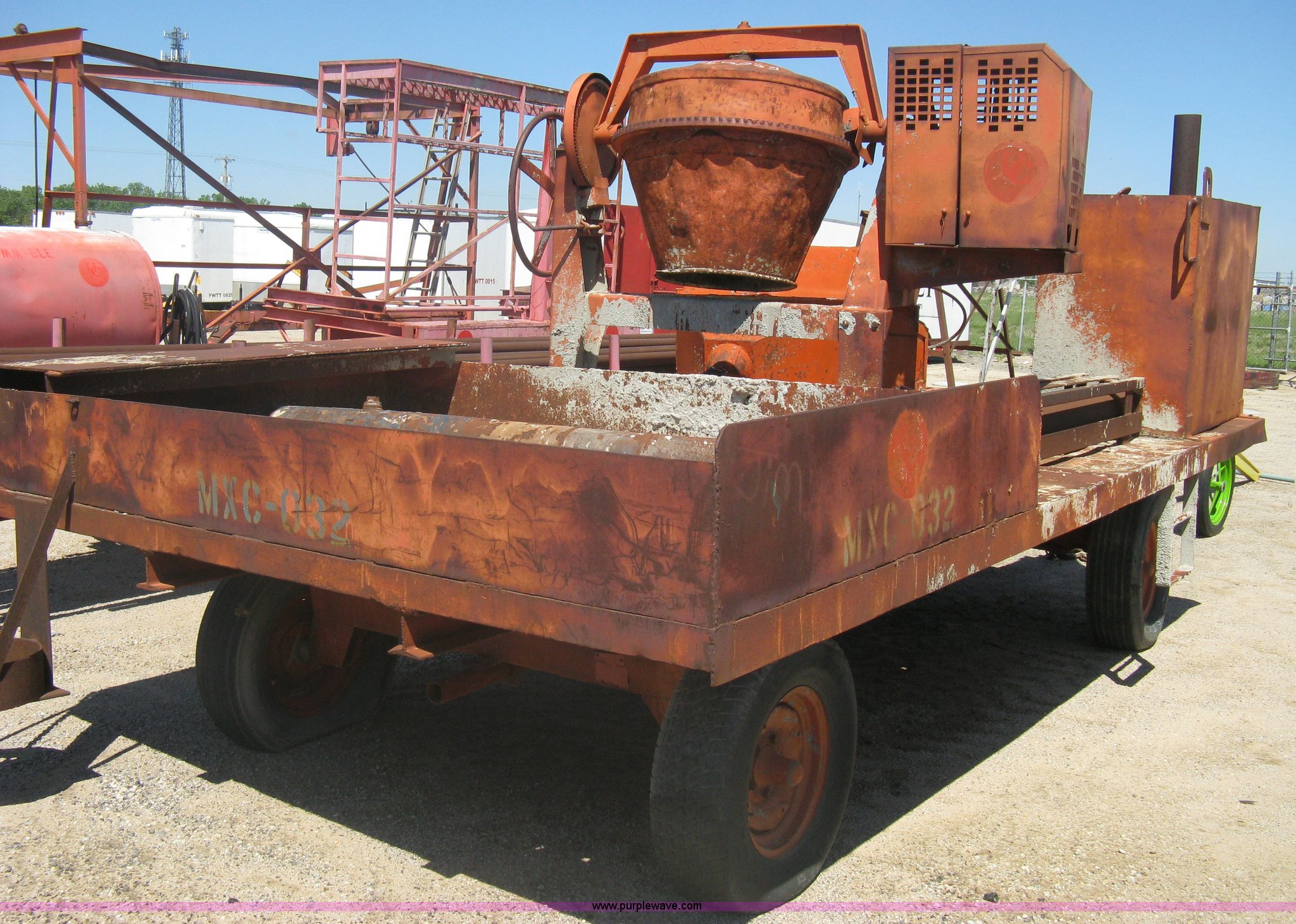 Purple Wave is selling a used Flat or Drop Deck Trailer in Kansas. This item is a Wagon running gear with mounted cement work tools with the following: 14'8"L x 8'W deck, Water tank, Sand trough, Cement mixer with Robin EY28 gas engine, Cement hopper, Pin hitch and tongue, Five lug hub with 15" wheel