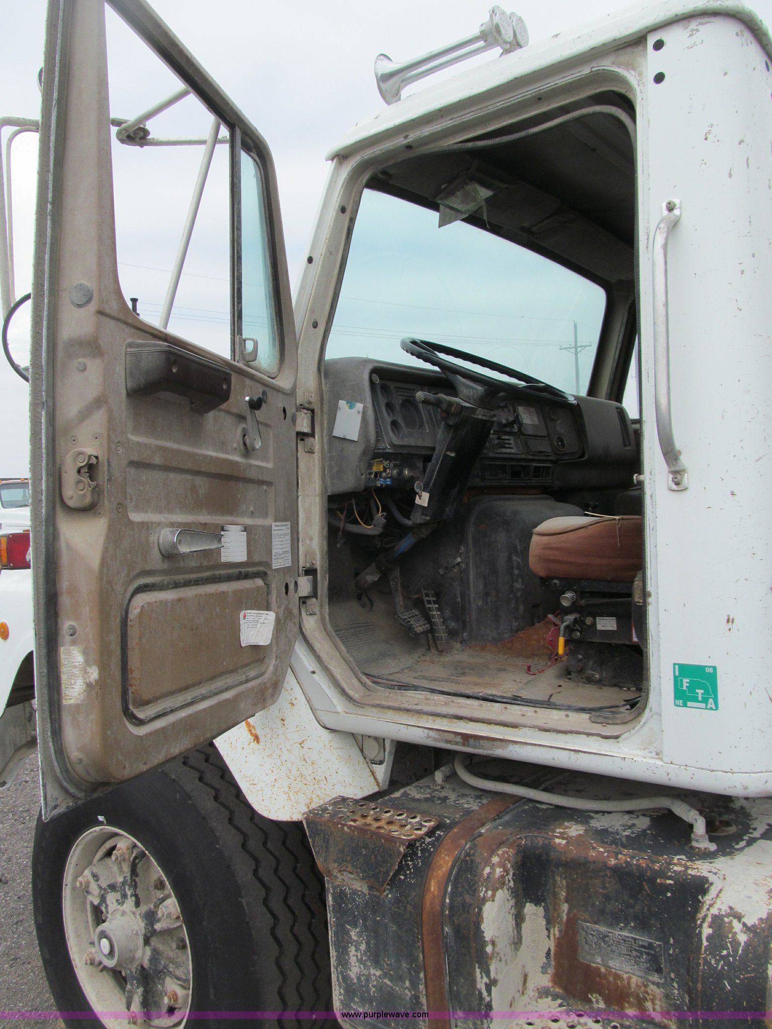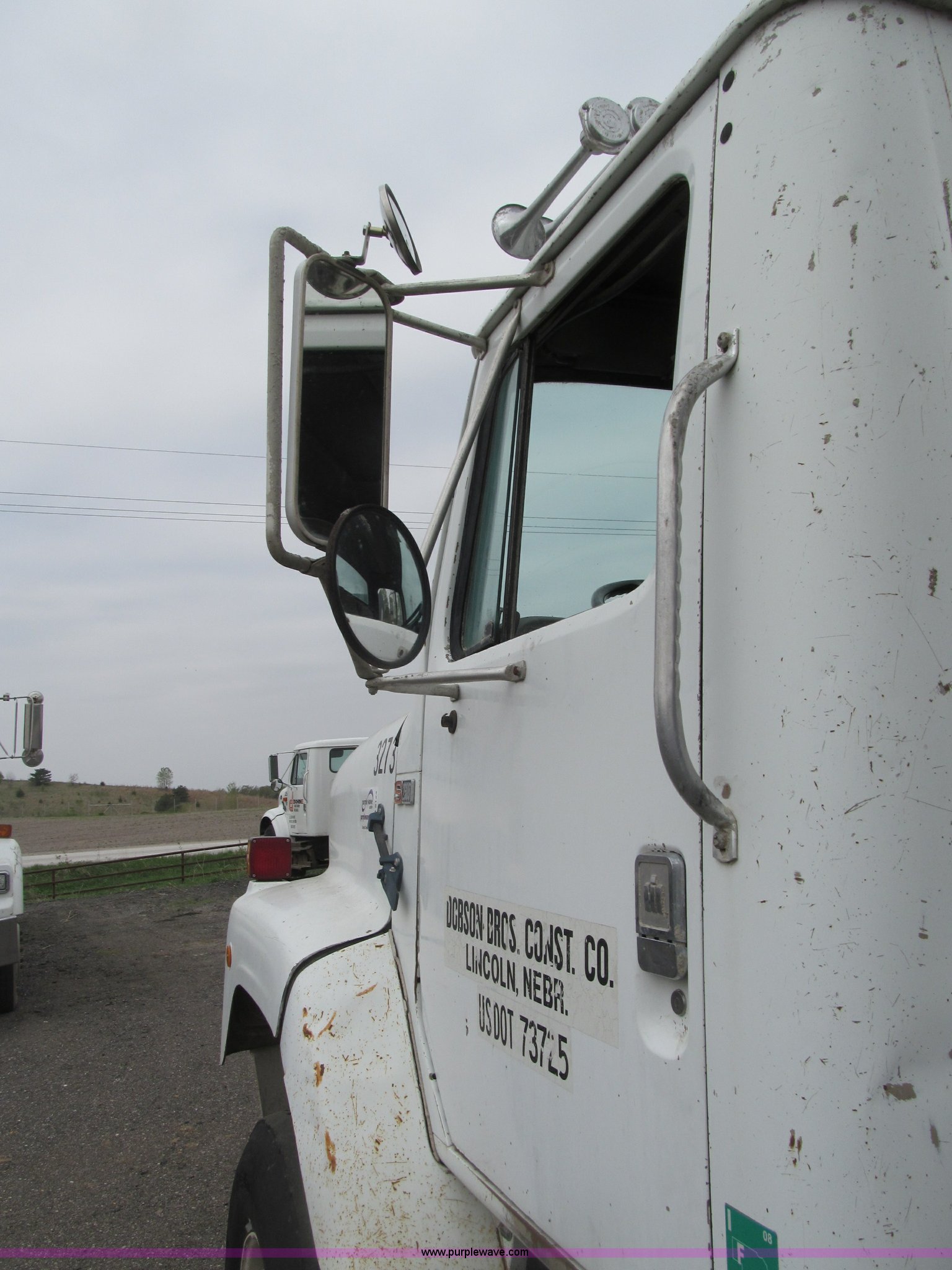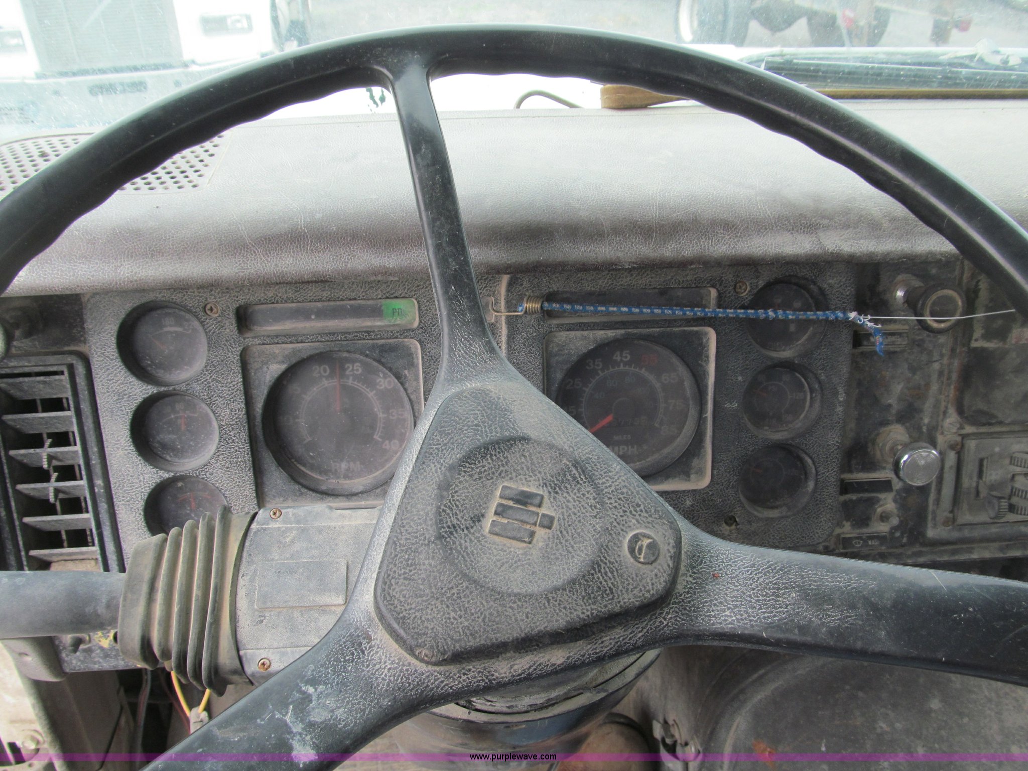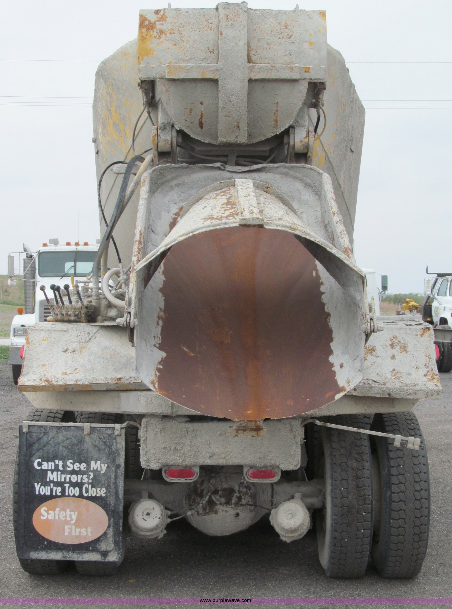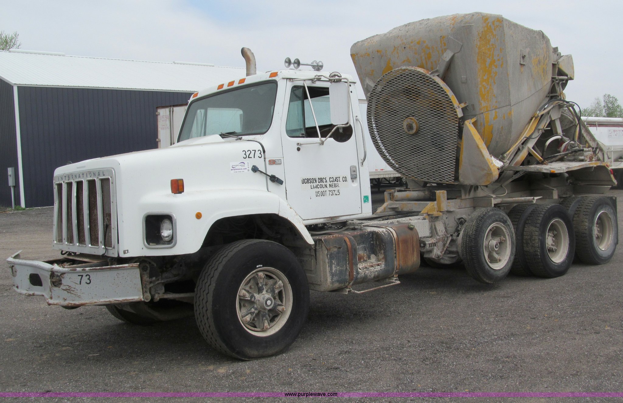 Purple Wave is selling a used Ready Mix or Pump Truck in Nebraska. This item is a 1985 International F2674 batch truck with the following: 29,774 miles on odometer, 4,299 hours on meter, Midland remanufactured engine by Haldex Services, Part# EL16040X, Serial 10701, Cummins N14 14.0L diesel engine, PowerTorque 240 Turbo, 855 CID, Engine# 11283409, Automatic transmission, Power divider lock, AC and heat, Unknown operable, Glide-A-Lator air ride seat, Air brakes, PTO, 7' rear chute with 2' fold down, Rear hydraulic controls, Lift, chute lift, gate, turret, agitator, Snyder 108 gallon fuel tank, 385/65R22.5 front tires, 11R22.5 rear tires, 9R22.5 tag axle tires, Outside dual front drive, Flat both sides, will be repaired, Cracked rear window, Cab will be cleaned and bumper straightened before sale, EIN 3273