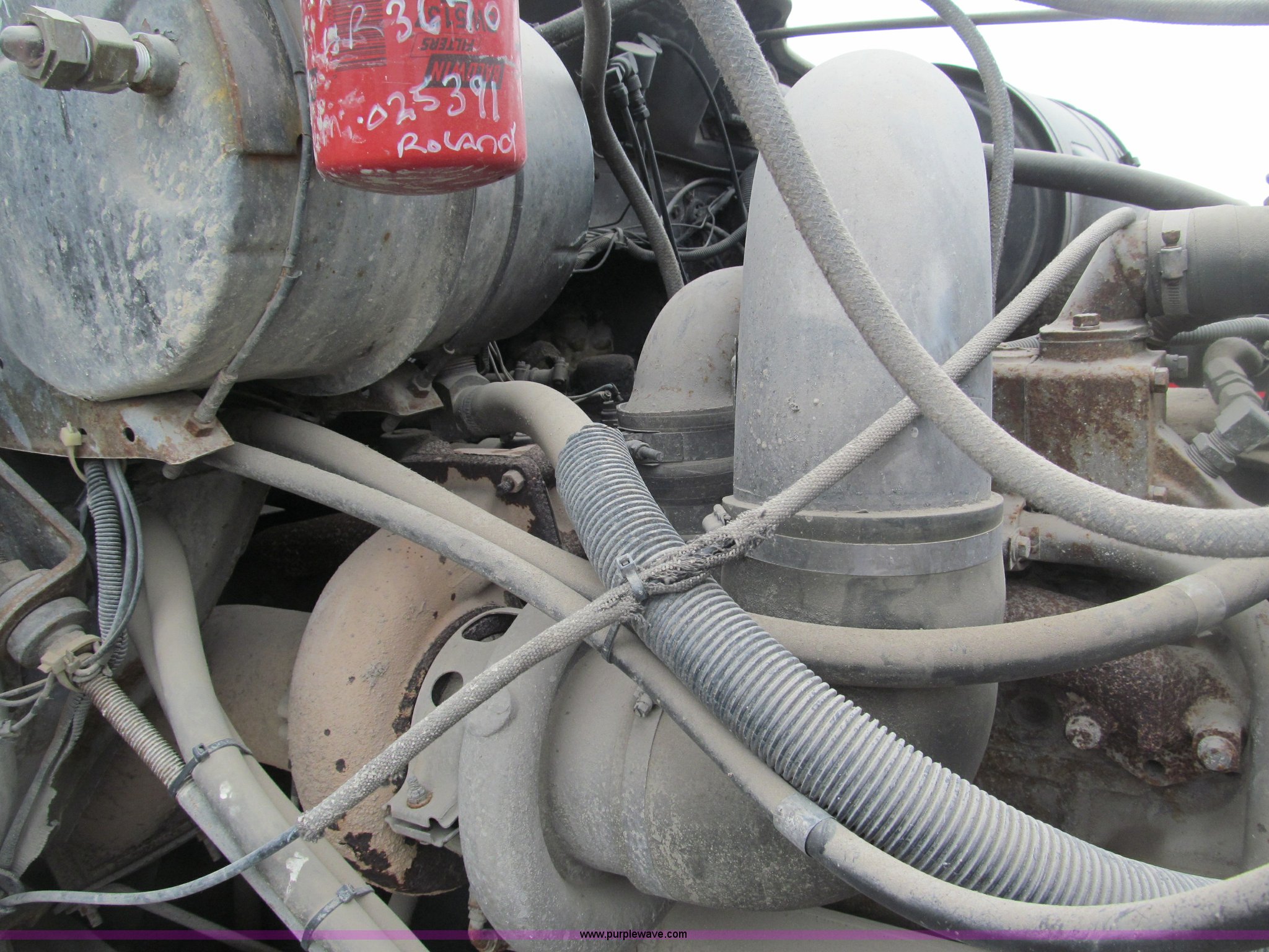 1985 International F2674 batch truck. 29,774 miles on odometer, 4,299 hours on meter, Midland remanufactured engine by Haldex Services Part# EL16040X, Serial 10701, Cummins N14 14.0L diesel engine PowerTorque 240 Turbo, 855 CID, Engine# 11283409, Automatic transmission, Power divider lock, AC and heat Unknown operable, Glide-A-Lator air ride seat, Air brakes, PTO, 7' rear chute with 2' fold down, Rear hydraulic controls Lift, chute lift, gate, turret, agitator, Snyder 108 gallon fuel tank, 385/65R22.5 front tires, 11R22.5 rear tires, 9R22.5 tag axle tires, Outside dual front drive Flat both sides, will be repaired, Cracked rear window, Cab will be cleaned and bumper straightened before sale, EIN 3273. 1HTZVL6T8FHA58191. Shipping quotes available. 16494 292nd St. Ashland, NE 68003