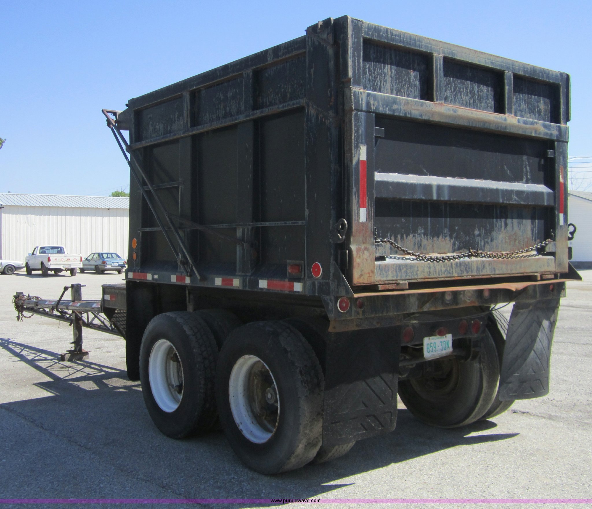 Purple Wave is selling a used End Dump Rock Trailer in Oklahoma. This item is a 2005 custom built 10' pup trailer with the following: Air end gate, Roll over tarp, Spring suspension, Air brakes, 60"H sides, Pintle hitch, 11R22.5 tires