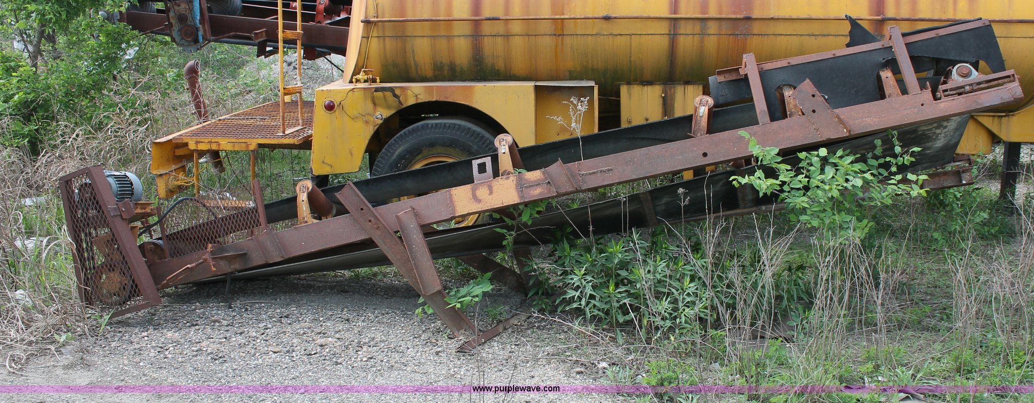 Purple Wave is selling a used Auger or Conveyor in Kansas. This item is a 16' long homemade conveyor with the following: 28" wide belt, Leg braces need repaired, Three horsepower US motor, Three phase, Unknown running condition