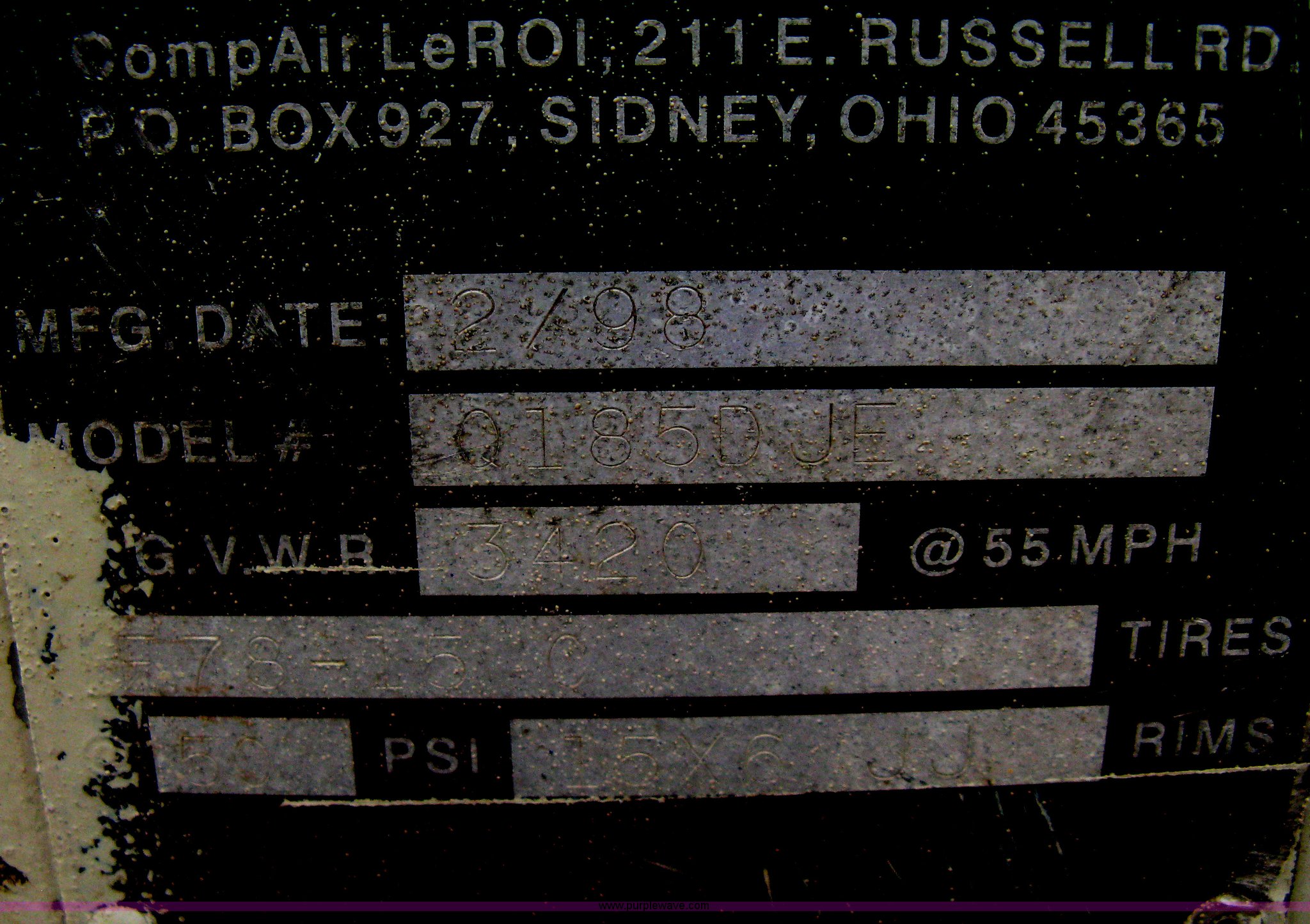 1998 Leroi 185 mobile compressor has sold in Mount Hope, Kansas for $4950. Item A6326 sold on May 16th, 2012.