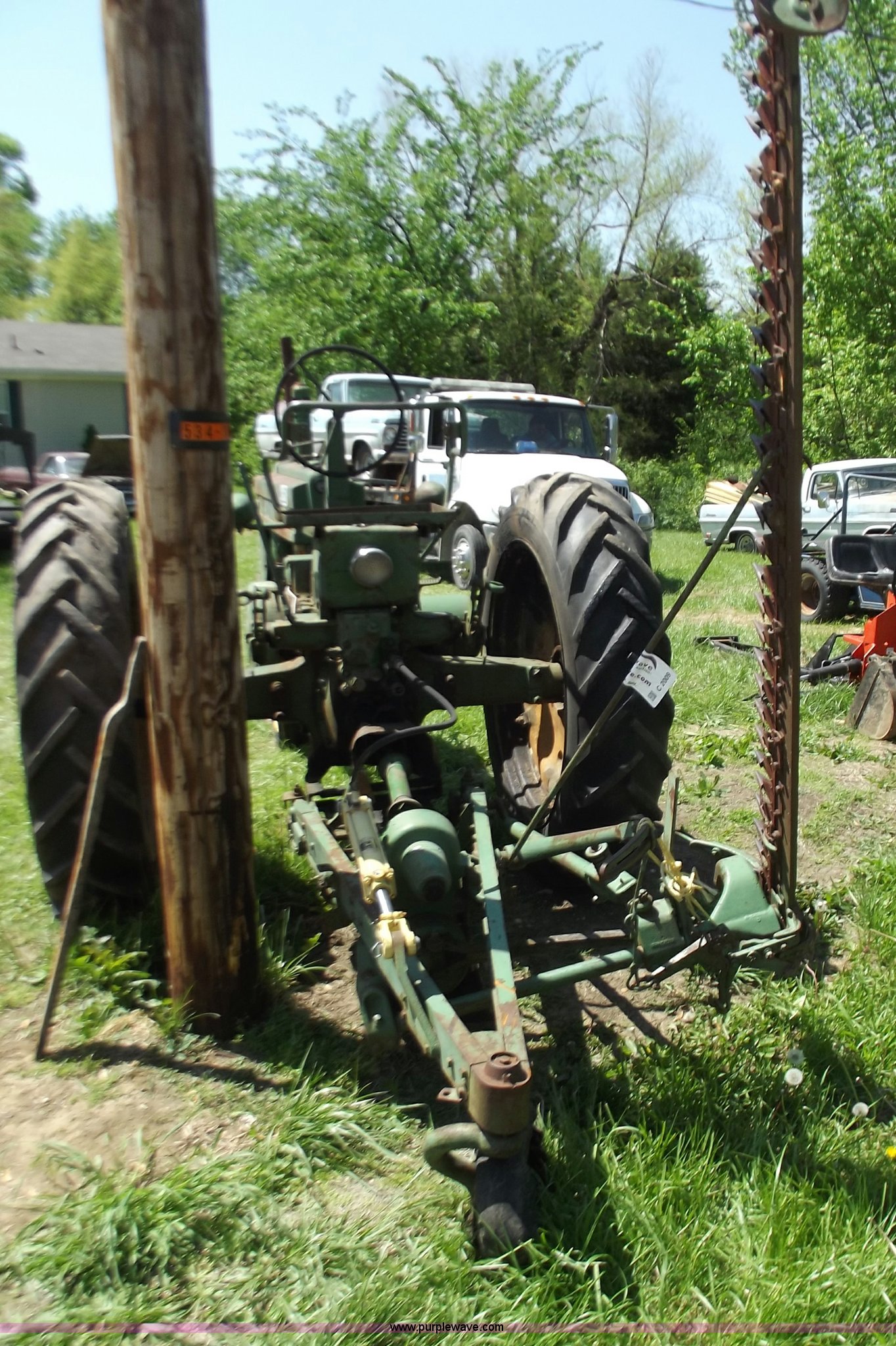 Purple Wave is selling a used Disc or Sickle Mower in Missouri. This item is a John Deere Number 8 caster-wheel side sickle mower with the following: 7' cut, 540 PTO, Hydraulic lift, Owners manual included, Tractor not included, Serial 41263