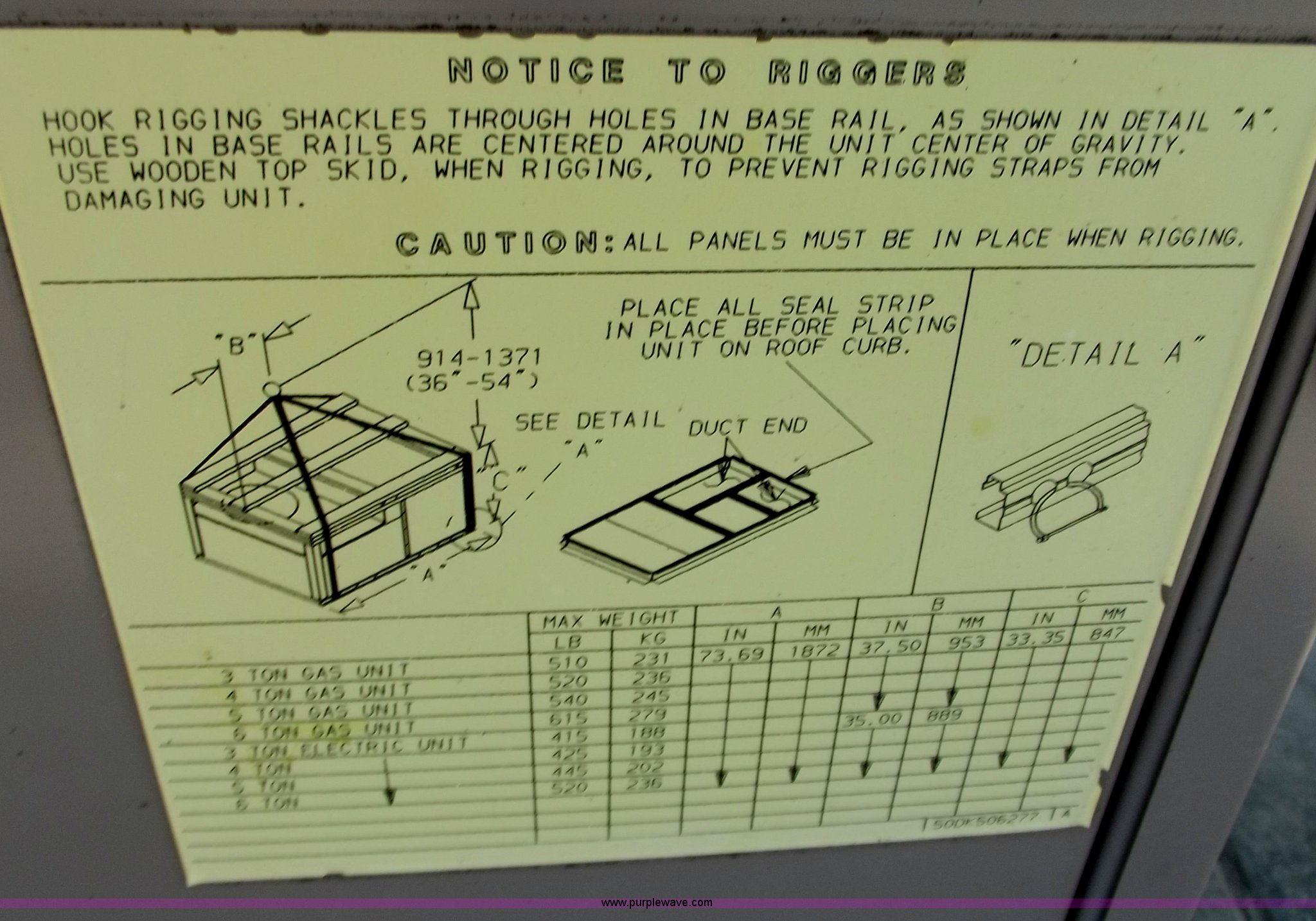 Purple Wave is selling a used Home Improvement in Missouri. This item is a Carrier five ton AC unit with the following: 460 volt, Three phase, Never installed, Stored outside, Fork pockets, Sheet metal cosmetic damage