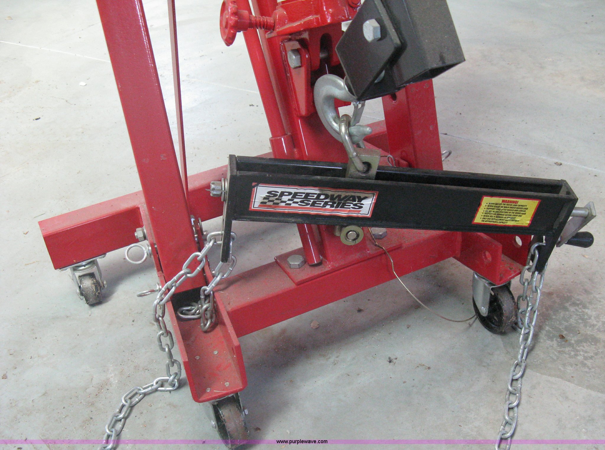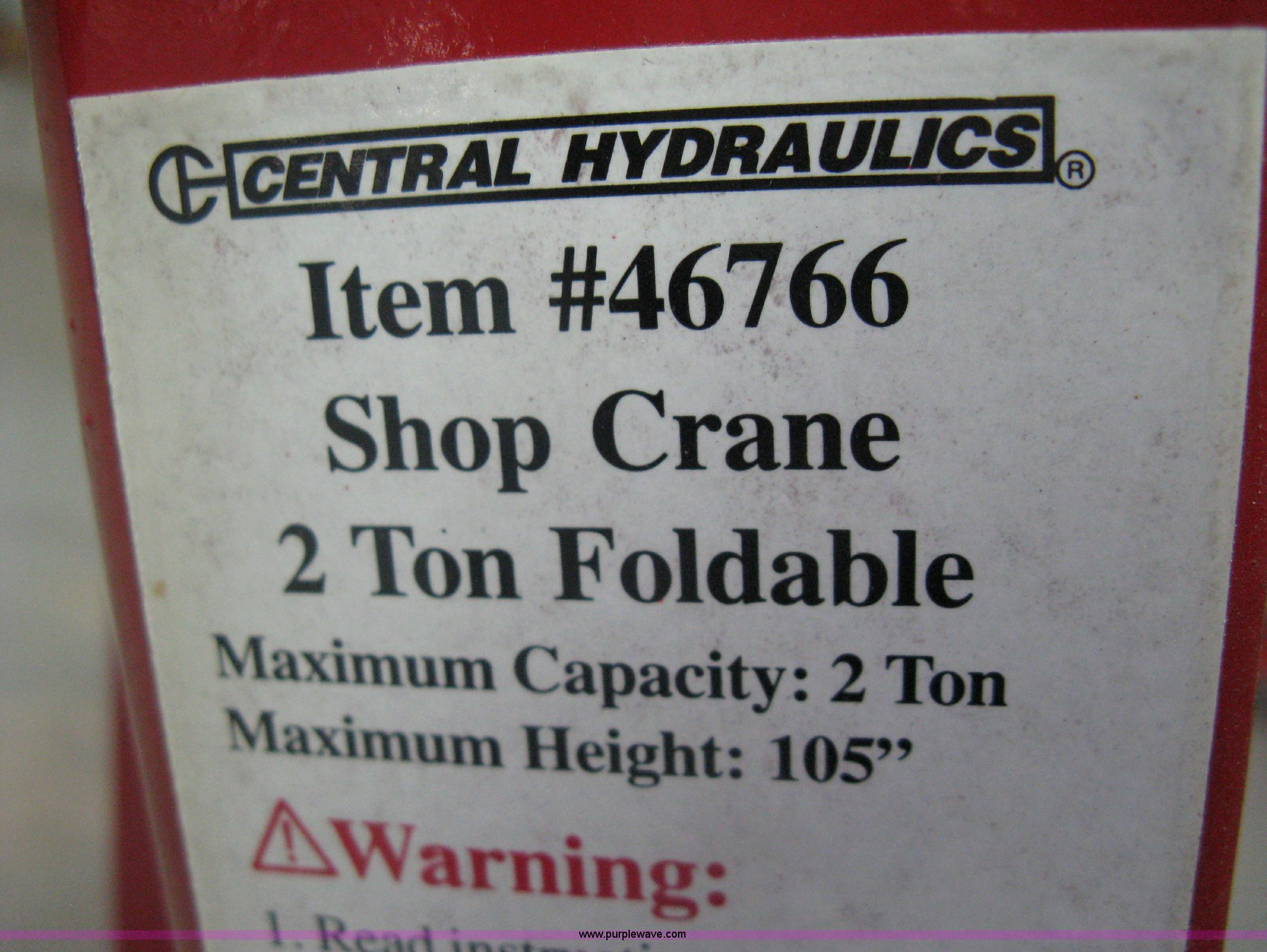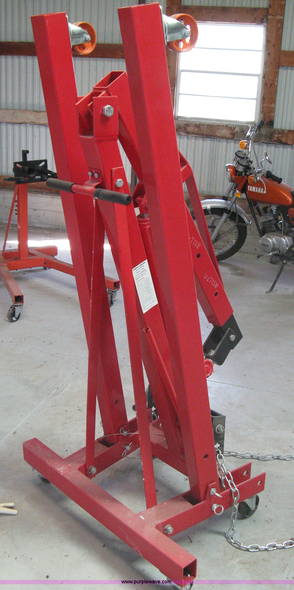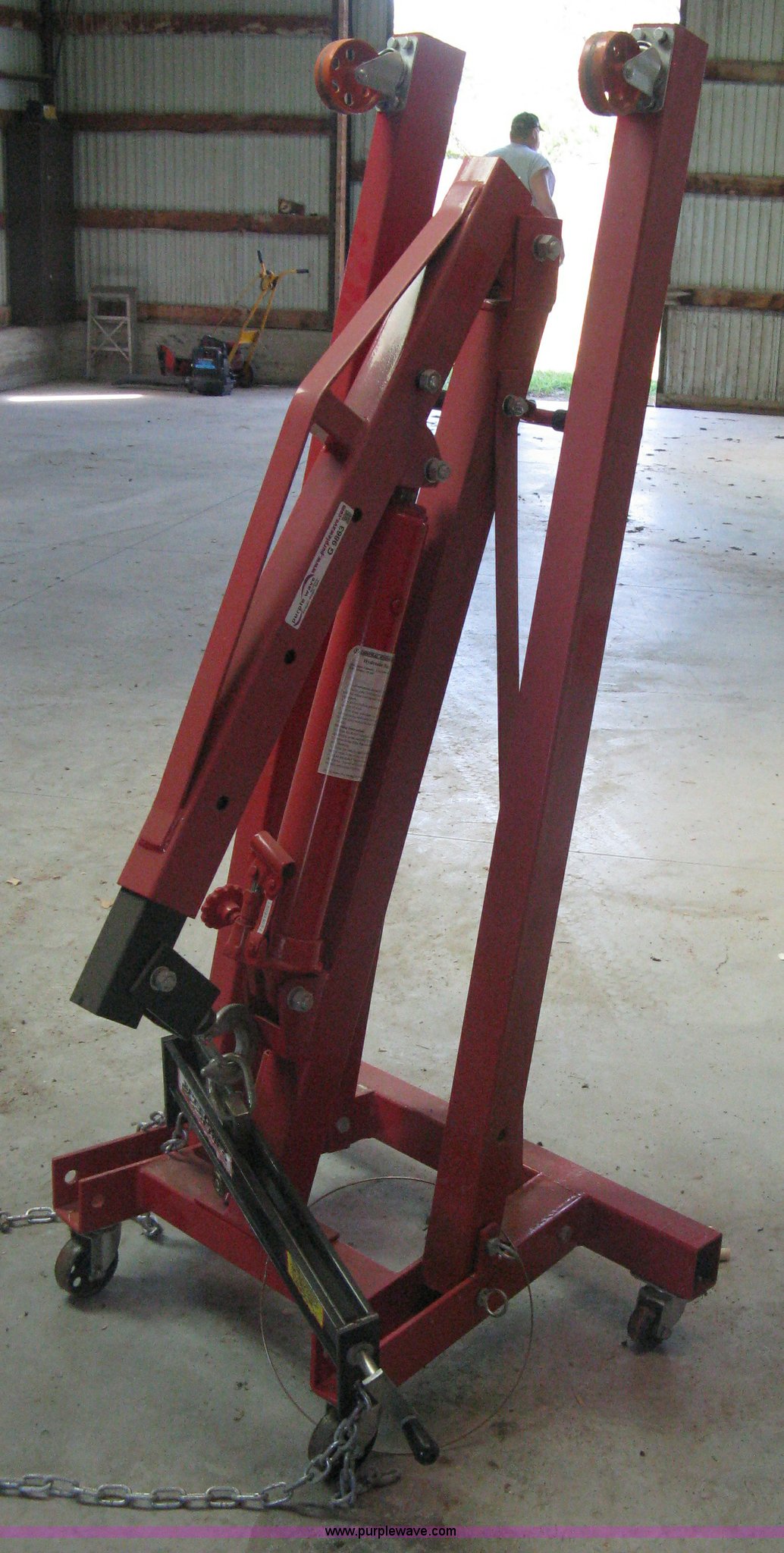 Purple Wave is selling a used Tools in Kansas. This item is a Sweedway fold up 2 ton shop crane with the following: Adjustable weight hook arm with crane equalizer bar, 105" max reach, Caster wheels