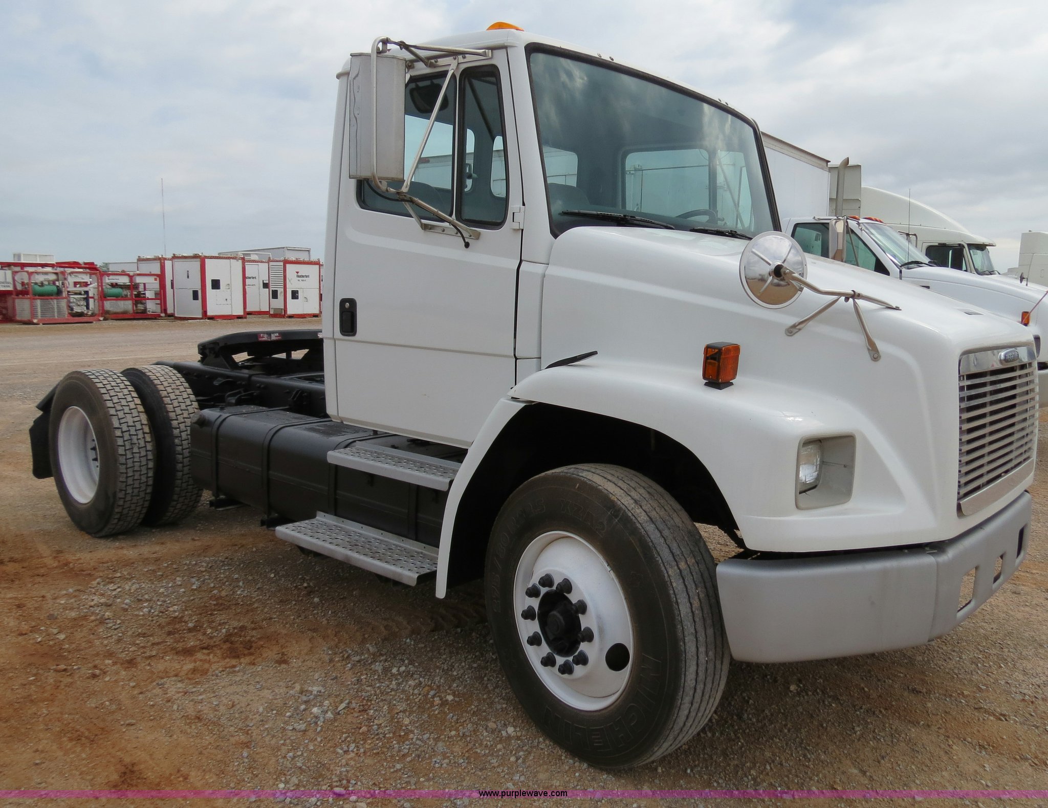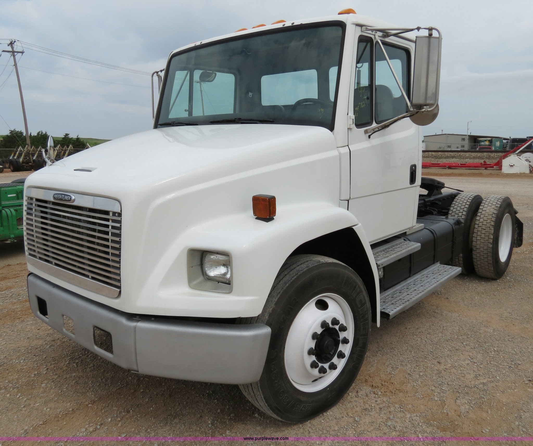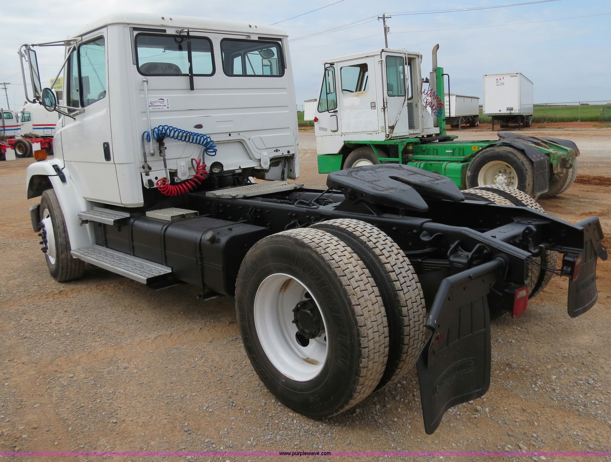 Purple Wave is selling a used Truck Tractor in Oklahoma. This item is a 1999 Freightliner FL80 semi truck with the following: 354,798 miles on odometer, 12,282 hours on meter, Caterpillar 3126 7.2L six cylinder diesel engine, 300 HP, Serial 7AS42207, AC and heat, Cruise, Heated mirrors, Air ride seat, Air ride cab, Bumper, Block heater, (2) 100 gallon fuel tanks, Aluminum deck plate, Fifth wheel hitch, Pintle hitch, Air suspension, Air brakes, 295/75R22.5 rear tires, 275/80R22.5 front tires, GVWR 34,700 lbs, FAWR 12,000 lbs, RAWR 22,700 lbs, 148" wheelbase