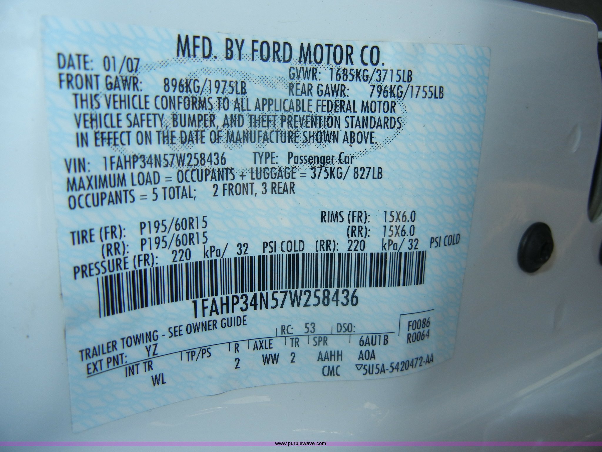Purple Wave is selling a used Passenger Vehicle in Kansas. This item is a 2007 Ford Focus SE with the following: 56,608 miles on odometer, 2.0L I4 SFI gas engine, Automatic transmission, AC and heat, Tilt, Cruise, AM/FM/CD, Power windows, locks, and mirrors, Cloth interior, 195/60R15 tires, Interior/exterior cosmetic damage