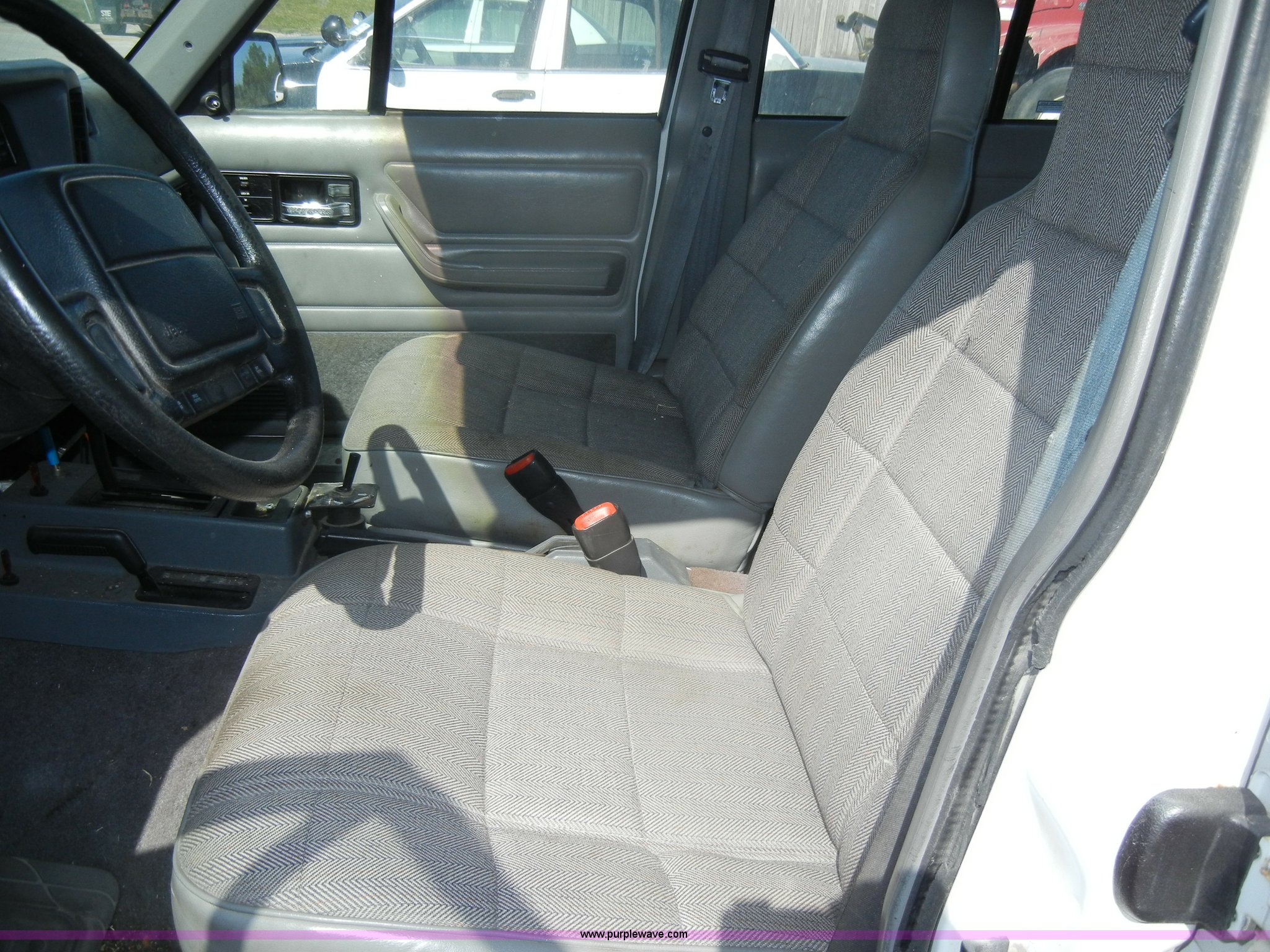 Purple Wave is selling a used Passenger Vehicle in Kansas. This item is a 1995 Jeep Cherokee SE SUV with the following: 106,669 miles on odometer, 4.0L I6 MPI gas engine, Automatic transmission, Four wheel drive, One front hub not locking in, AC and heat, Tilt, Cruise, AM/FM, Power windows and locks, Cloth interior, Receiver hitch, Trailer wiring, Light included, 225/70R15 tires, Interior/exterior cosmetic damage, Paint peeling, Dead battery, Unit # 150