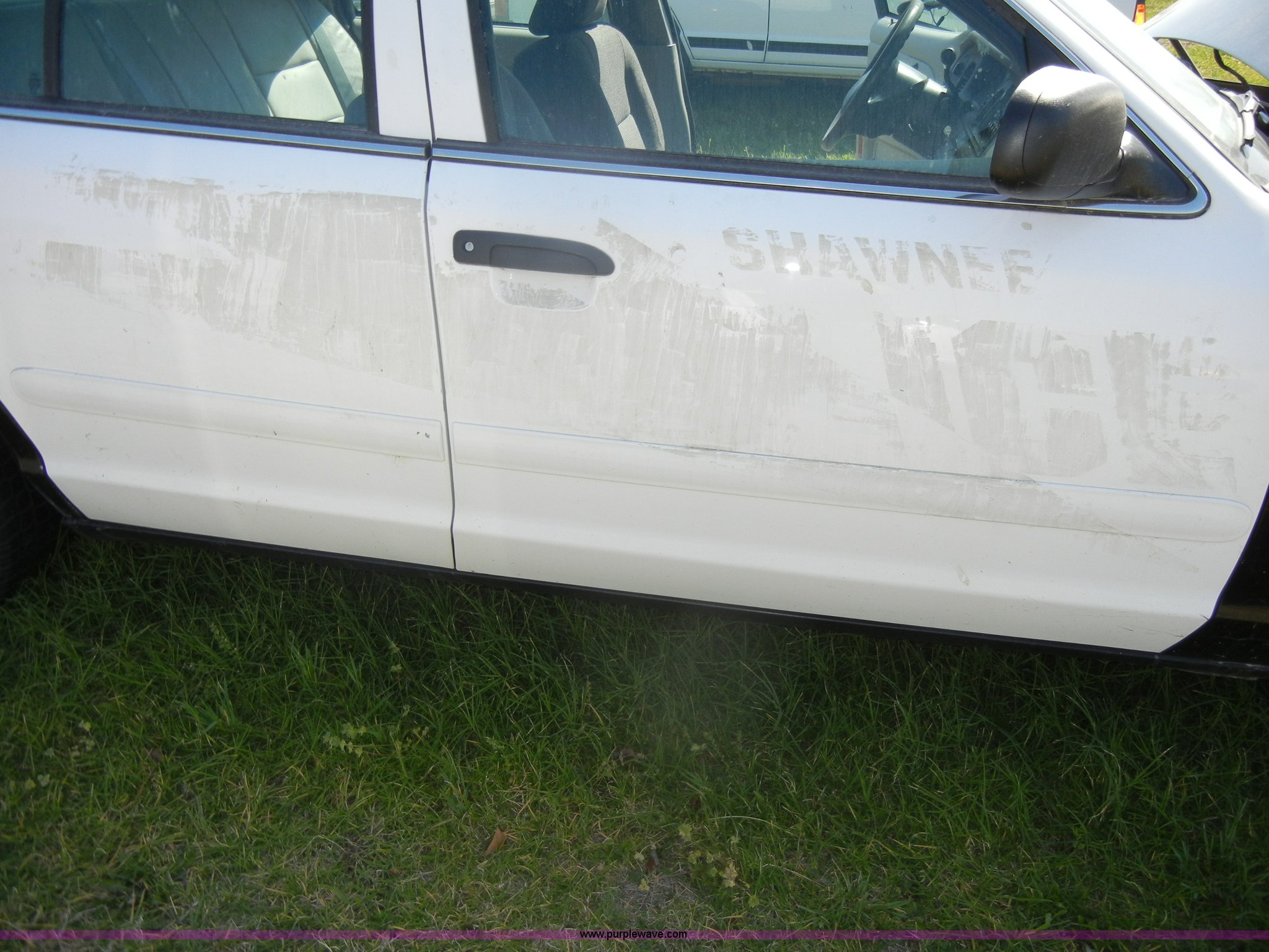 Purple Wave is selling a used Passenger Vehicle in Kansas. This item is a 2003 Ford Crown Victoria Police Interceptor with the following: 107,499 miles on odometer, 4.6L V8 EFI gas engine, Automatic transmission, AC and heat, Tilt, Cruise, AM/FM, Power windows, locks, mirrors, and seats, Vinyl rear interior, Cloth front interior, Damaged, Spot light, 225/60R16 tires, Interior/exterior cosmetic damage, Paint peeling, Dead battery, Unit# 221