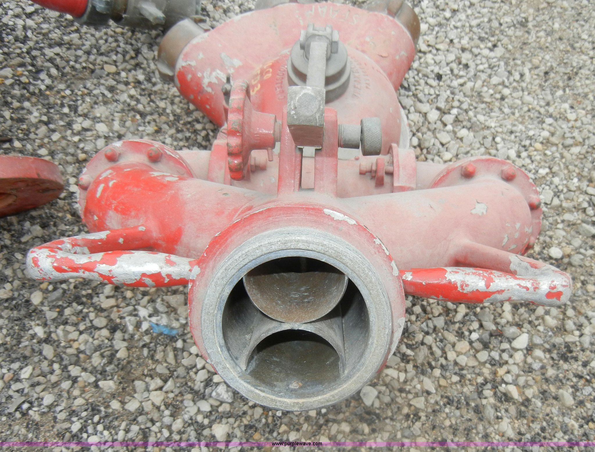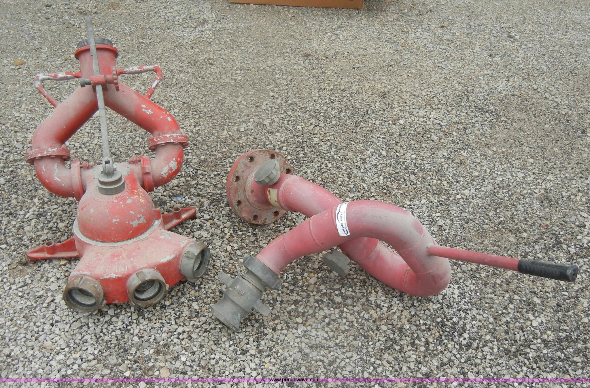 Fire truck deck gun. Grant portable ground water unit. Three ports 3" diameter. Northwest Consolidated FD. 33150 W 83rd Street. DeSoto, KS 66018