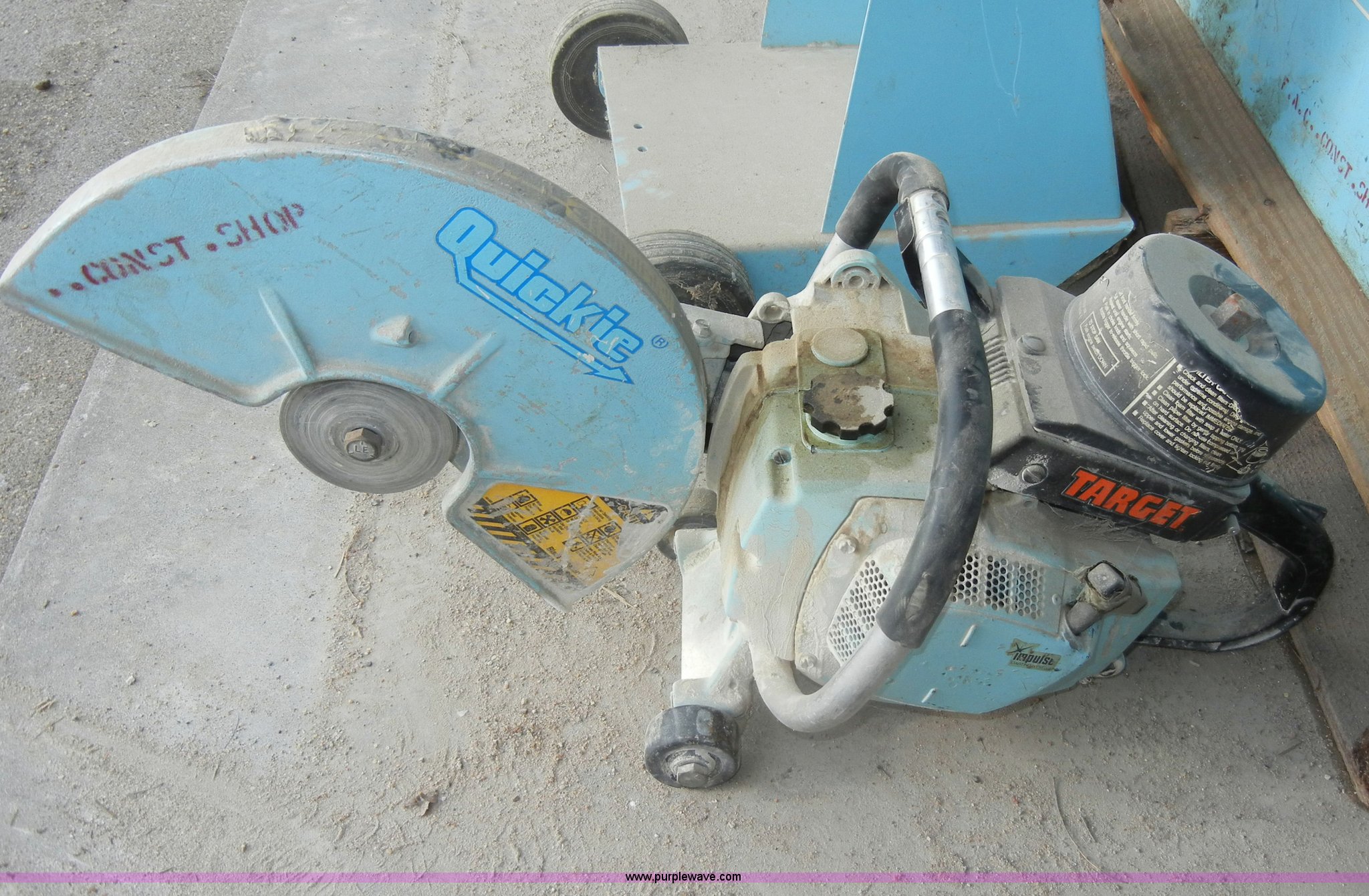 Purple Wave is selling a used Concrete Equip. or Acces. in Kansas. This item is a Assorted concrete equipment with the following: Target Quickie saw with case, 14" blade, Needs tune-up, Target concrete saw cart