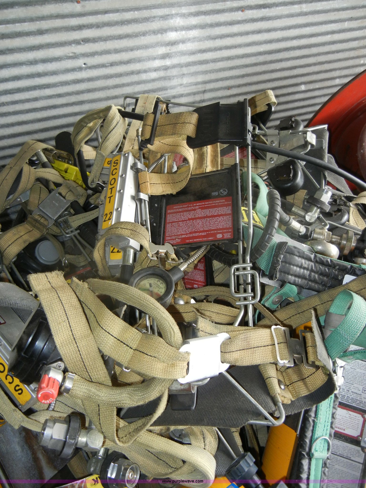 Purple Wave is selling a used Tools in Kansas. This item is a *Approximately 12 Scott Air Pak bottles and harnesses with the following: Approximately 12 Scott Air Pak bottles and harnesses