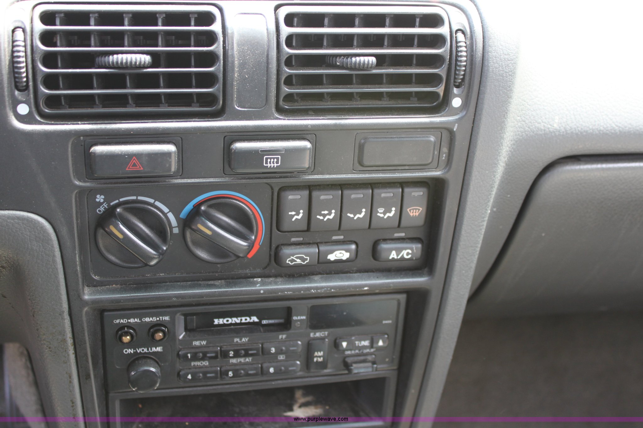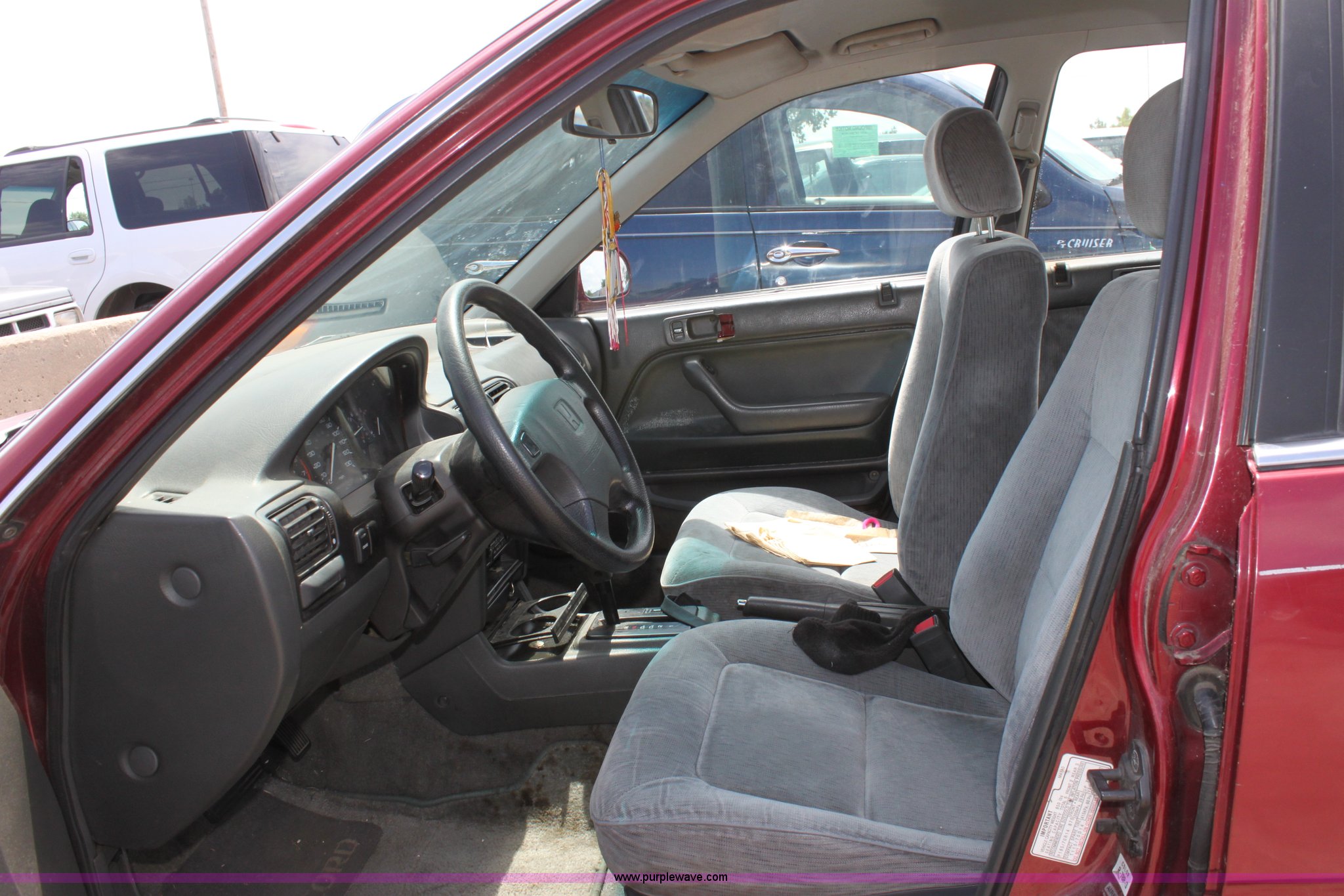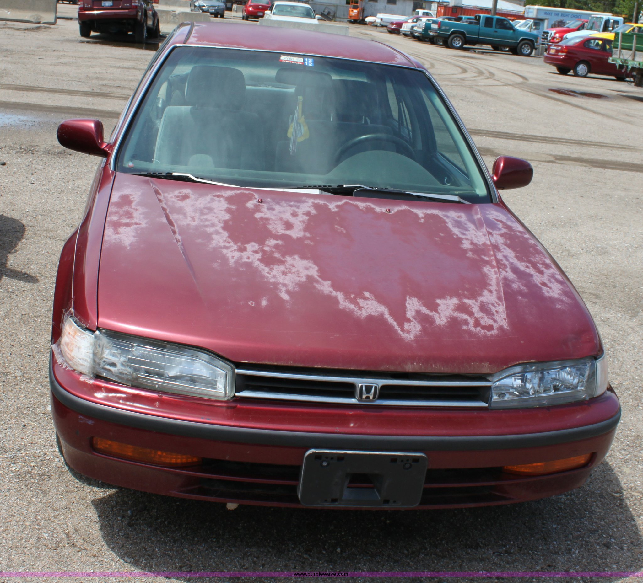 Purple Wave is selling a used Wrecked and Abandoned in Kansas. This item is a 1992 Honda Accord LX with the following: 240,903 miles on odometer, 2.2L I4 MPI gas engine, Automatic transmission, AC and heat, Tilt, Cruise, AM/FM/Cassette, Power windows, locks, and mirrors, Cloth interior, Receiver hitch, 185/70R14 tires, (2) children's car seats, Paint peeling, No radio antenna, Passenger front turn signal broken, Dent in hood, No battery, Interior cosmetic damage, Unknown operating condition, Case# 12C504178