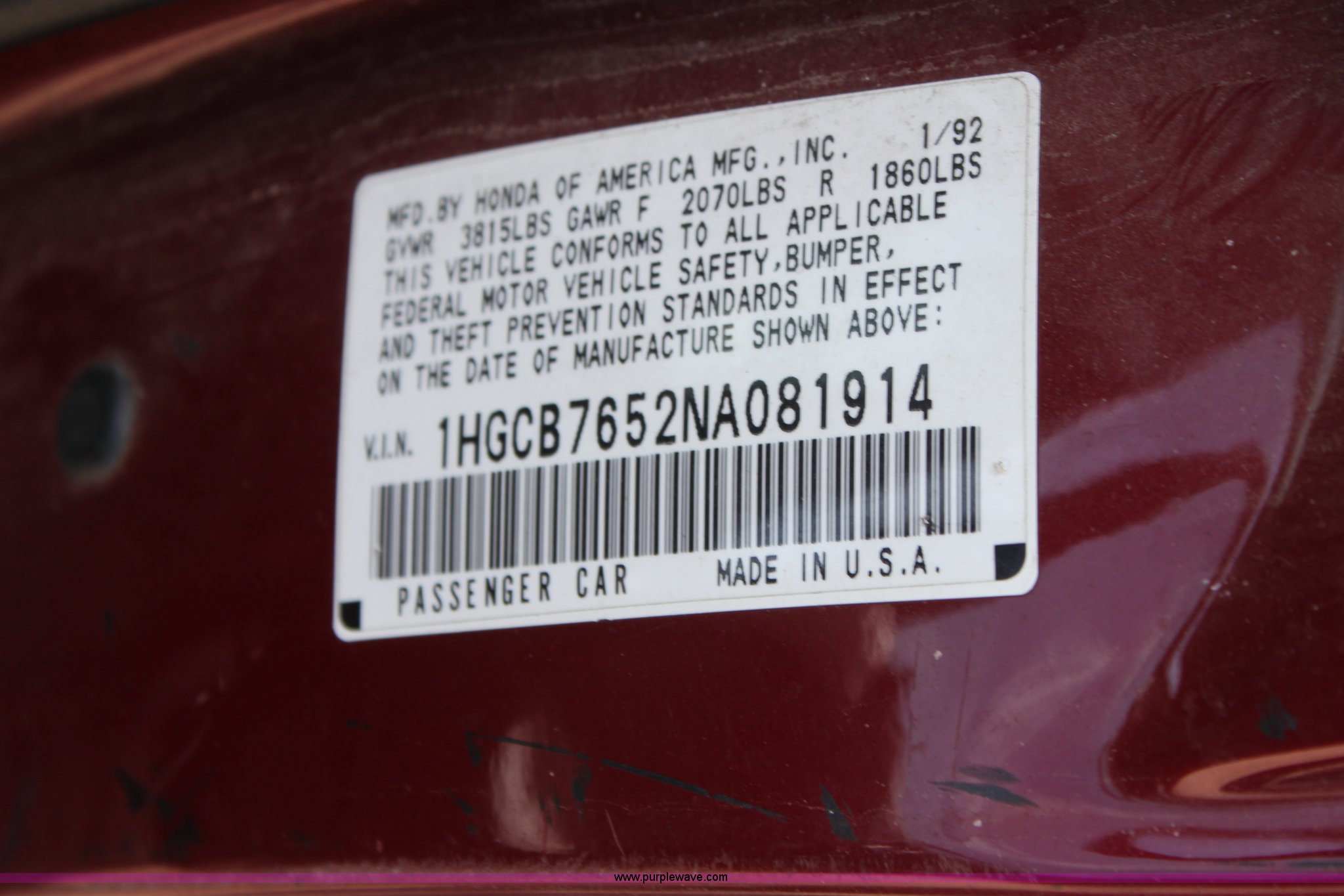 1992 Honda Accord LX has sold in Wichita, Kansas for $467.50. Item D7919 sold on May 23rd, 2012.