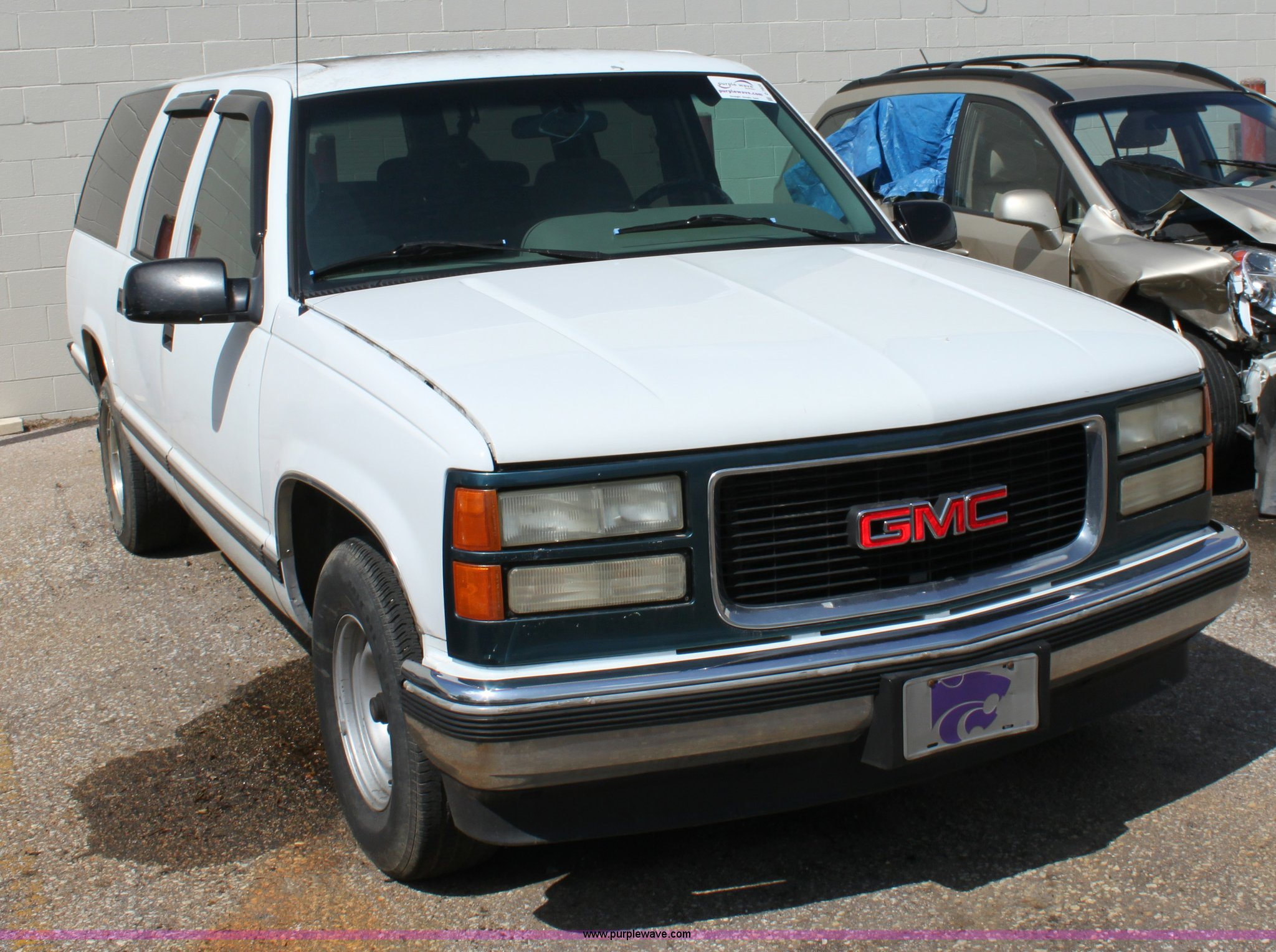 Purple Wave is selling a used Wrecked and Abandoned in Kansas. This item is a 1995 GMC Suburban SUV with the following: 261,967 miles on odometer, 5.7L V8 TBI gas engine, Automatic transmission, AC and heat, Tilt, Cruise, Power windows, locks, and mirrors, Cloth interior, Trailer wiring, 255/70R15 tires, Keys, Driver's interior door handle broken, Dent if driver's side rear quarter panel, Unknown operating condition, Case# 12C014498