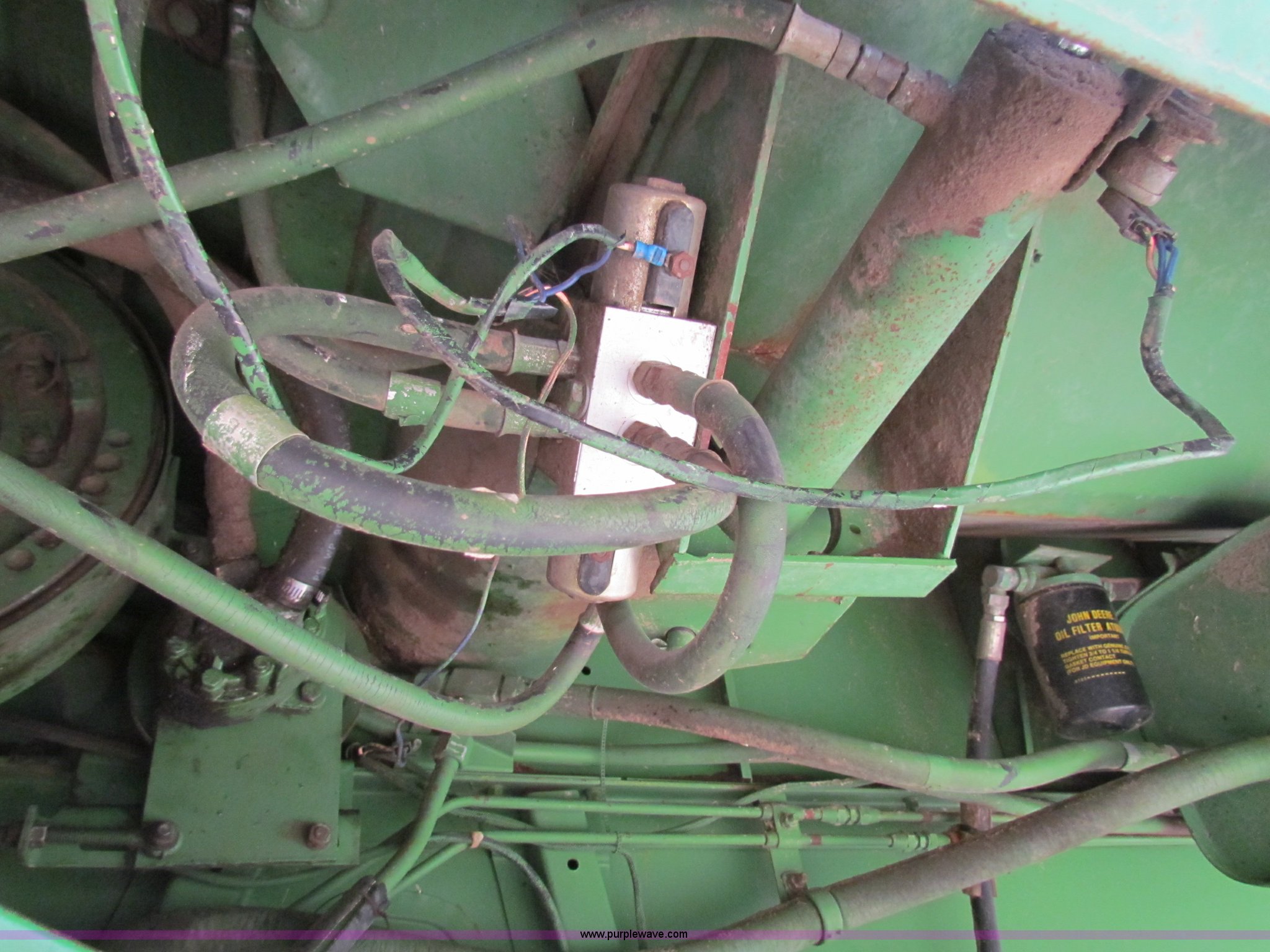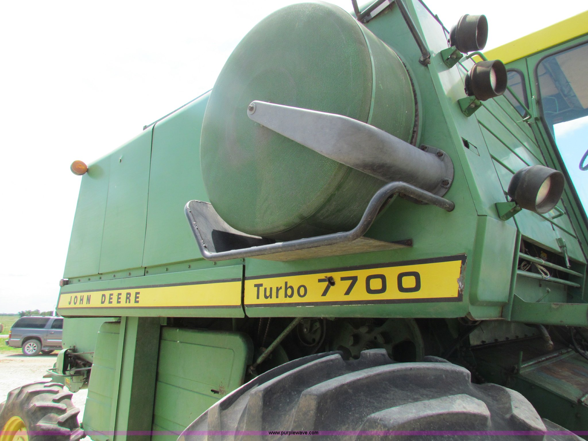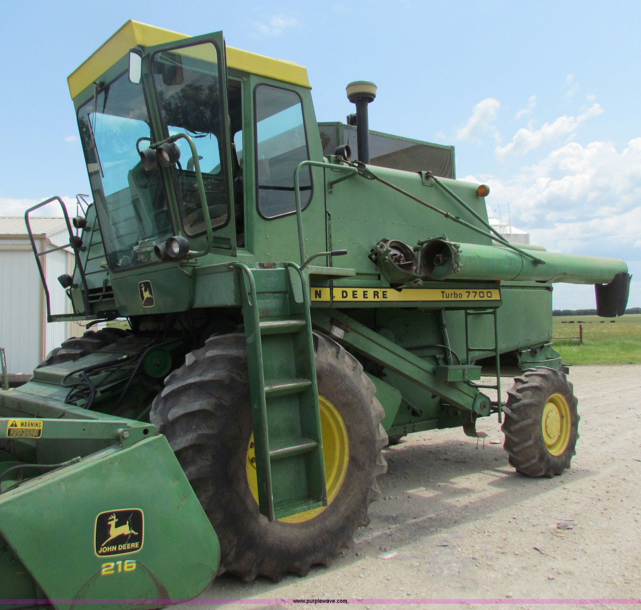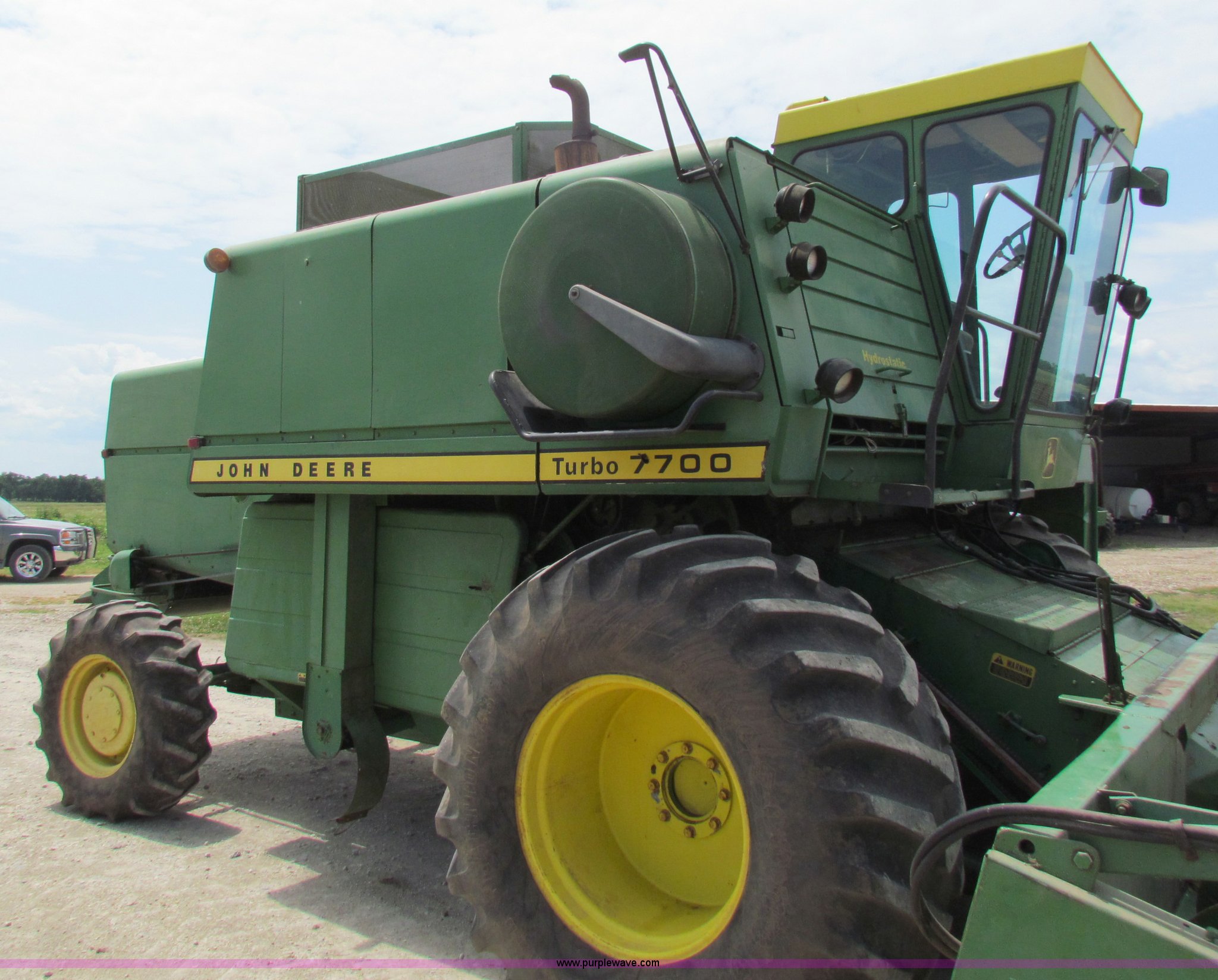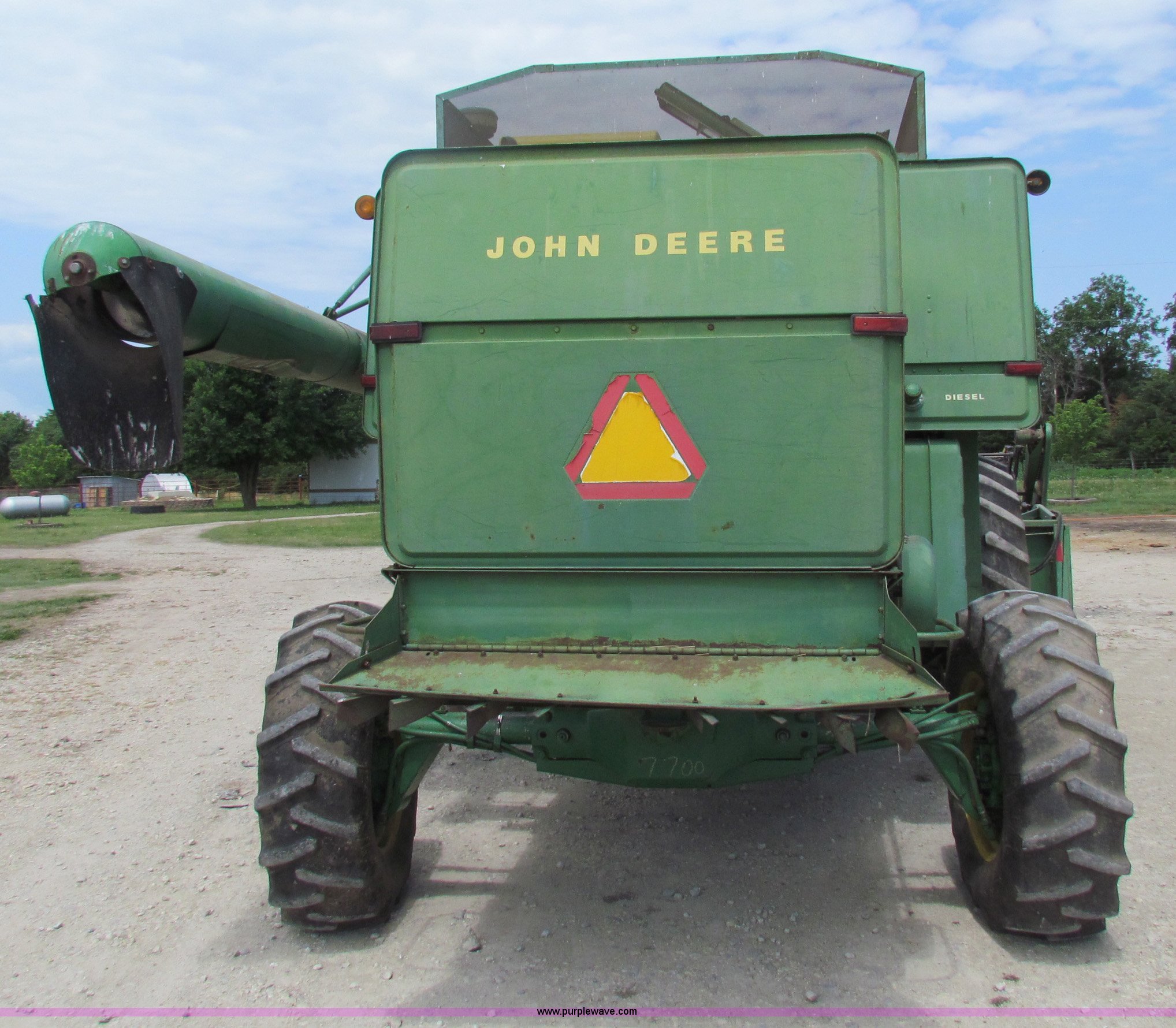 Purple Wave is selling a used Combine in Kansas. This item is a John Deere 7700 combine with the following: 3,869 hours on meter, Six cylinder turbo diesel engine, Four wheel drive, AC needs charged, Recently replaced battery, Serial 512063