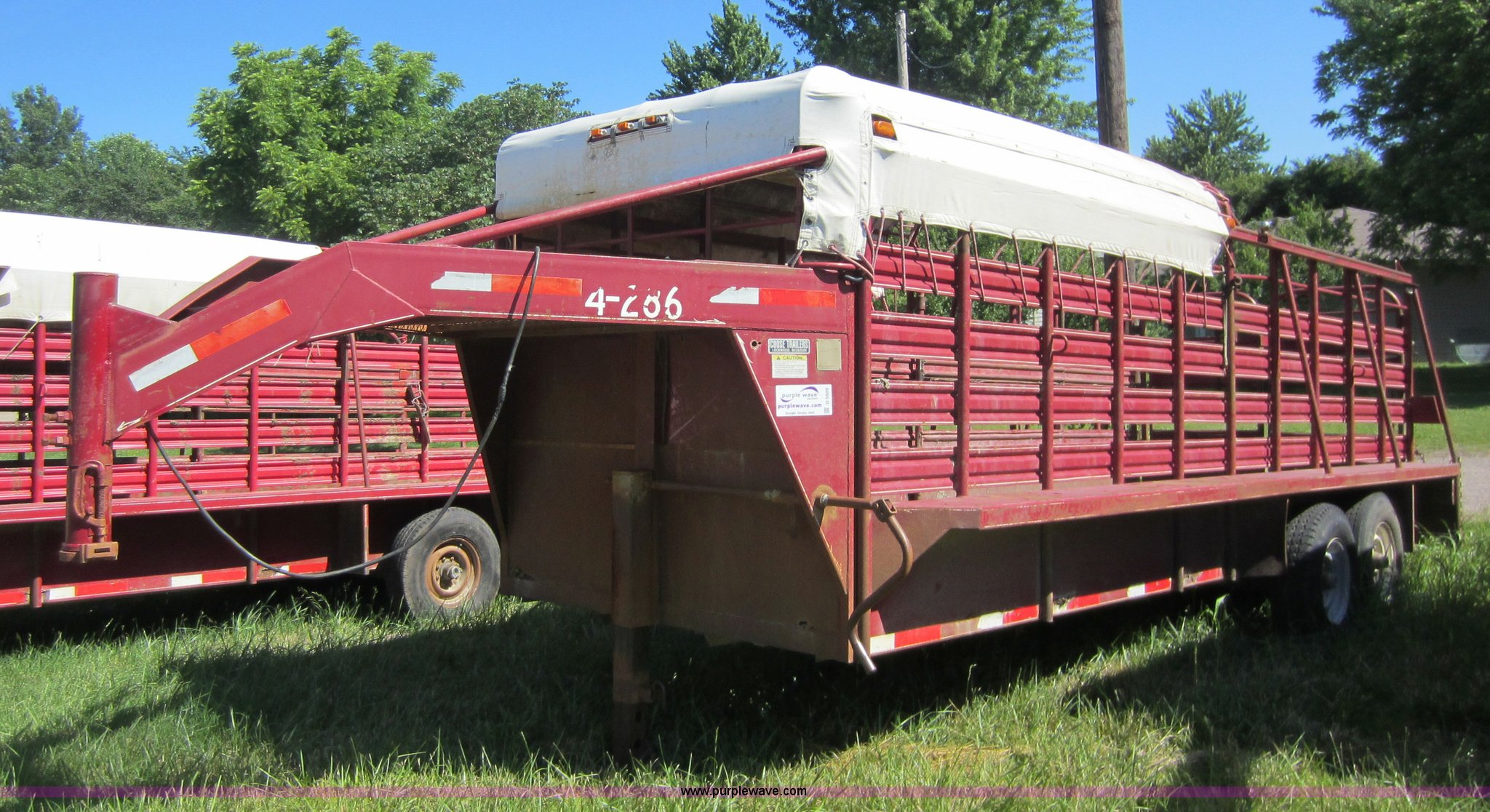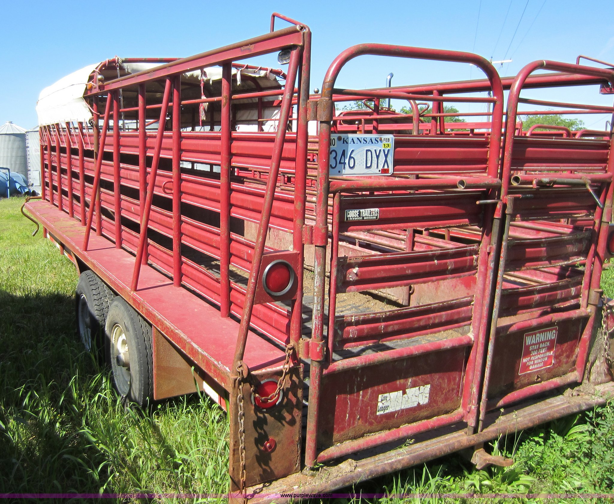 Purple Wave is selling a used Dump Trailer in Kansas. This item is a 1999 Coose gooseneck livestock trailer with the following: 20'L x 6"W, Rubber floor, Half bow/half open top, Dual Torstion 7,000 lb axles, 7.50R16LT tires, GVWR 14,000 lbs, Right rear corner broken, Unit# 4-286