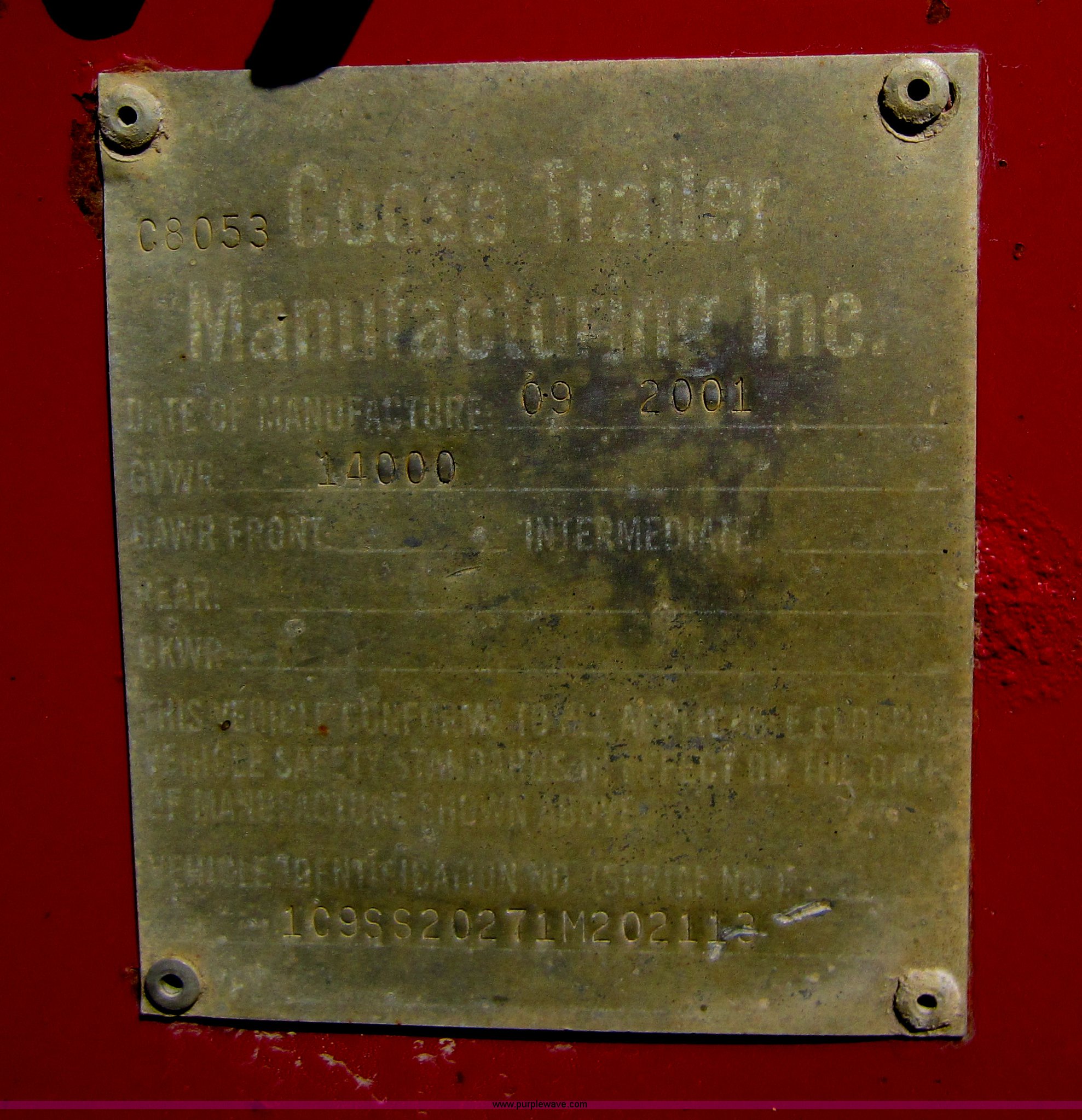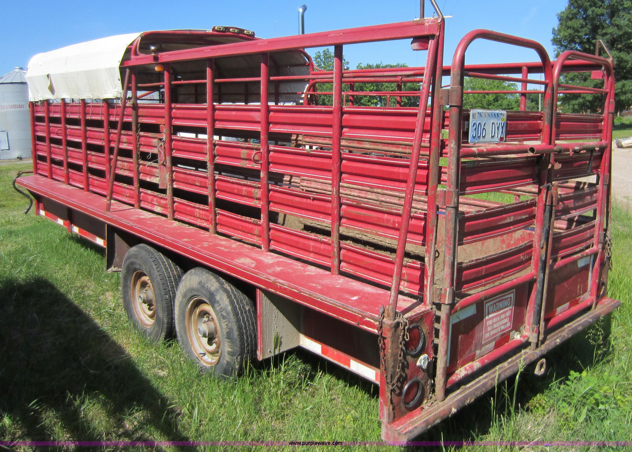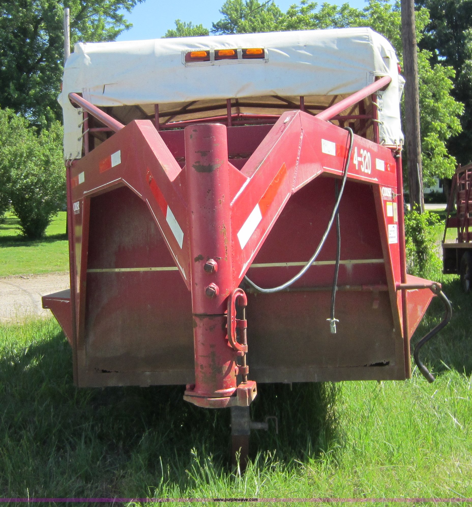 Purple Wave is selling a used Livestock Trailer in Kansas. This item is a 2001 Coose gooseneck livestock trailer with the following: 20'L x 6'W, Rubber floor, Half bow/half open top, Dual Torstion 7,000 lbs axles, LT235/85R16 tires, GVWR 14,000 lbs, Unit# 4-320