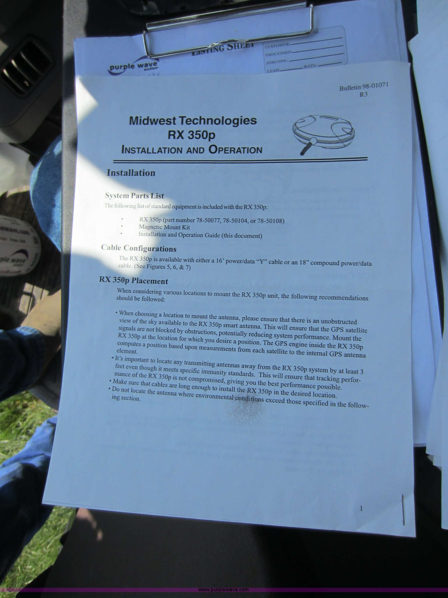 Purple Wave is selling a used Ag Electronics in Oklahoma. This item is a TeeJet Centerline GPS guidance system with the following: Version 2.02, Remote control, Light bar, RX350P antenna, Owner's manual