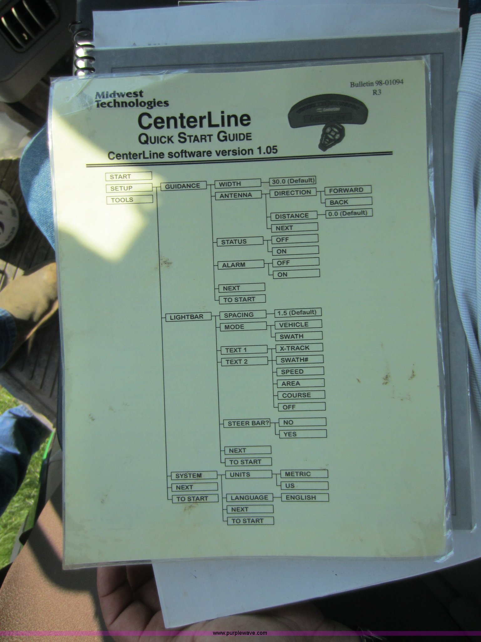 TeeJet Centerline GPS guidance system. Version 2.02, Remote control, Light bar, RX350P antenna , Owner's manual. Shipping quotes available. Gallery Ranch. 8620 N 3990 Road. Dewey, OK 74029
